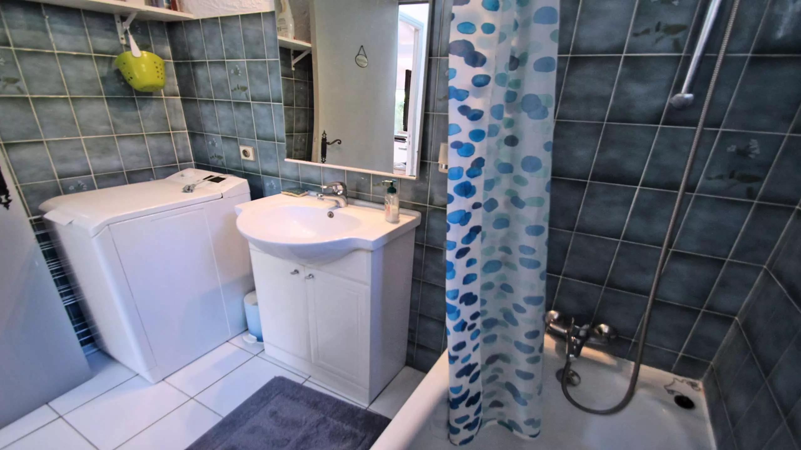- Suite with bedroom side double bed 140x200 and cupboards, then bathroom with shower and sink