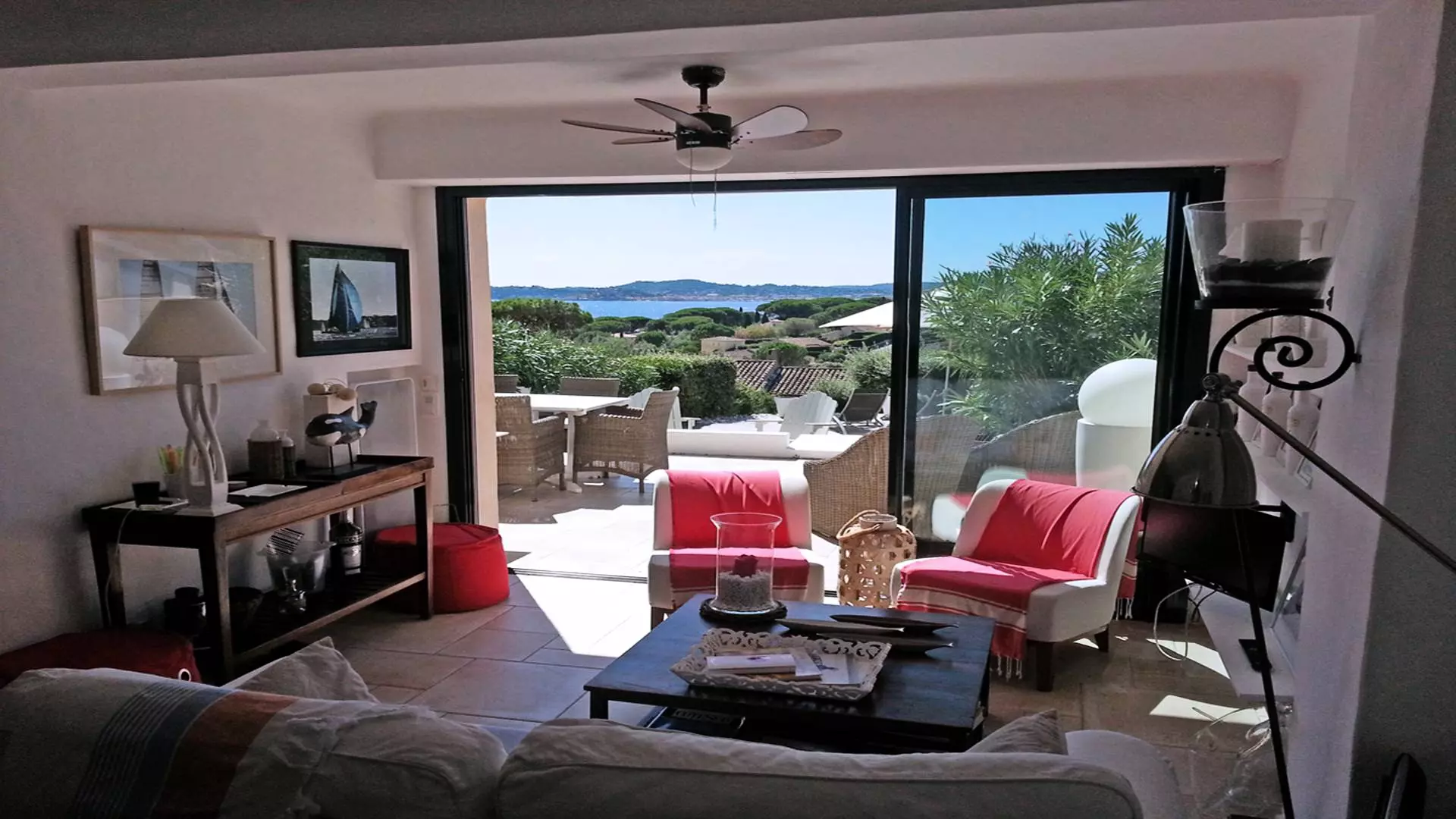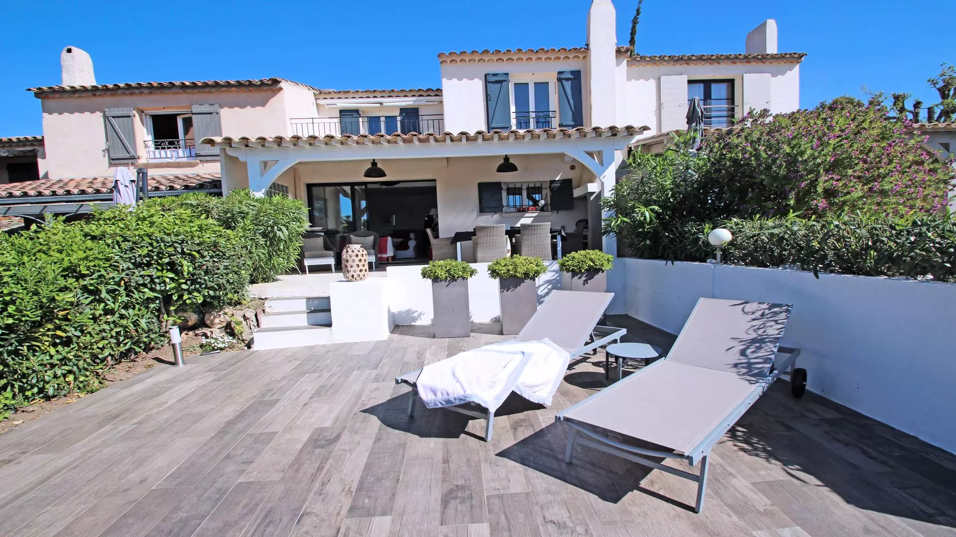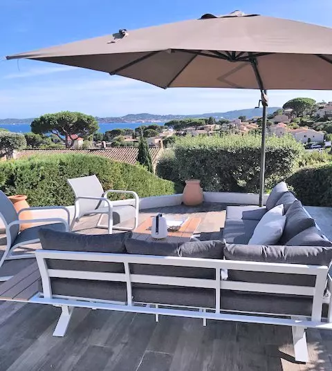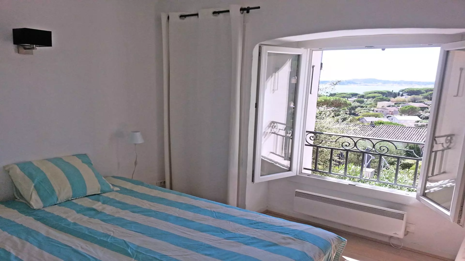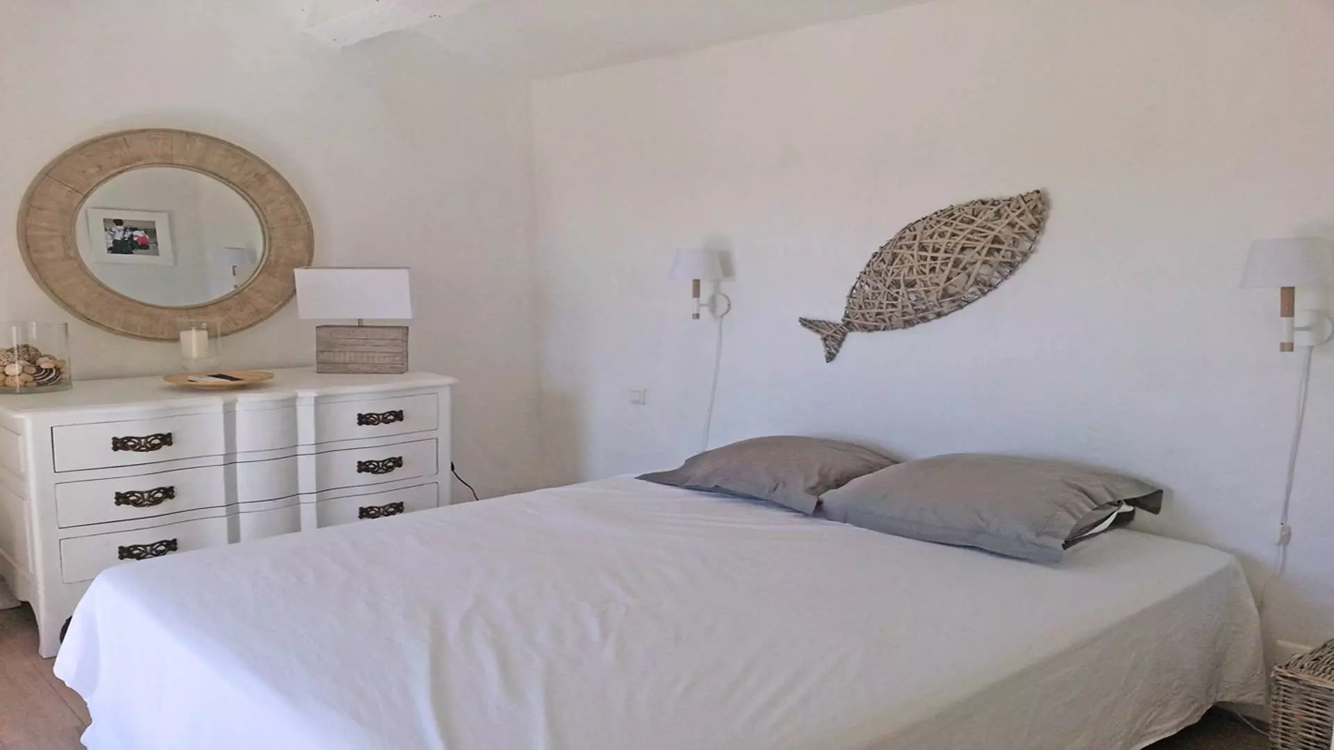 - Bedroom 1: 160cm double bed with air conditioning and storage - Tropezian terrace with sea view