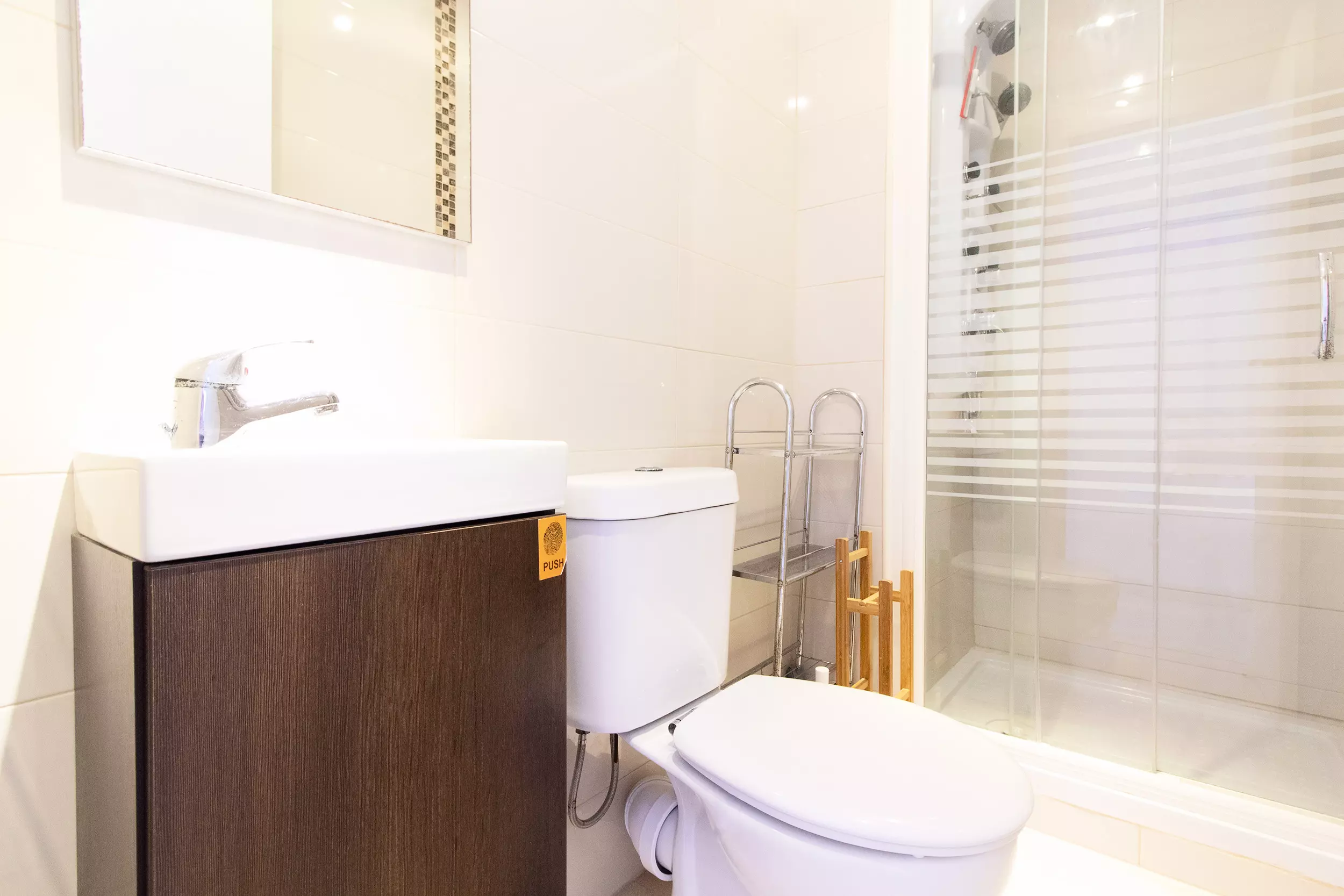 It has elevator, washing machine, iron, hair dryer, balcony, air conditioning in the living room, 1 TV.