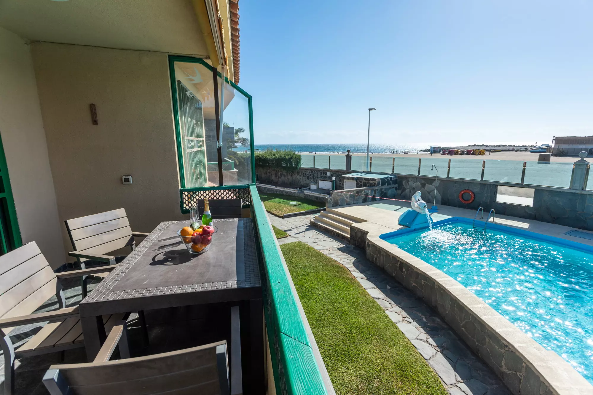 Fabulous holiday home with a wonderful furnished terrace with direct and close sea views, right on Las Burras beach, in the south of Gran Canaria.