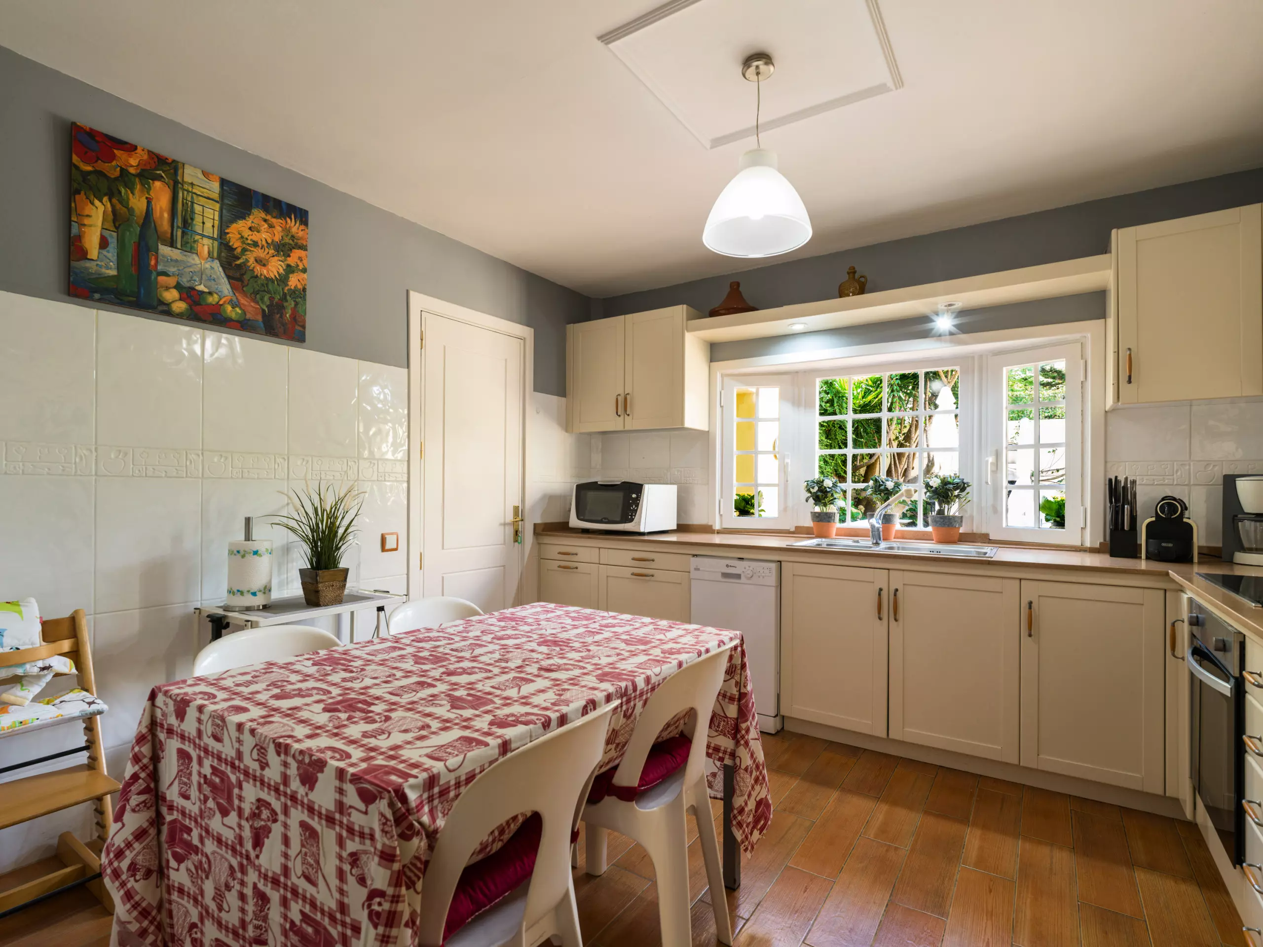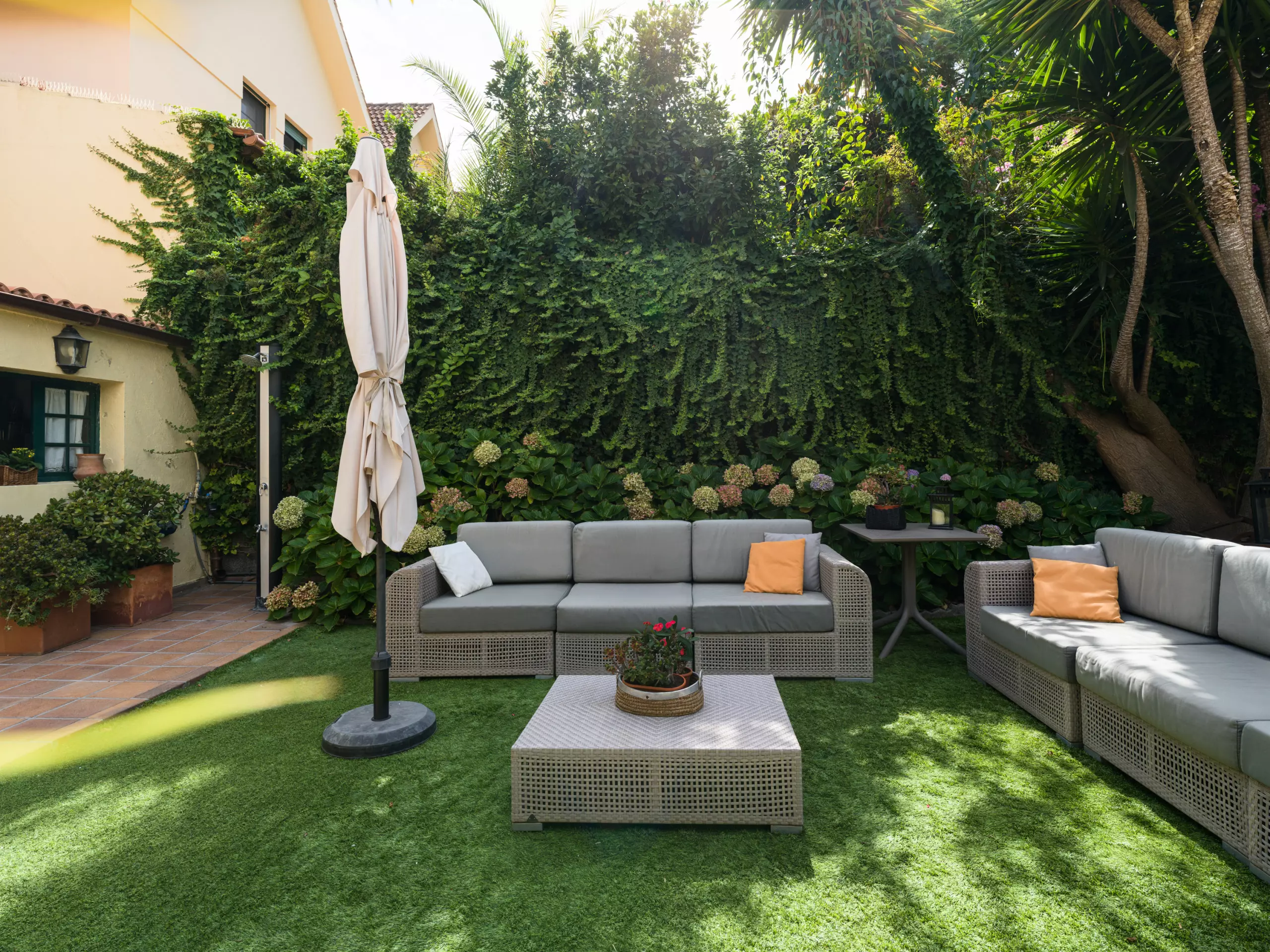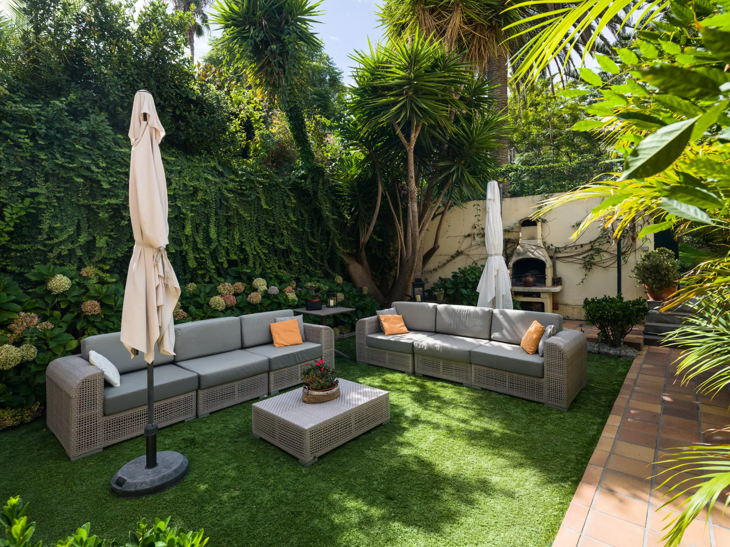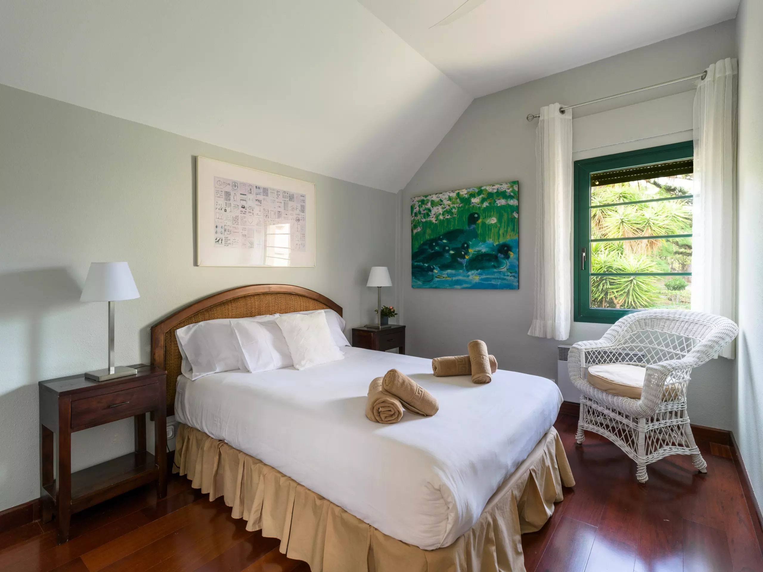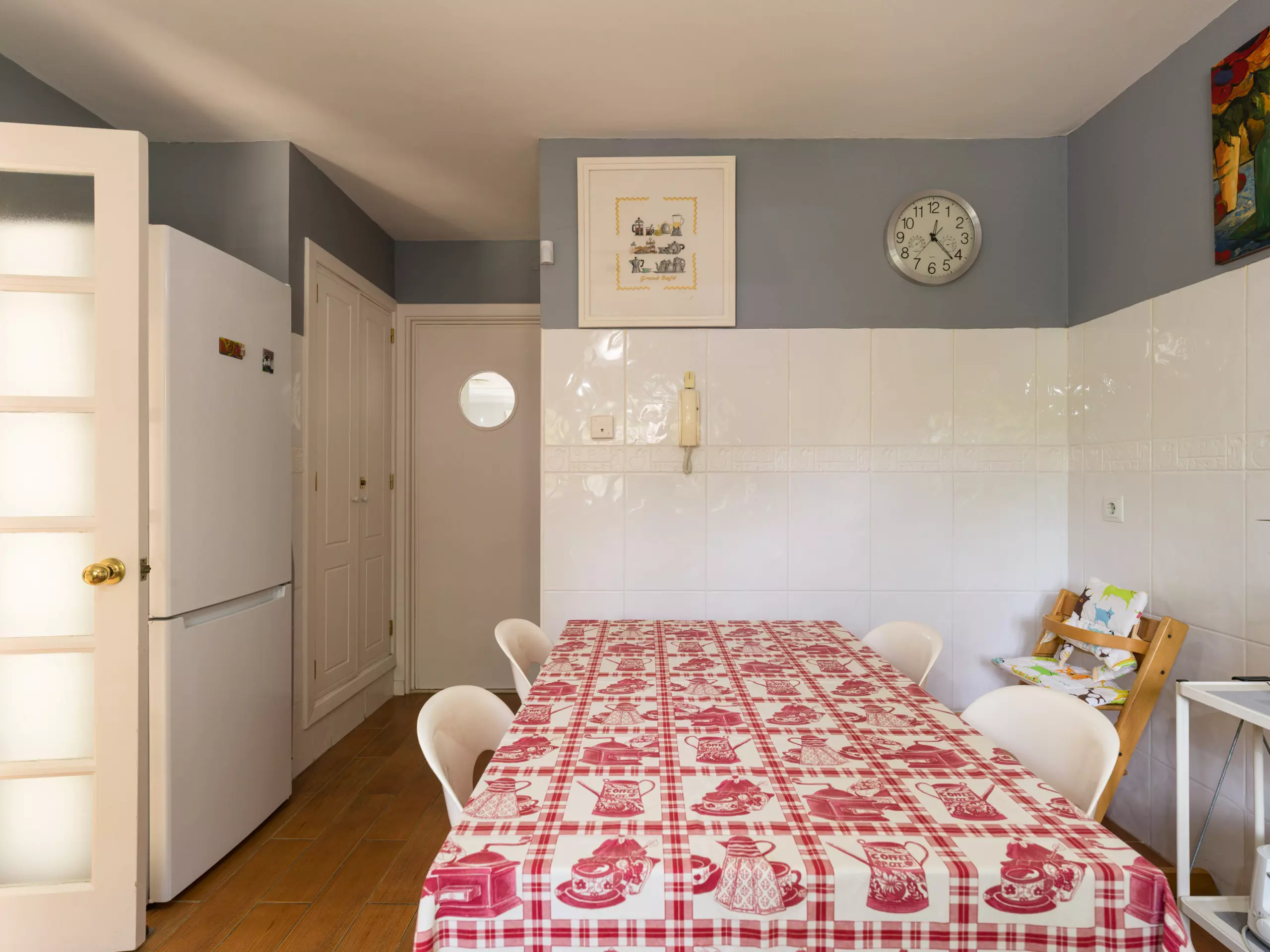 It has garden, garden furniture, fence, 50 m² terrace, washing machine, dryer, barbecue, fireplace, iron, internet access (wifi), hair dryer, tennis court, alarm, heat pump heating, air conditioning in the living room and some bedrooms, outdoor parking in the same building, 1 fan, mosquito nets in the bedroom, 1 TV, radio.