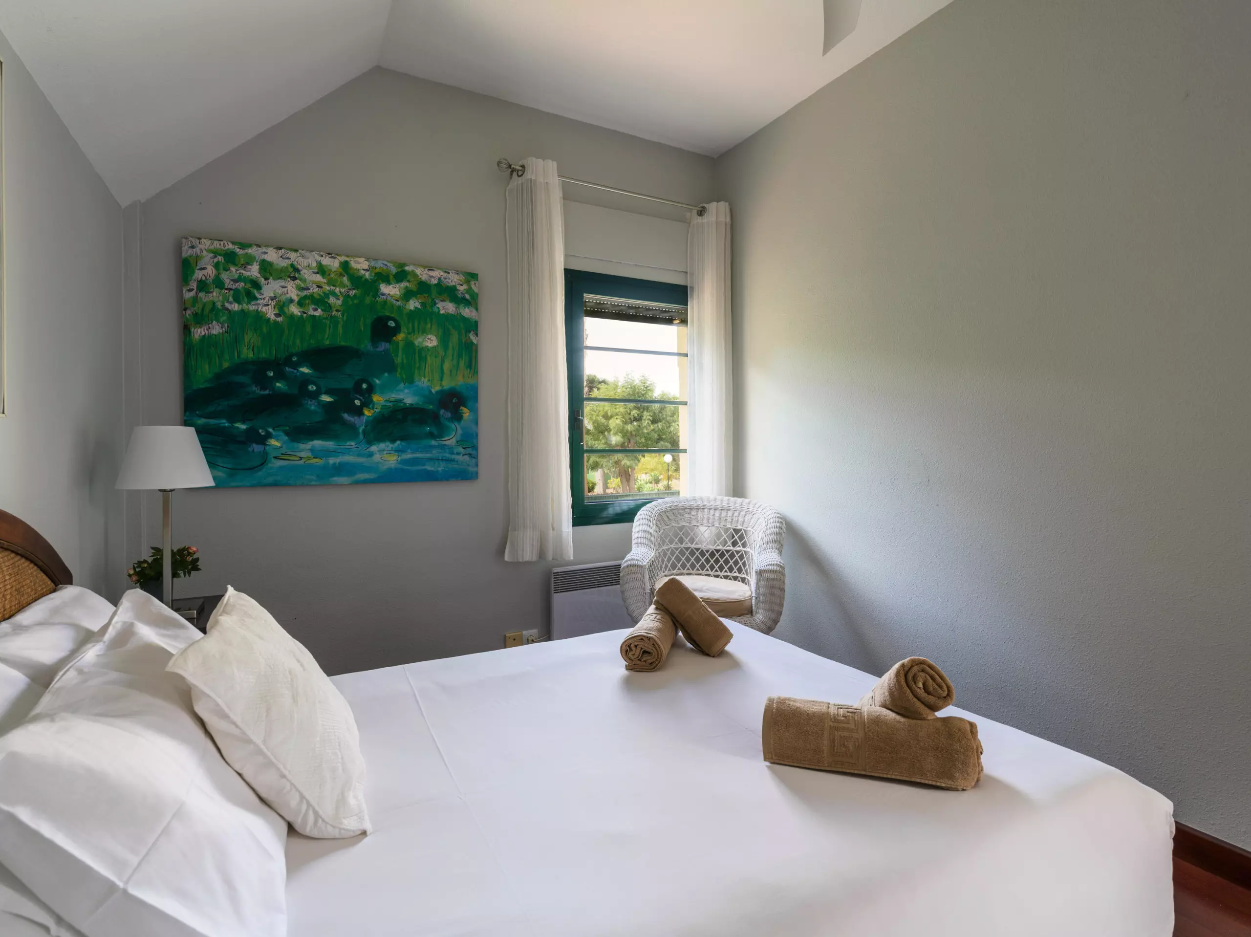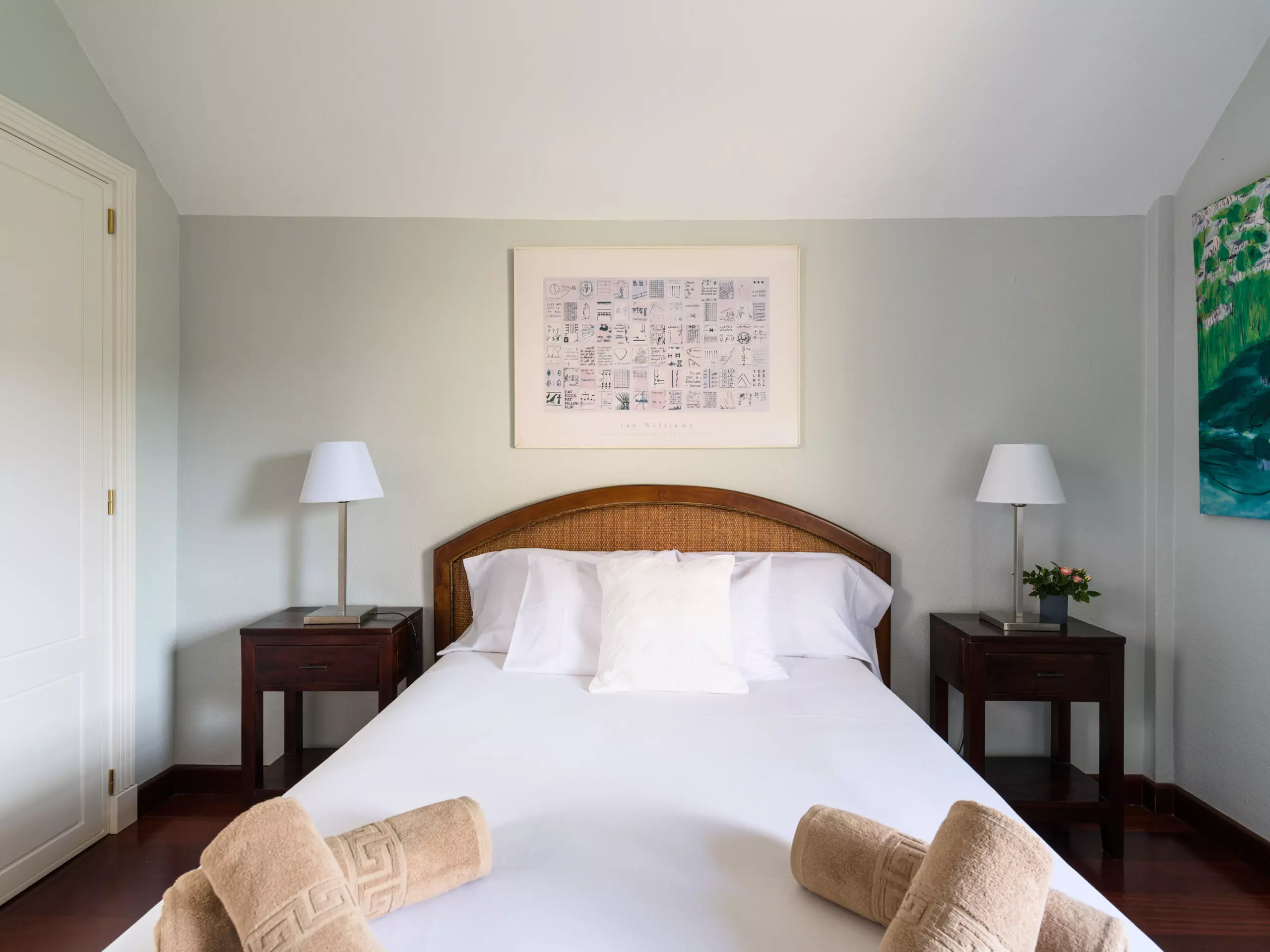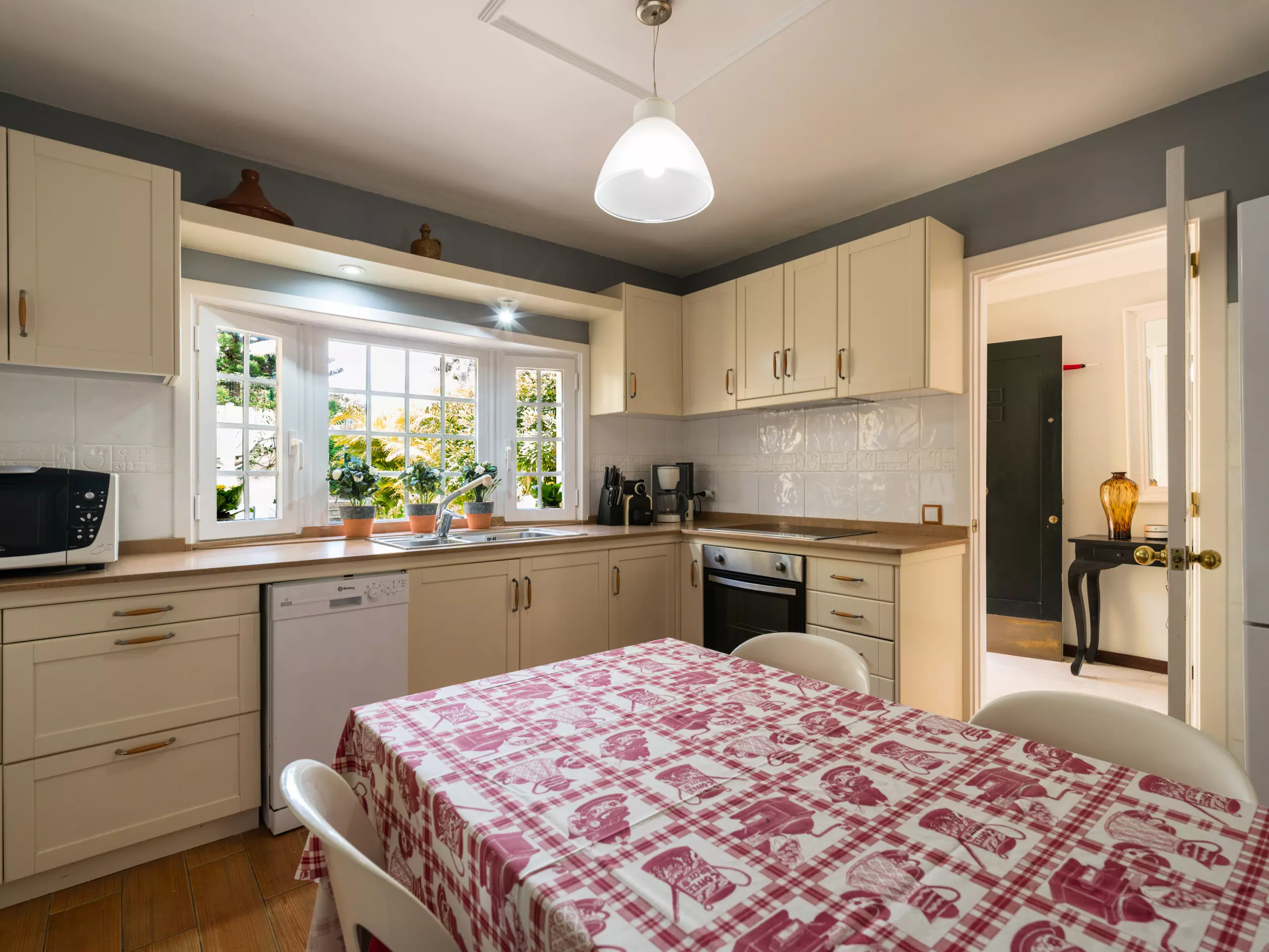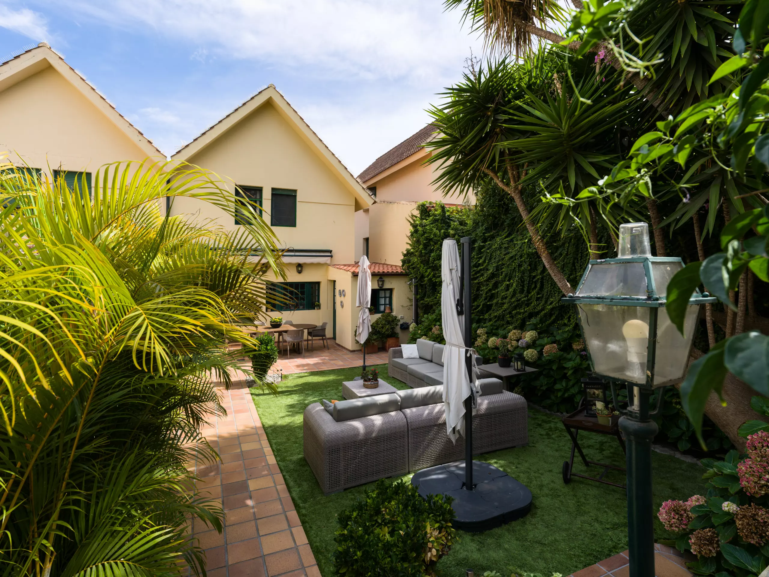 It has garden, garden furniture, fence, 50 m² terrace, washing machine, dryer, barbecue, fireplace, iron, internet access (wifi), hair dryer, tennis court, alarm, heat pump heating, air conditioning in the living room and some bedrooms, outdoor parking in the same building, 1 fan, mosquito nets in the bedroom, 1 TV, radio.