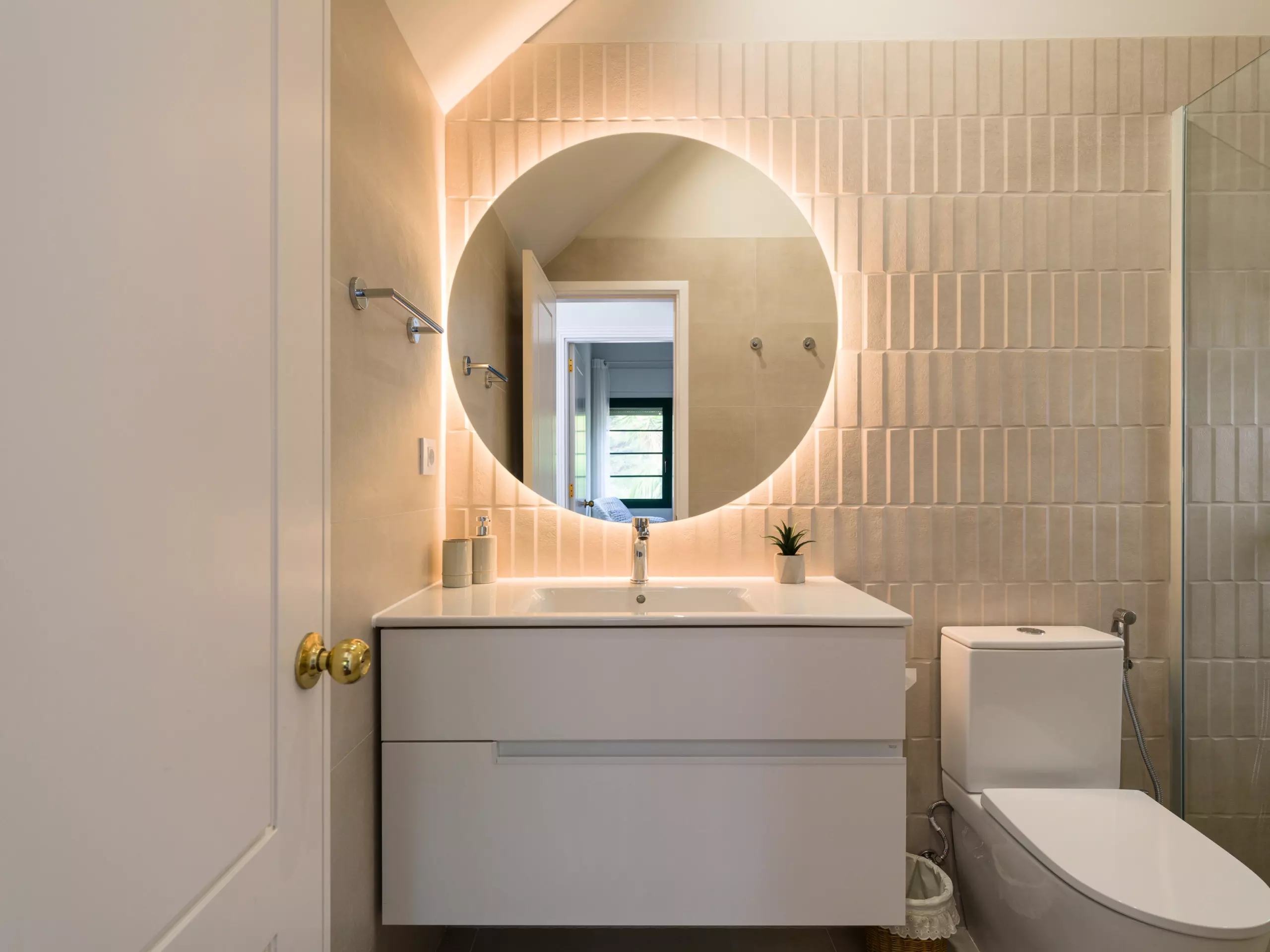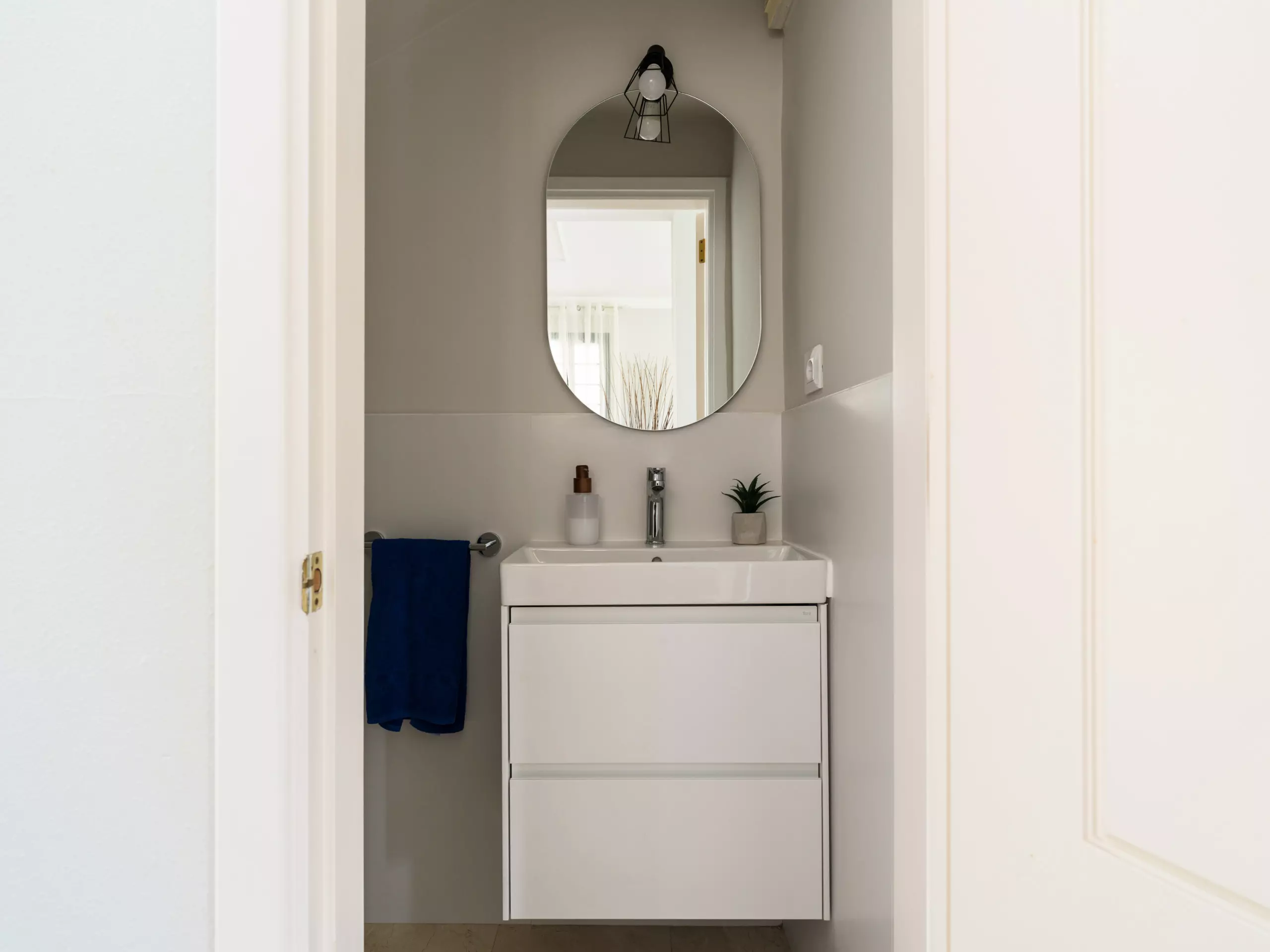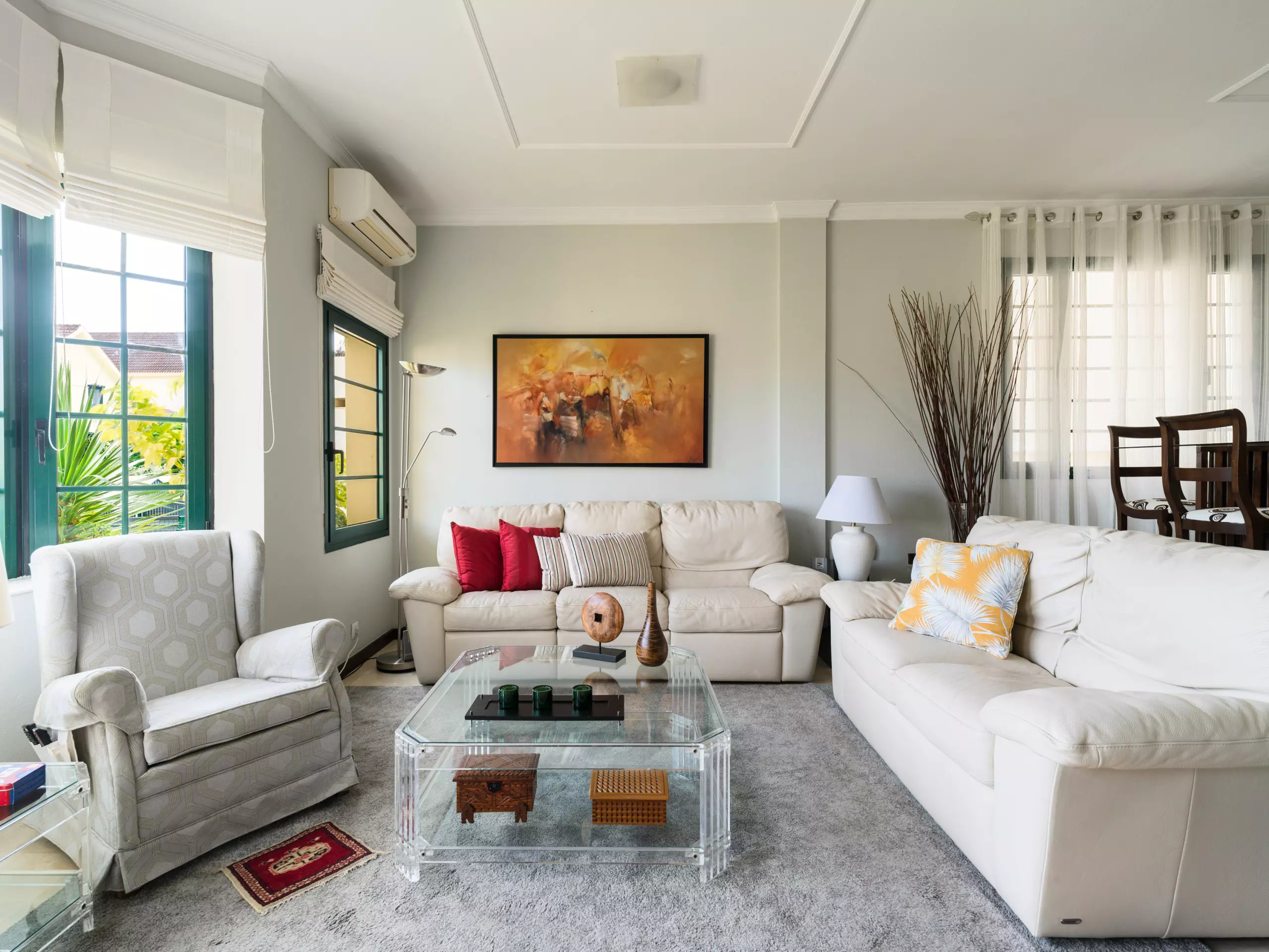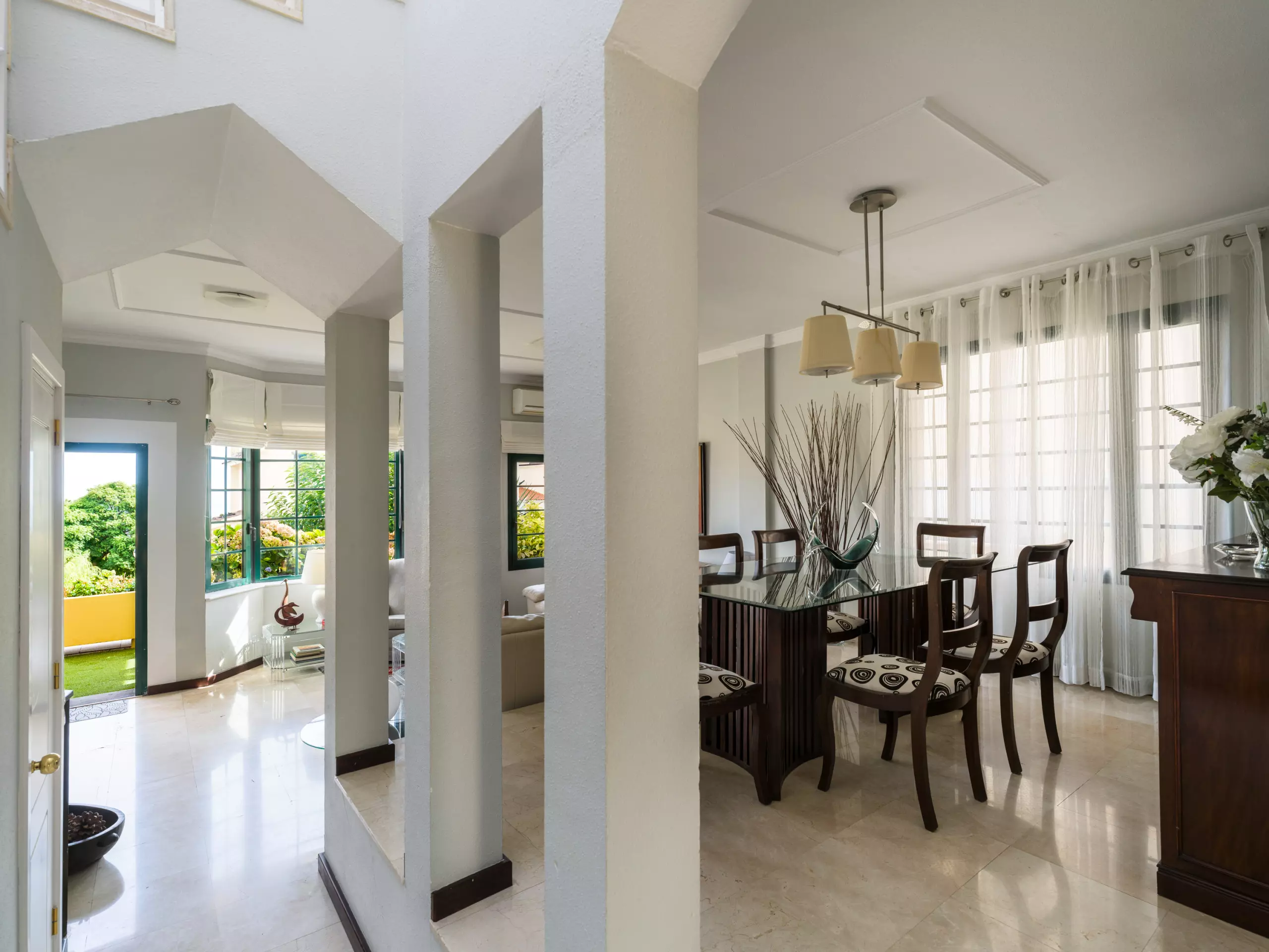 It has garden, garden furniture, fence, 50 m² terrace, washing machine, dryer, barbecue, fireplace, iron, internet access (wifi), hair dryer, tennis court, alarm, heat pump heating, air conditioning in the living room and some bedrooms, outdoor parking in the same building, 1 fan, mosquito nets in the bedroom, 1 TV, radio.