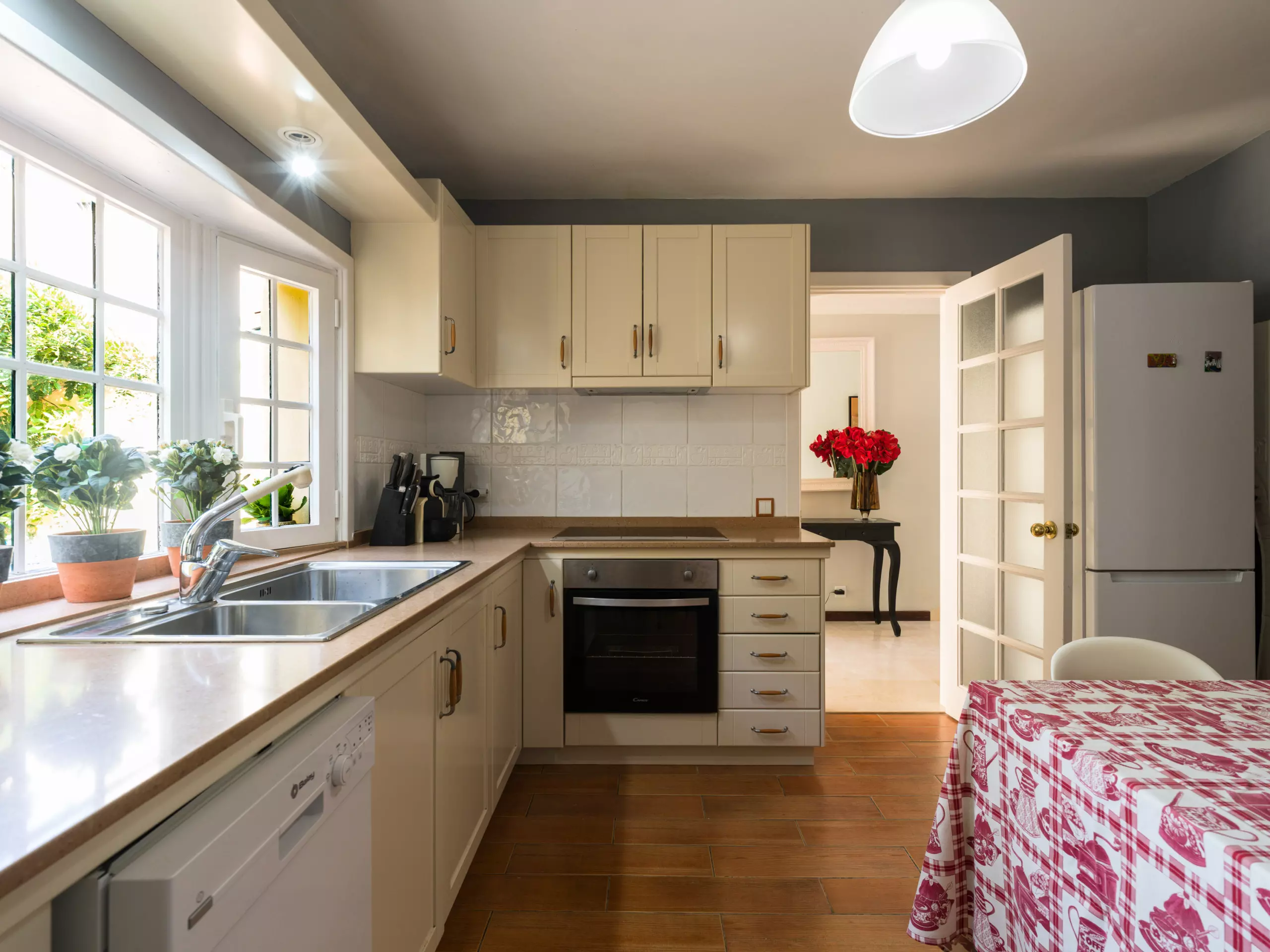 The independent kitchen is equipped with refrigerator, microwave, oven, freezer, dishwasher, dishes/cutlery, kitchen utensils, coffee maker, toaster and kettle.