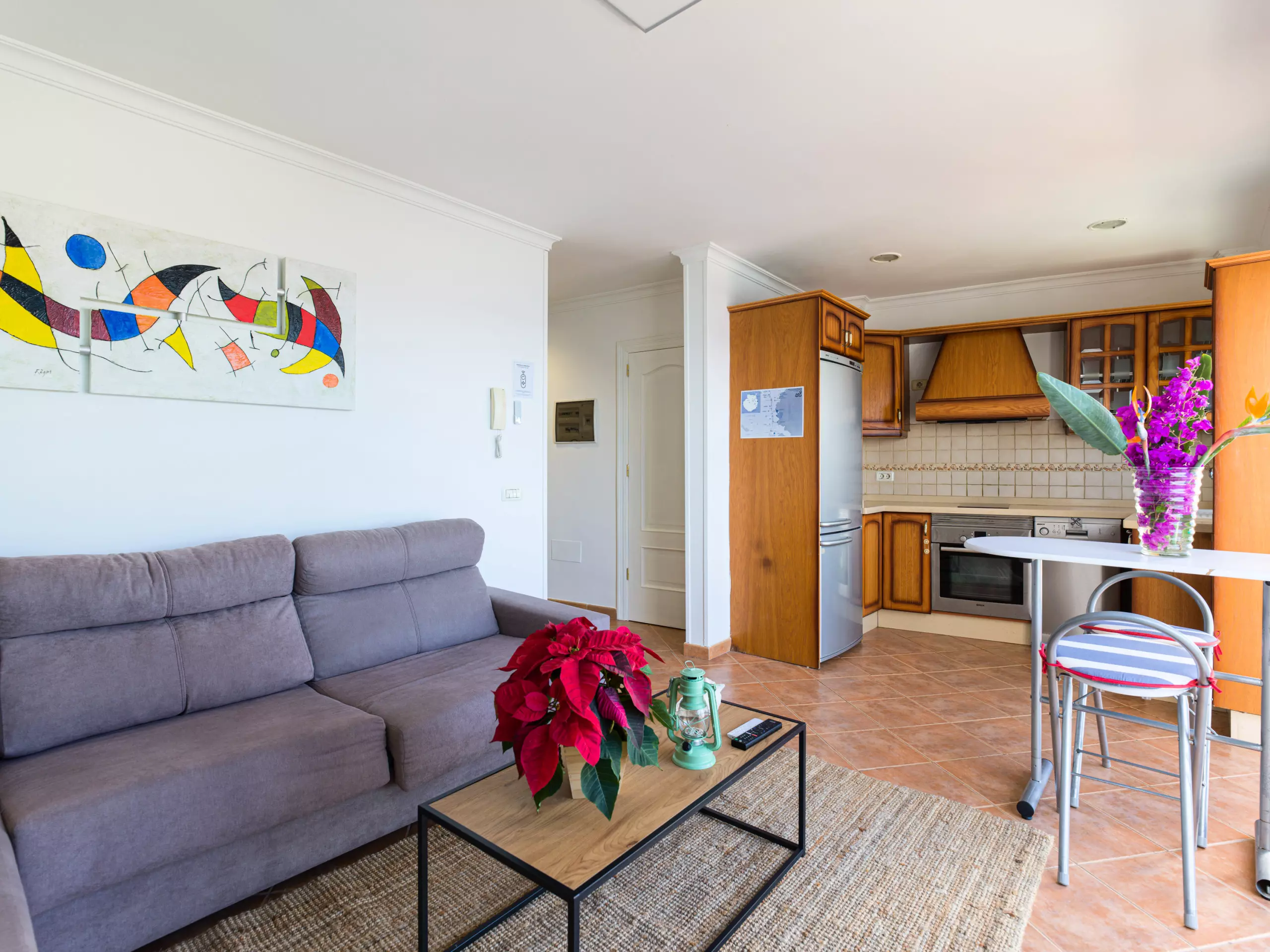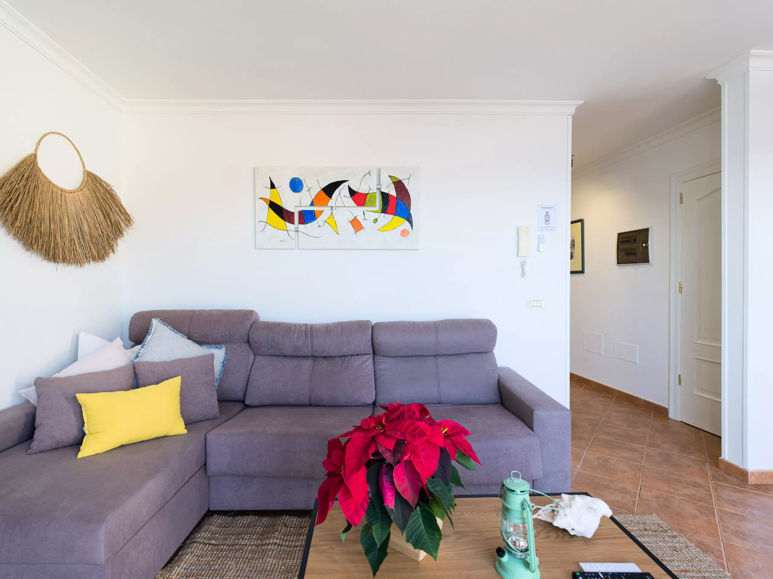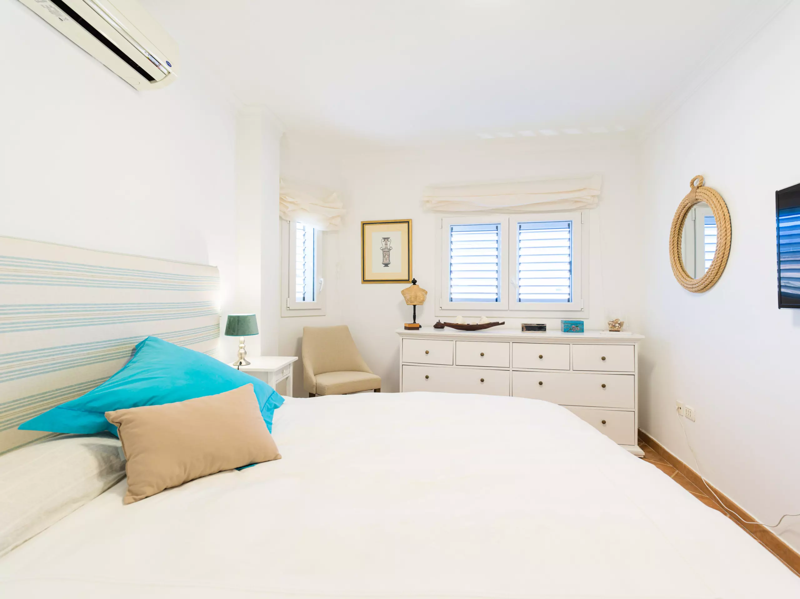 The living room has large windows, so it is very bright, from the four-seater chaise longue you can also enjoy the stunning view and the marine decoration honoring the maritime origin of the people, the living room has a 43-inch smart TV air conditioning, and electric esthor with remote control to regulate the light we want us to enter the living room.