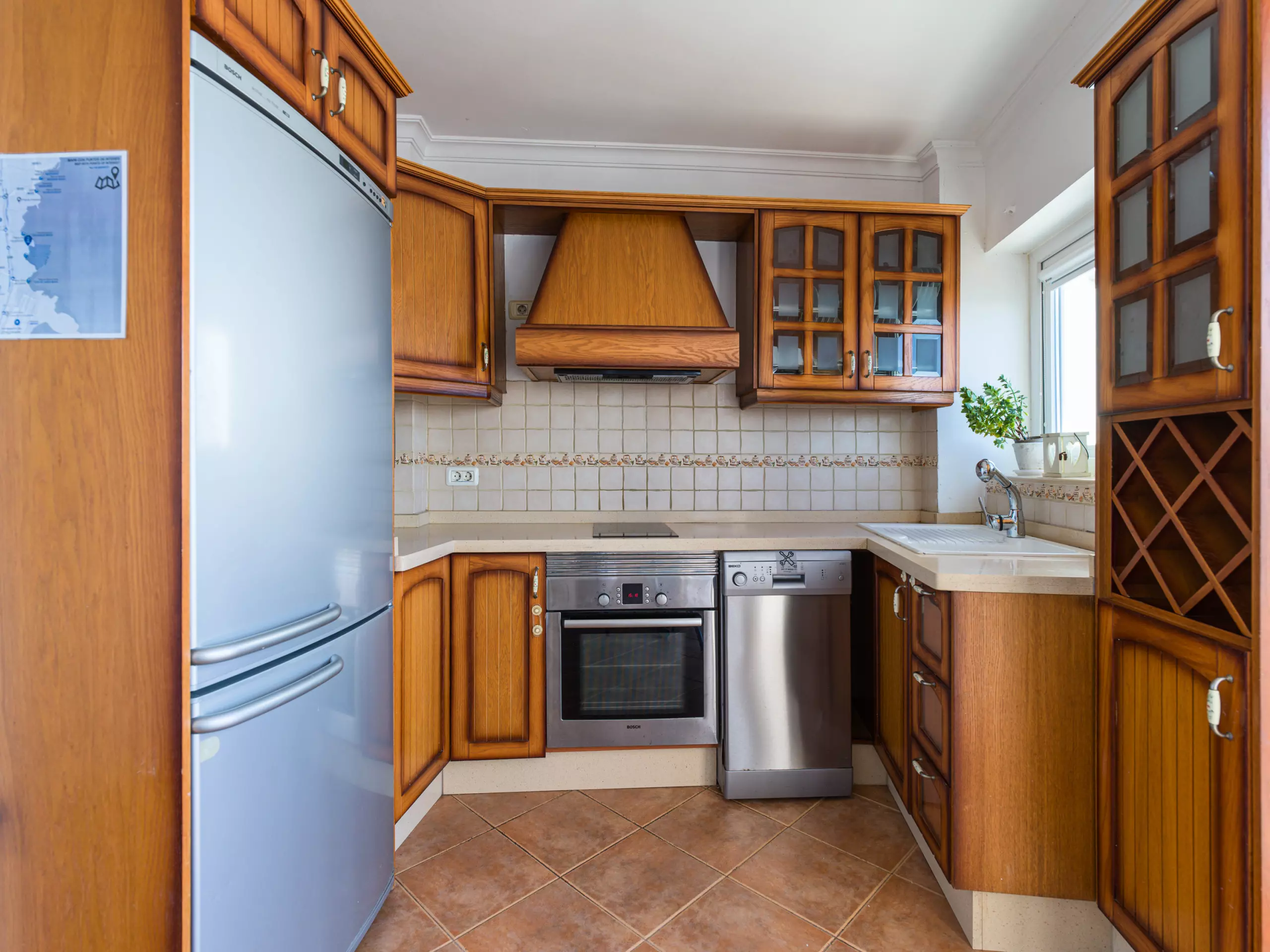 The fully equipped kitchen is integrated into the living-dining room and has an oven, dishwasher, extractor fan, fridge-freezer, small appliances and recycling bins.
