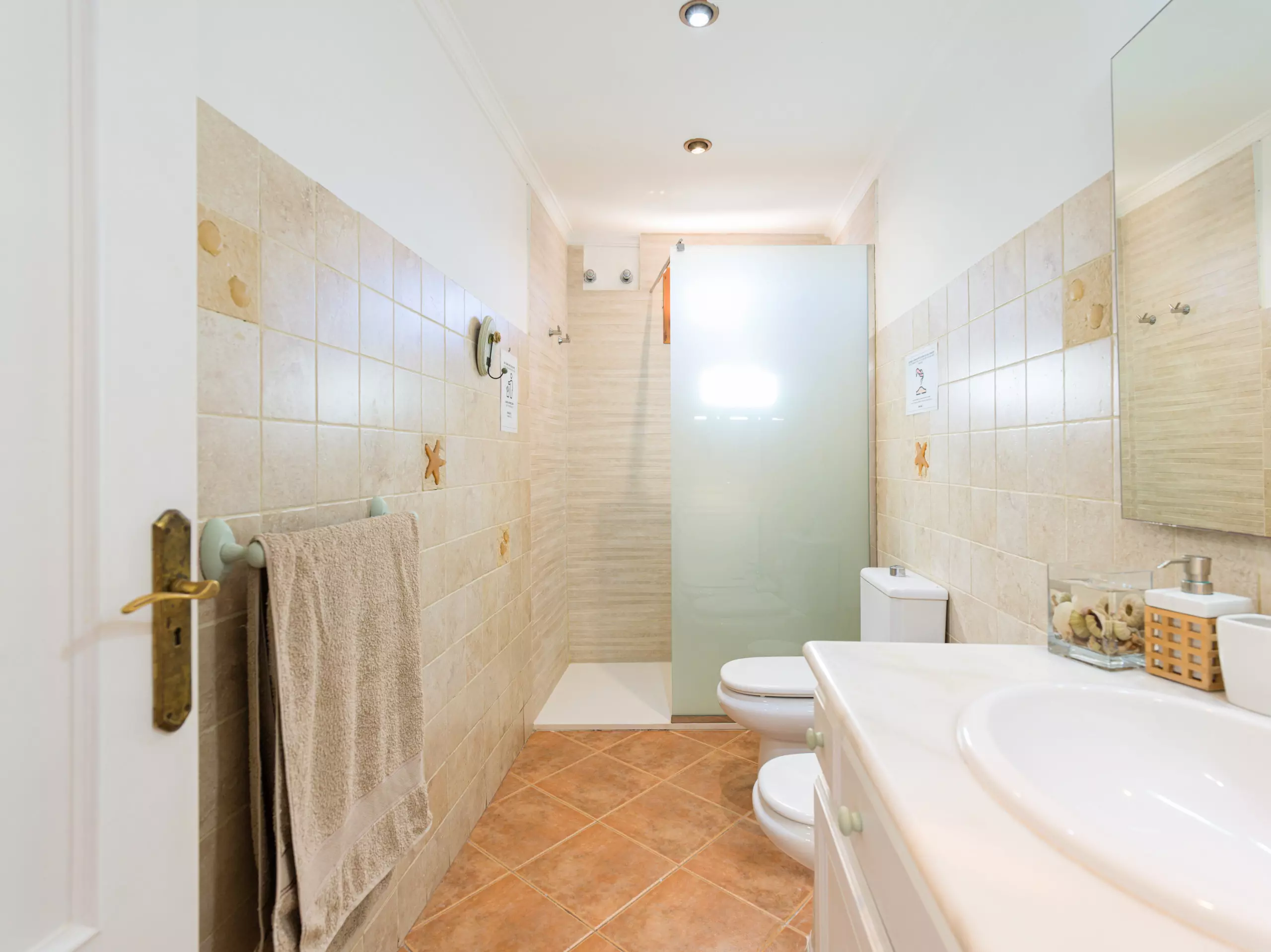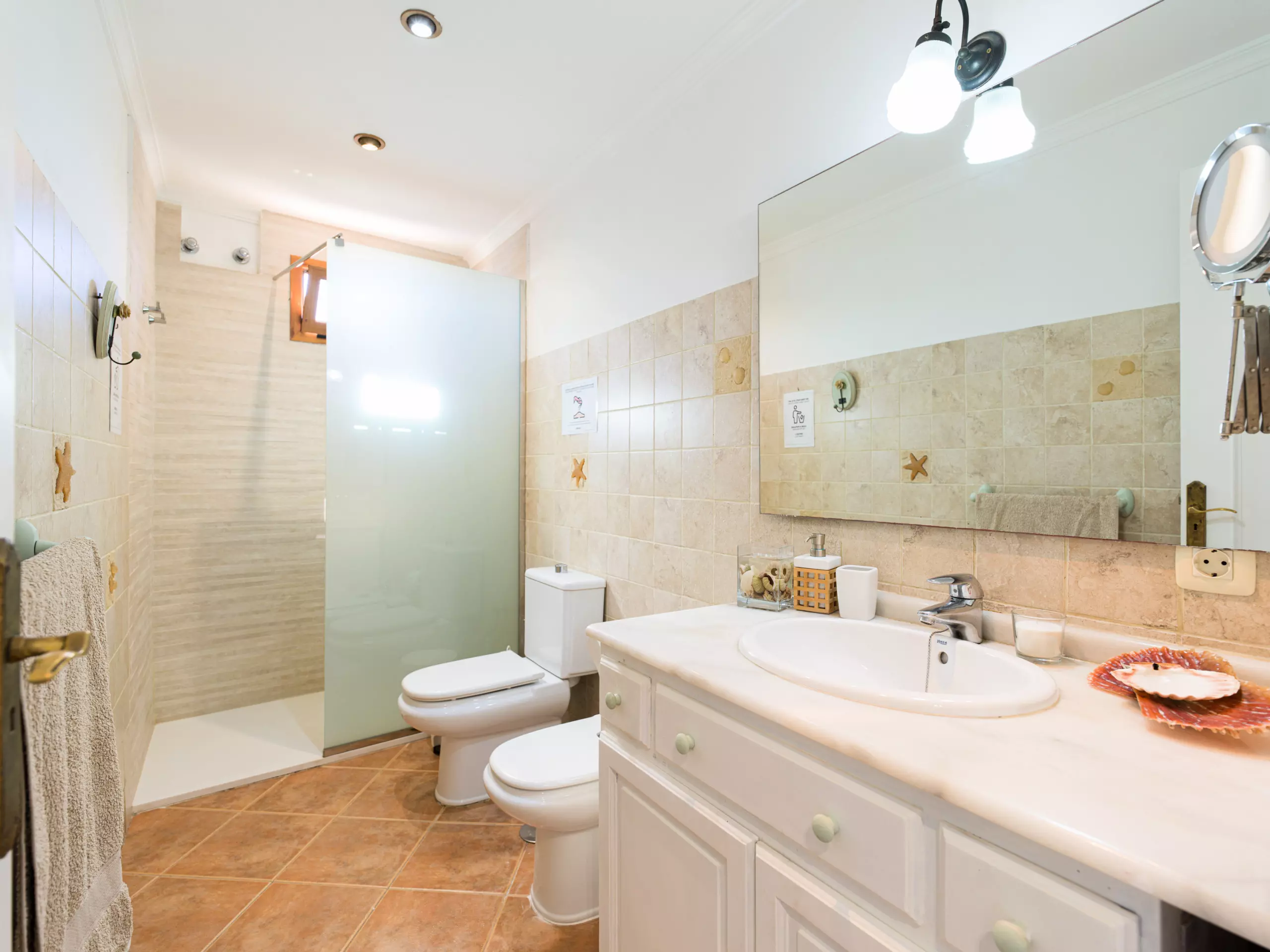 The full bathroom is equipped with a shower tray, toilet, bidet, storage space, hairdryer and aid kit.
