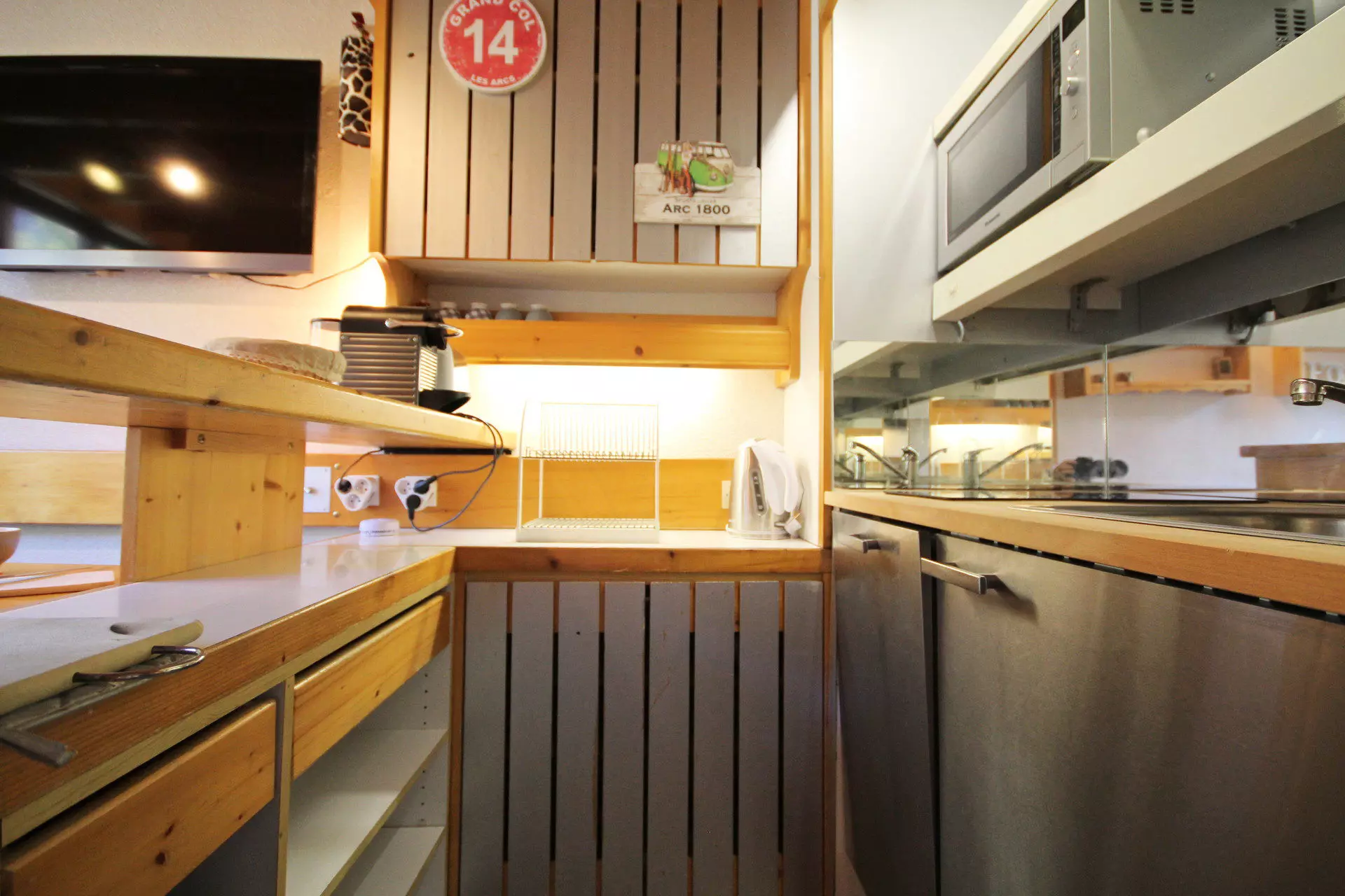The renovated kitchen, open to the living room, is equipped with 2 ceramic hobs, a microwave, electric coffee maker, kettle, refrigerator and dishwasher.