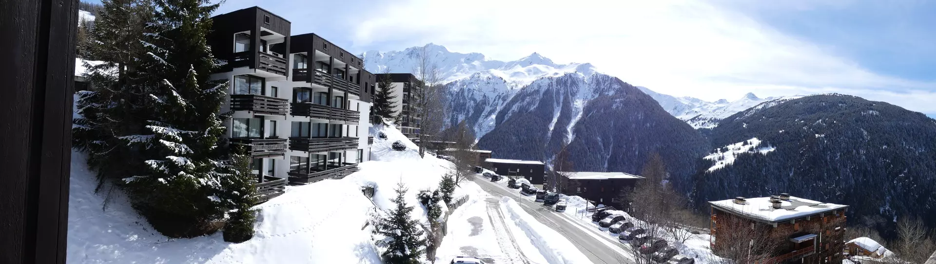 The Belvédère residence is a 1970s building located in a quiet area of the Aiguilles district, at an altitude of 1,650 m in the Plan-Peisey resort. The apartments offer panoramic views from the southeast to the southwest. The ski slopes are just 50 meters away, and within a 100-meter radius you will find the resort center, ski school, and shops.