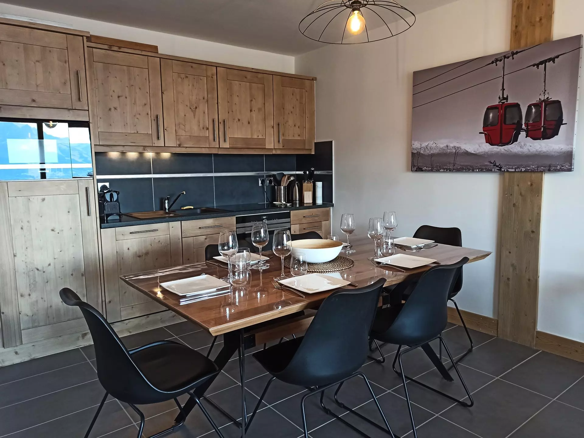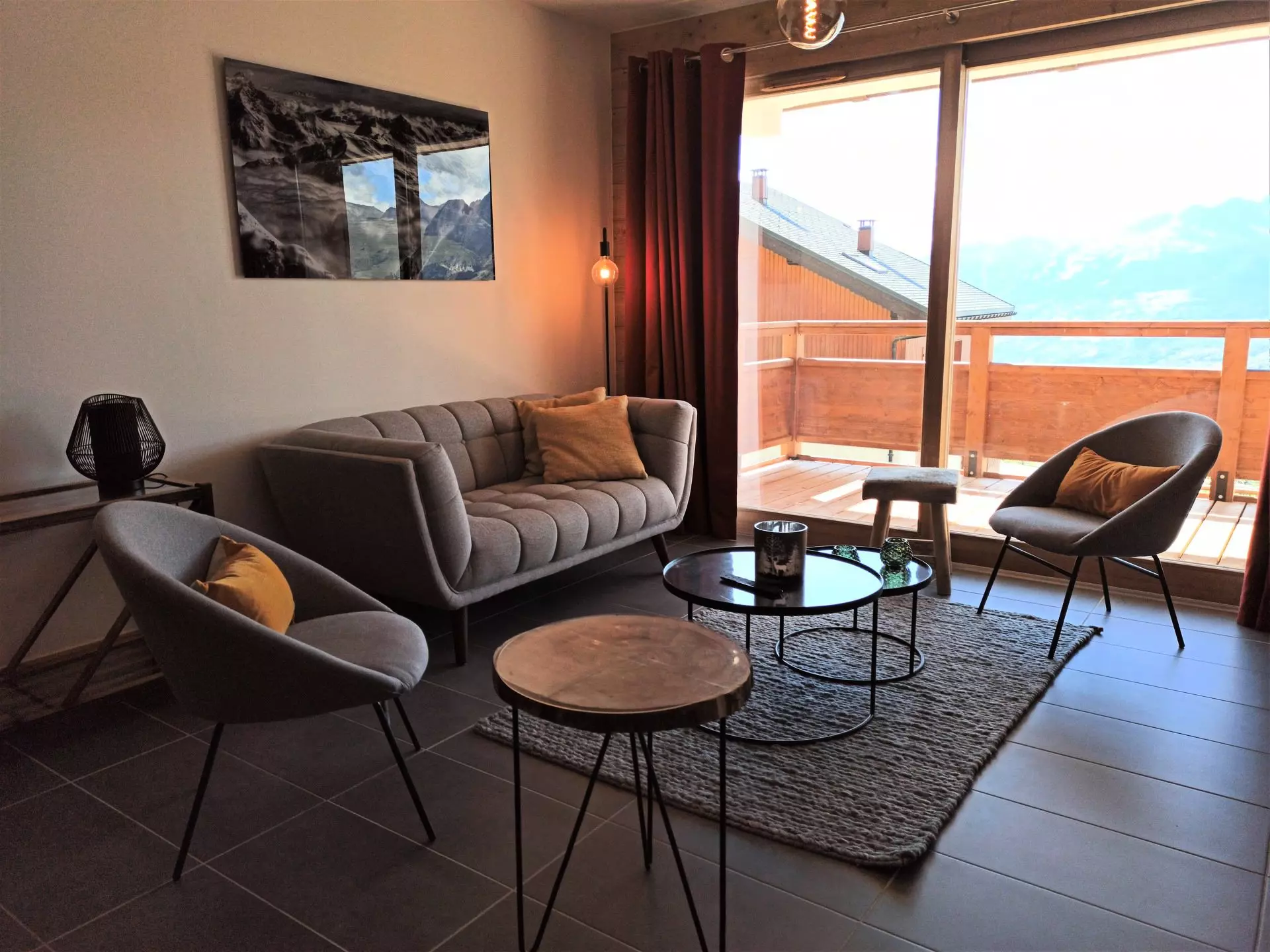 This high-end apartment is rented for 6 people. It is composed of a bedroom with a double bed with a private balcony and a shower room with WC, a bedroom with 2 x 2 bunk beds, a bathroom with WC and a fully equipped kitchen open to the living room opening onto a west-facing balcony with a beautiful view of our mountains and valley.