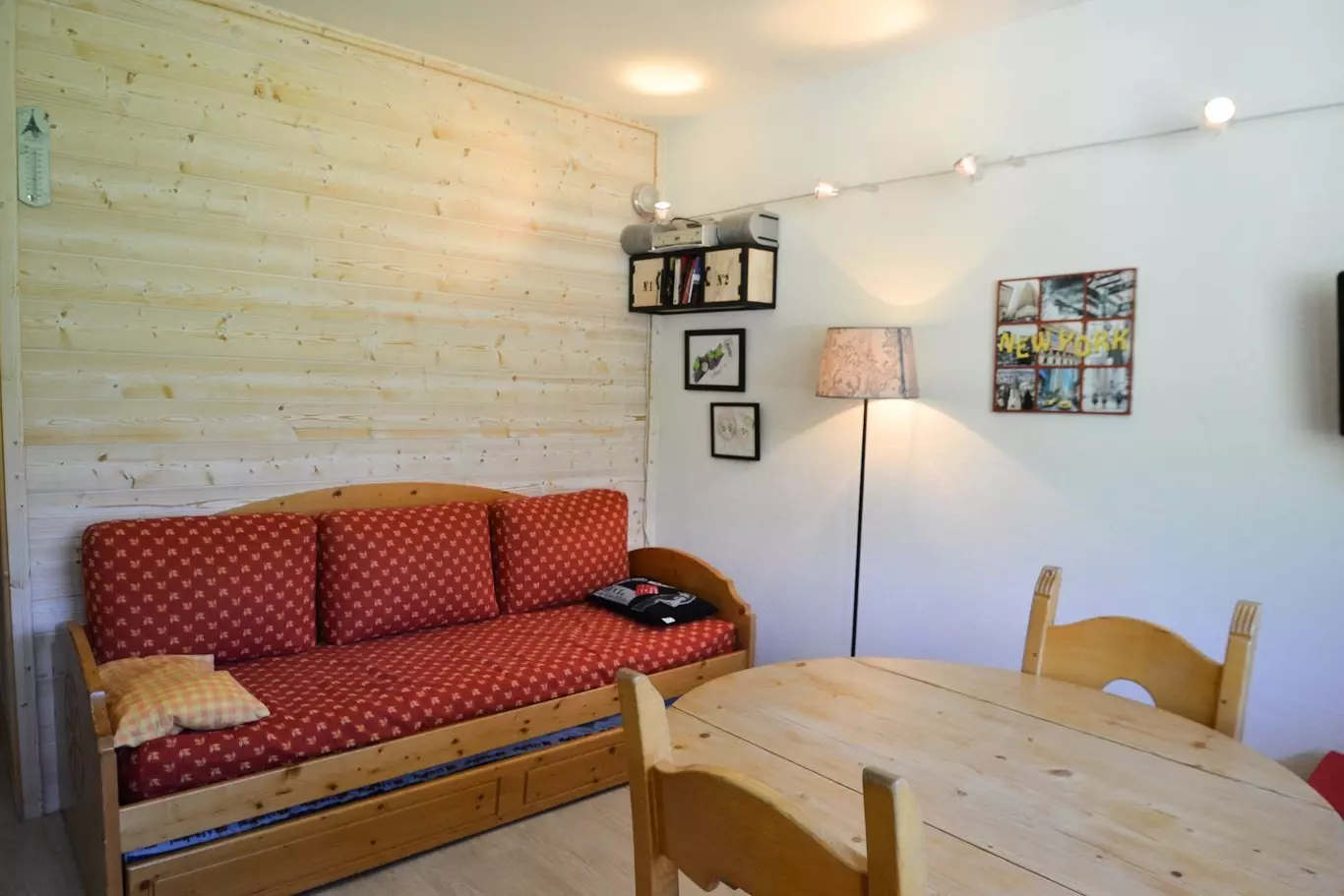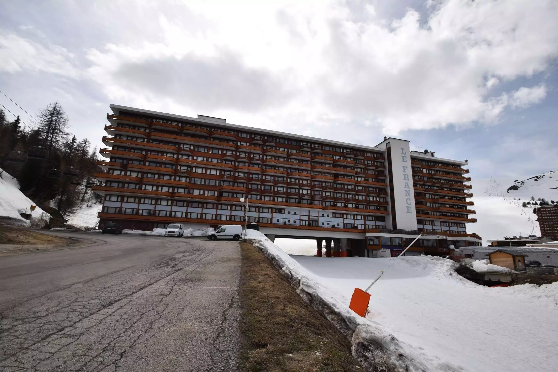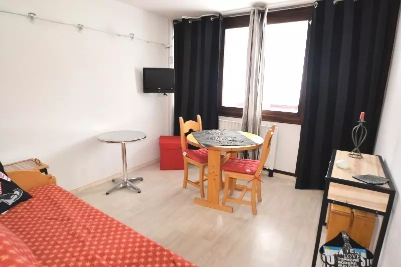 Studio 3/4 pers, 22 m2, facing SOUTH with balcony, view of the slopes, on the 5th floor with elevator - Kitchen in the entrance: 2 electric hotplates, refrigerator, mixed oven, dishwasher. Living room: 2 pull-out beds, dining area, TV - Closed cabin area: 2 bunk beds for 1 pers - Bathroom: shower, WC included - Very bright studio, with a beautiful view of the slopes and the mountain - Bedding: duvets - Ski locker N°536 on the ground floor, UCPA side - Residence - LE FRANCE: located at the foot of the slopes, connected to the shops by gallery - PETS NOT ALLOWED and NON-SMOKING APPT - End of stay cleaning, sheets, towels and ski passes are optional.