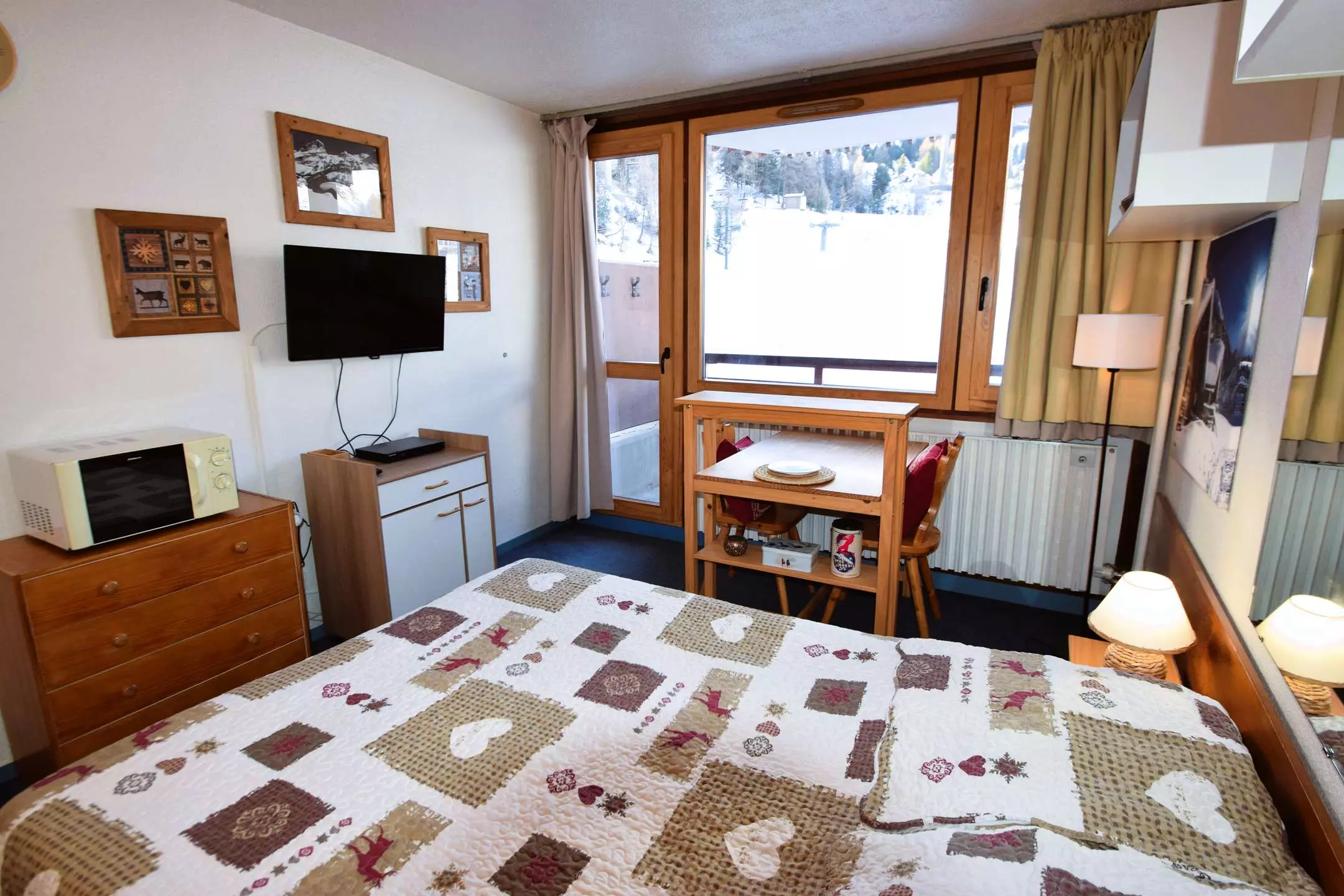 Very pleasant studio, well located with direct view of the slopes. PETS NOT ALLOWED - non-smoking apartment - End of stay cleaning, sheets, towels and ski passes are optional - Ski locker n°129 on the "Villages" side, level -1 - Residence located at the foot of the slopes, connected to the shops by gallery - Outdoor parking behind the residence.