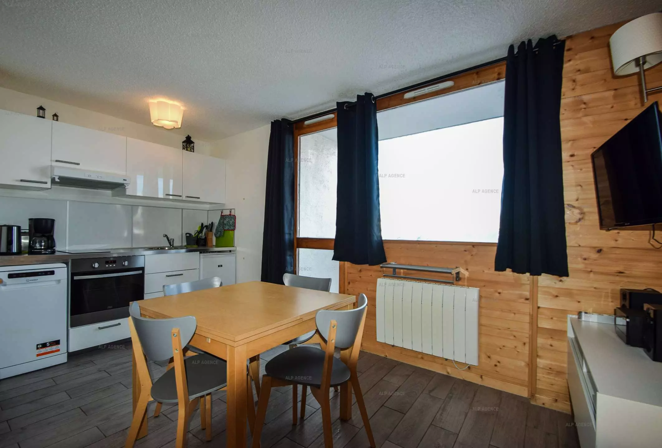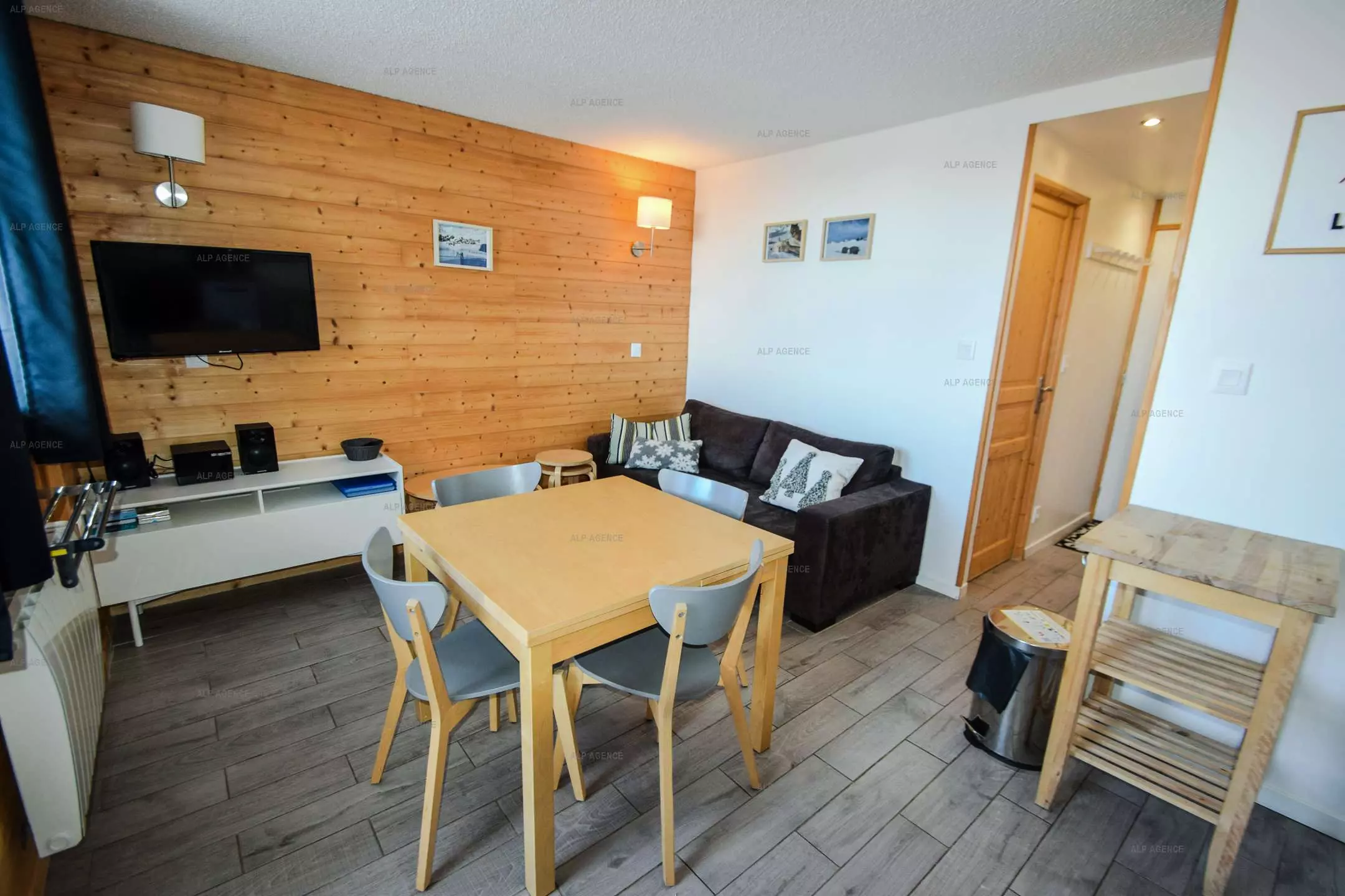 Living room: dining area, 1 double sofa bed (140x190cm), TV. Bedroom: 1 double bed (140x190cm) and 1 single mezzanine bed (90cm), TV. Bathroom: shower, separate WC - Floors: tiled. Bedding: duvets - Ski locker no. 251 on the ground floor. Comfortable apartment, AT THE FOOT OF THE SLOPES and in the heart of the resort. Pets not allowed - Residence composed of 4 floors, at the foot of the slopes and close to the shopping center. Free parking nearby - Connection to Plagne Centre by the Télébus: free cable car. Reception and key collection: ALP AGENCE - Galerie Le Pelvoux - 73210 PLAGNE CENTRE - Tel: 04 79 55 12 20
