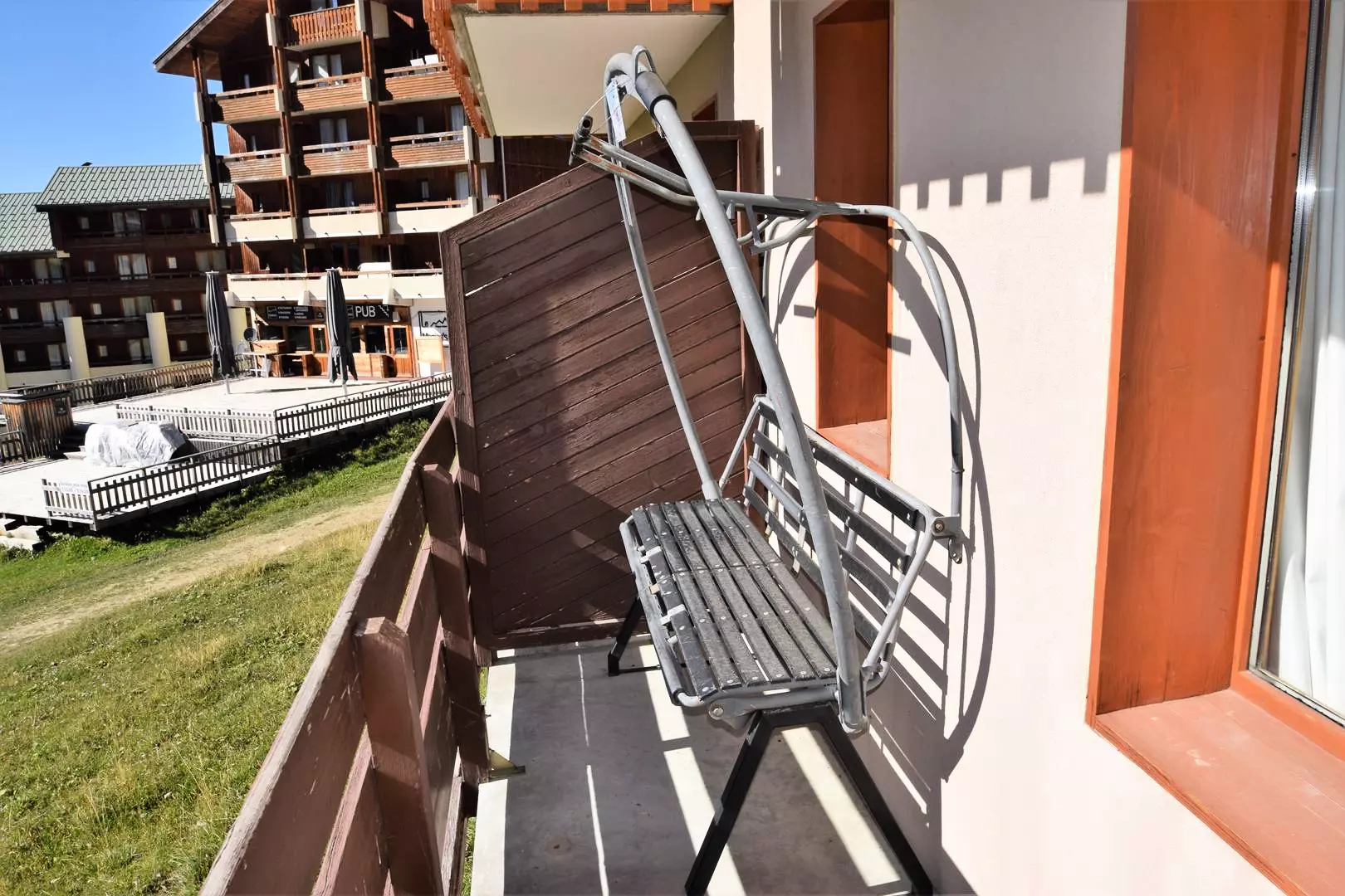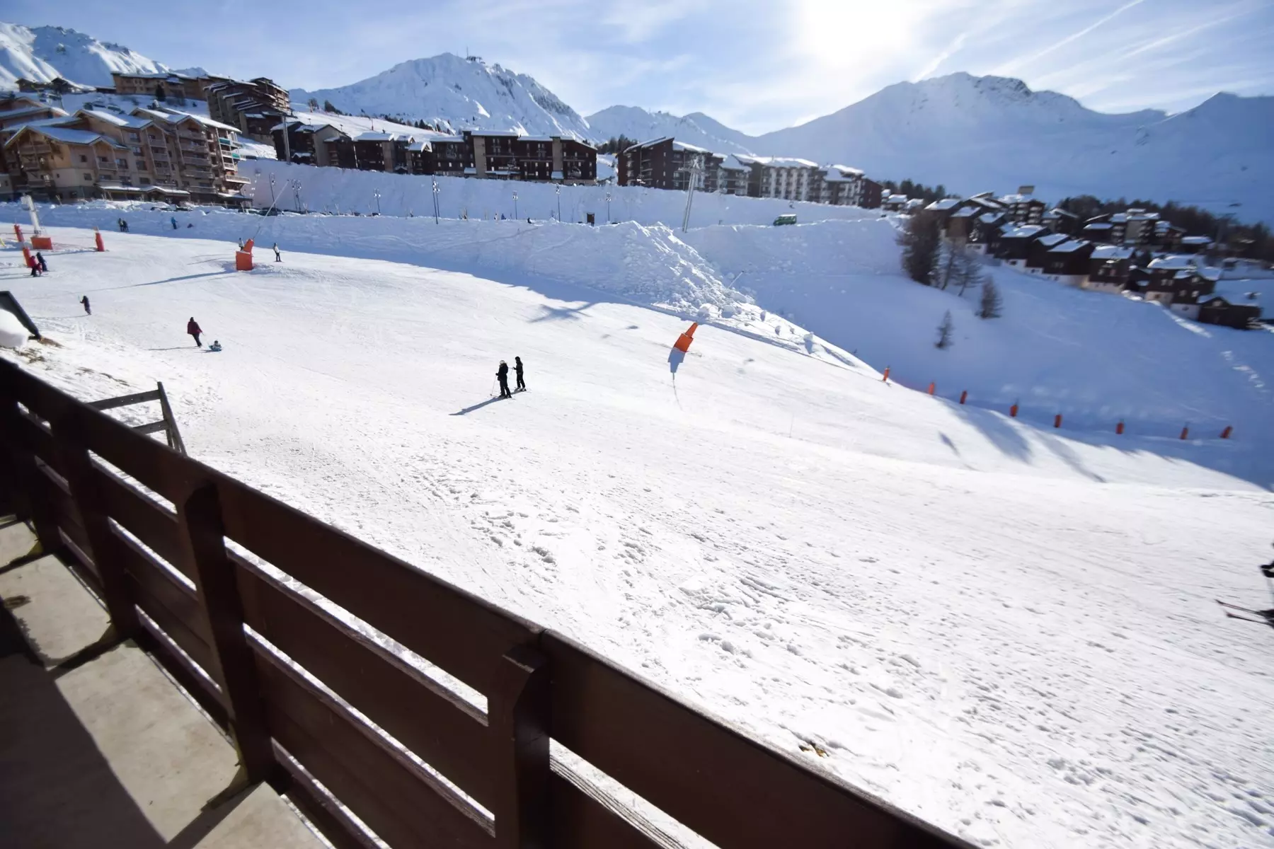 3-room apartment for 6 people, 42m2, south-facing with balcony located on the 1st floor with elevator - Kitchen: in the living room: 4 ceramic hobs, refrigerator, microwave oven, dishwasher - Living room: dining area, lounge area, 2 single sofa beds 80cm, TV - Bedroom 1: 1 double bed 160cm - Bedroom/cabin 2: 2 bunk beds - Bathroom 1: bathtub - Bathroom 2: shower, WC included - Floors: carpet except kitchen, WC, bathroom: plastic - Bedding: duvets - Sheets, towels, end-of-stay cleaning and ski passes are optional. Ski locker No. 102 at the slopes exit level - Bright apartment, located in the heart of the ski area - PETS NOT ALLOWED. The Residence: AT THE FOOT OF THE SLOPES, close to shops and the ski school - Plagne Soleil is connected to Plagne Villages / Centre by bus shuttle or cable car.