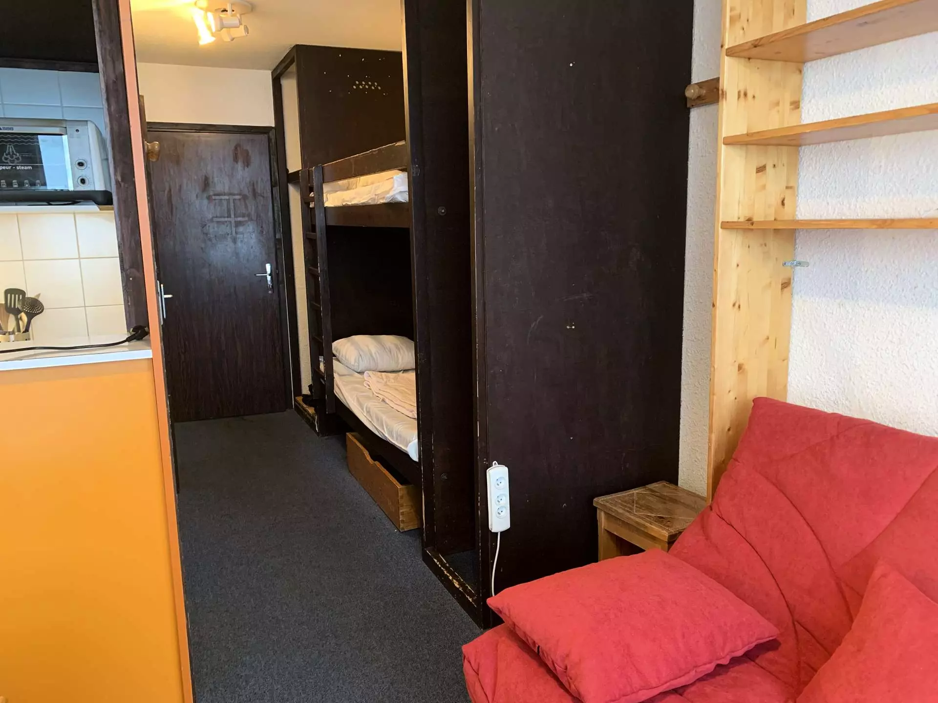 20m² mountain corner studio for 3 people on the 8th and top floor. South-west facing with balcony.