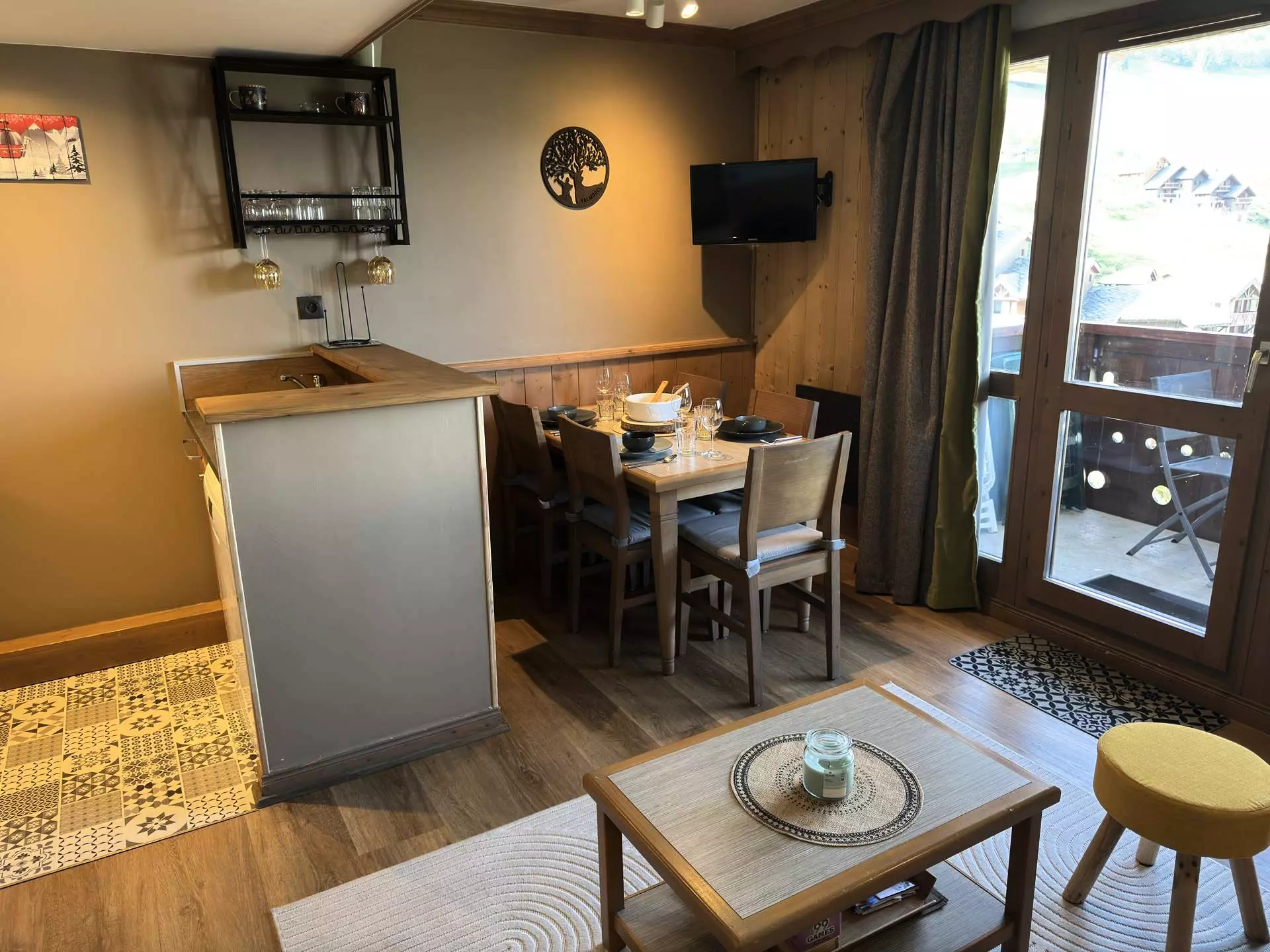 This apartment can accommodate 4 to 6 people. It is ideally located in the resort, in the hamlet of La Forêt. It is close to the slopes, shops, and the toboggan run.