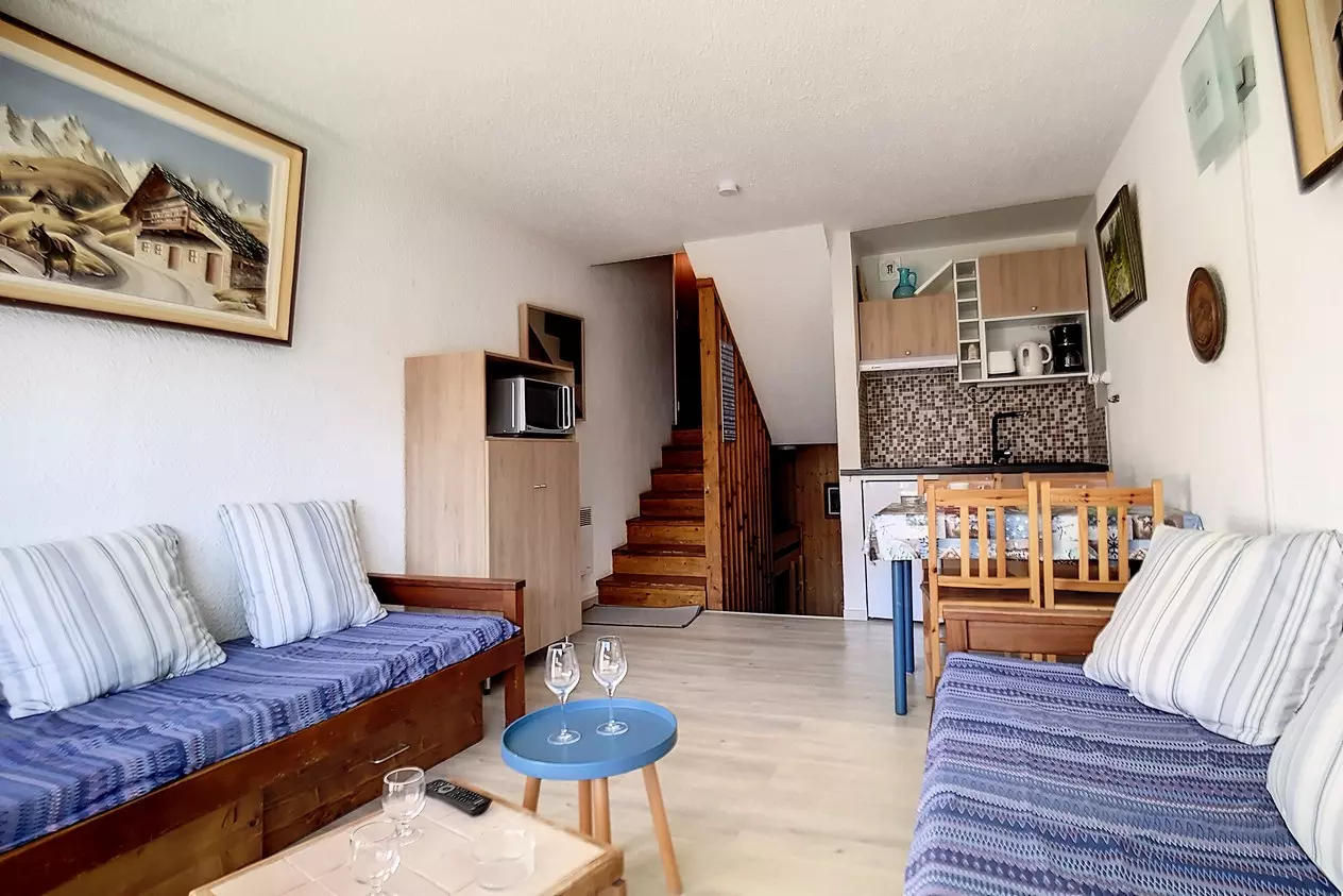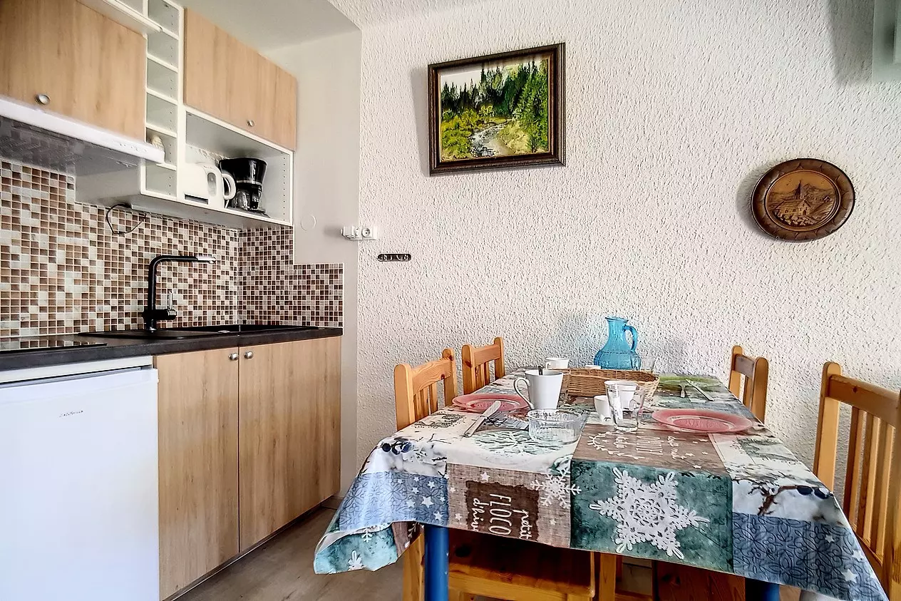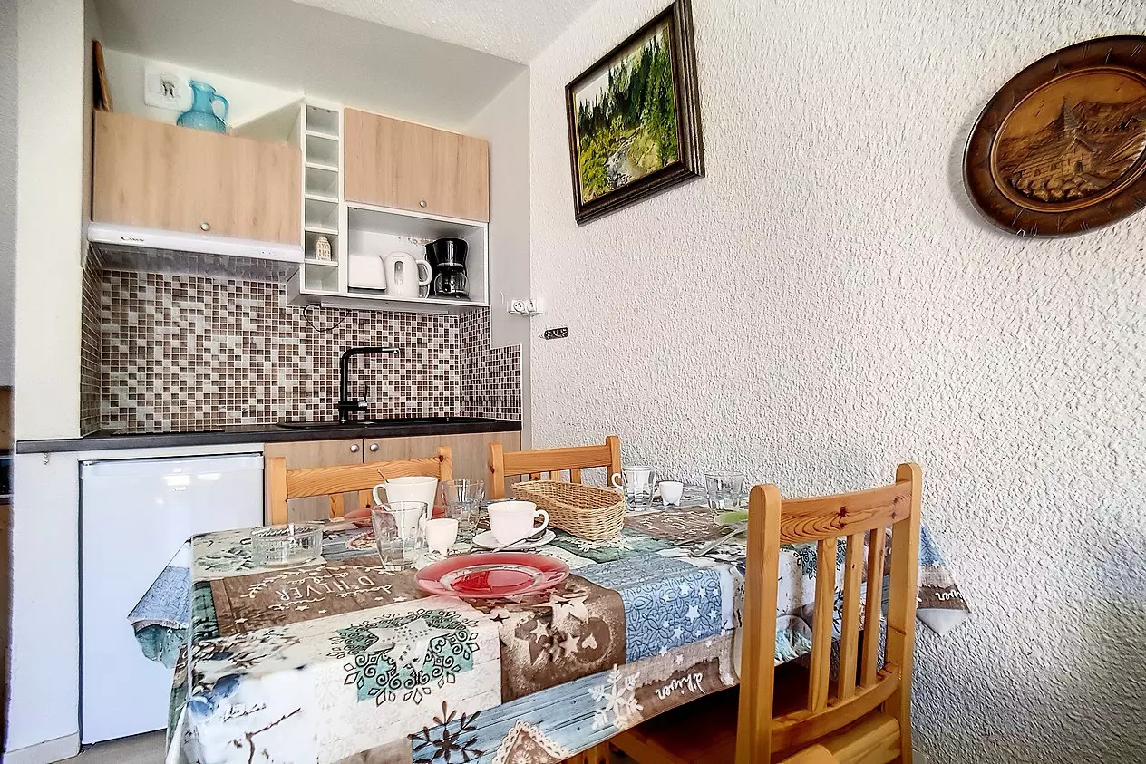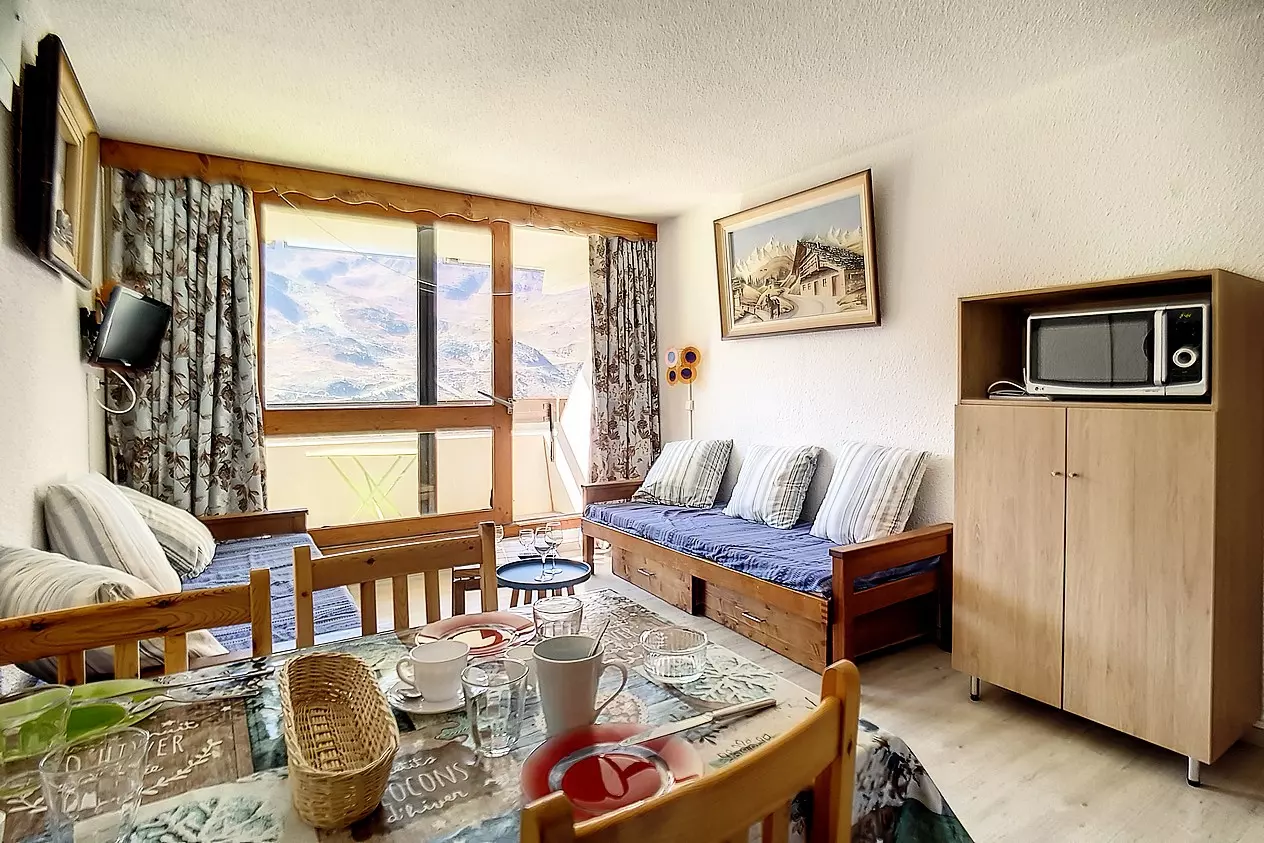 Studio with mountain corner of 29m² for 4 people with a South/West facing balcony located on the 5th floor with elevator.