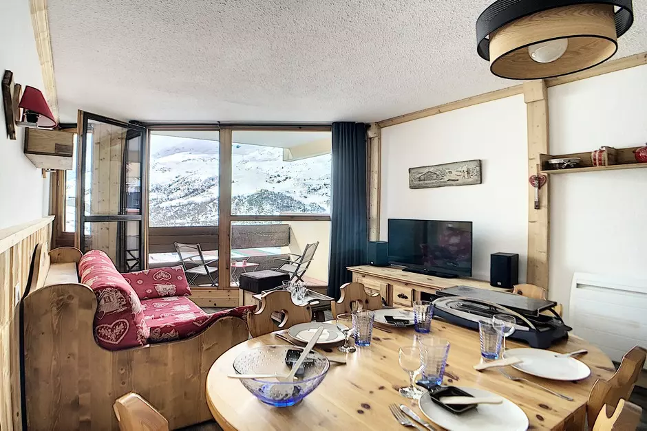 Superb, fully renovated, two-room apartment of 40 m² for 6 people located on the 4th floor with elevator. It faces south with a balcony. Apartment equipped with roller shutters. Entrance n°2