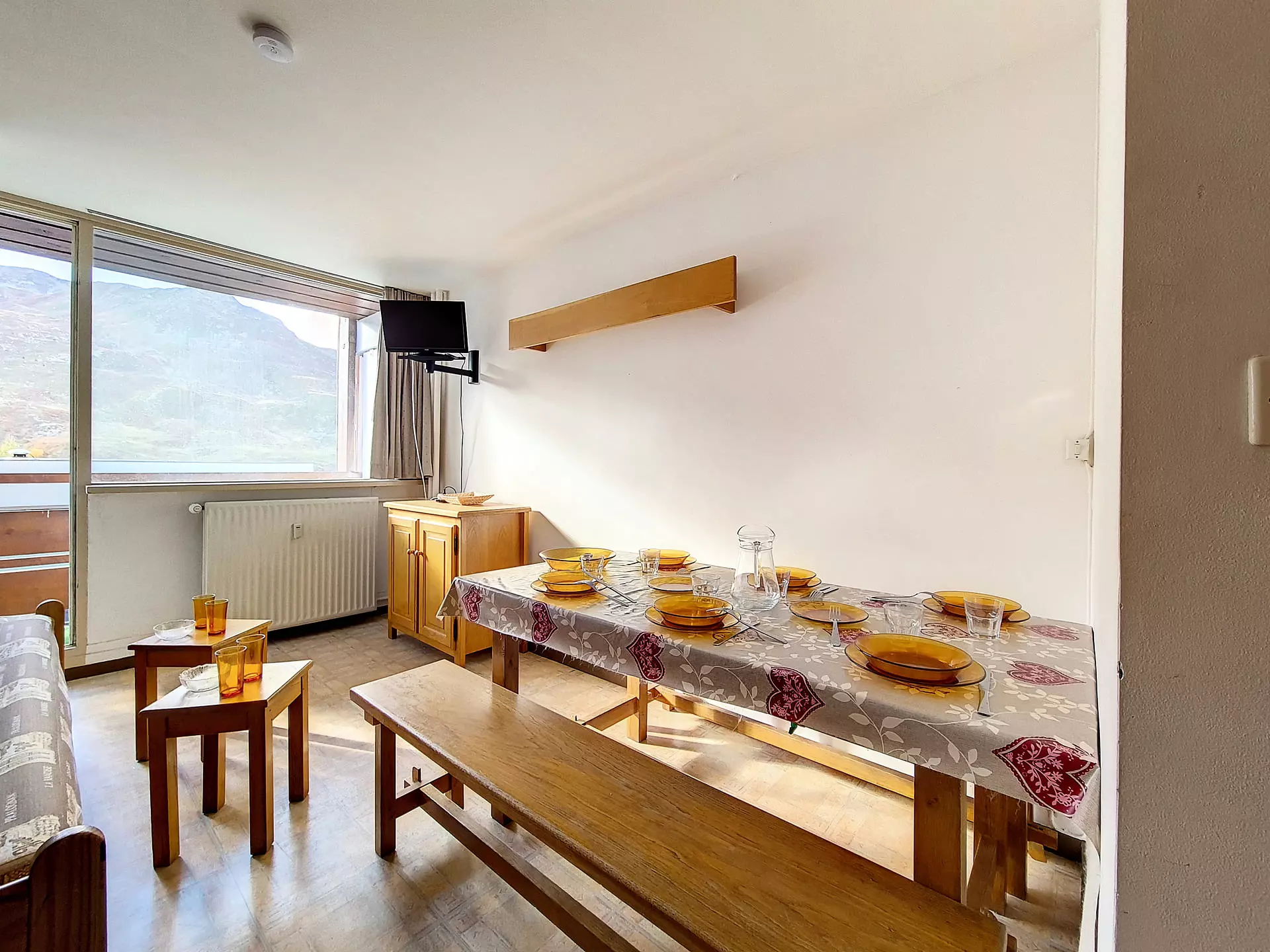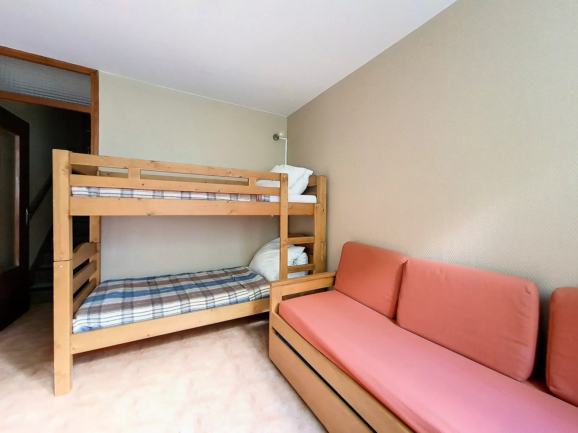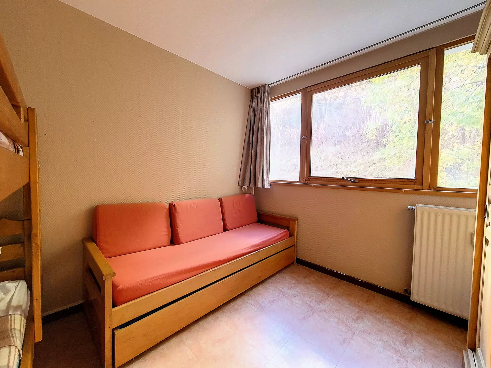 Living room: 1 single bed + 1 single trundle bed. Equipped with a television.