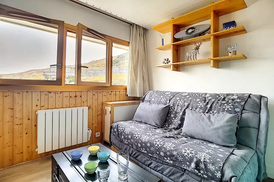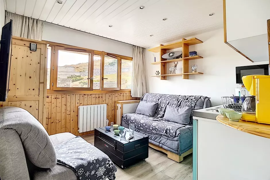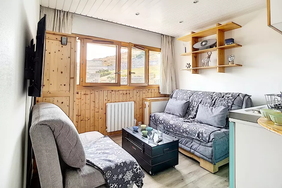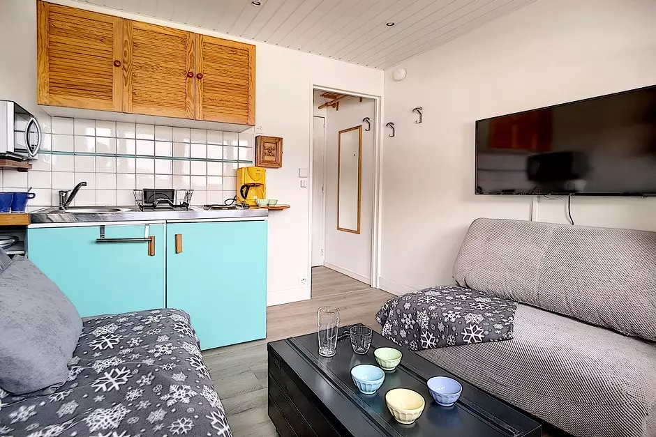 Living room with a sofa bed that converts into a bed for 2 people. Equipped with a flat-screen television.