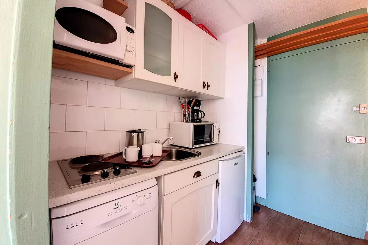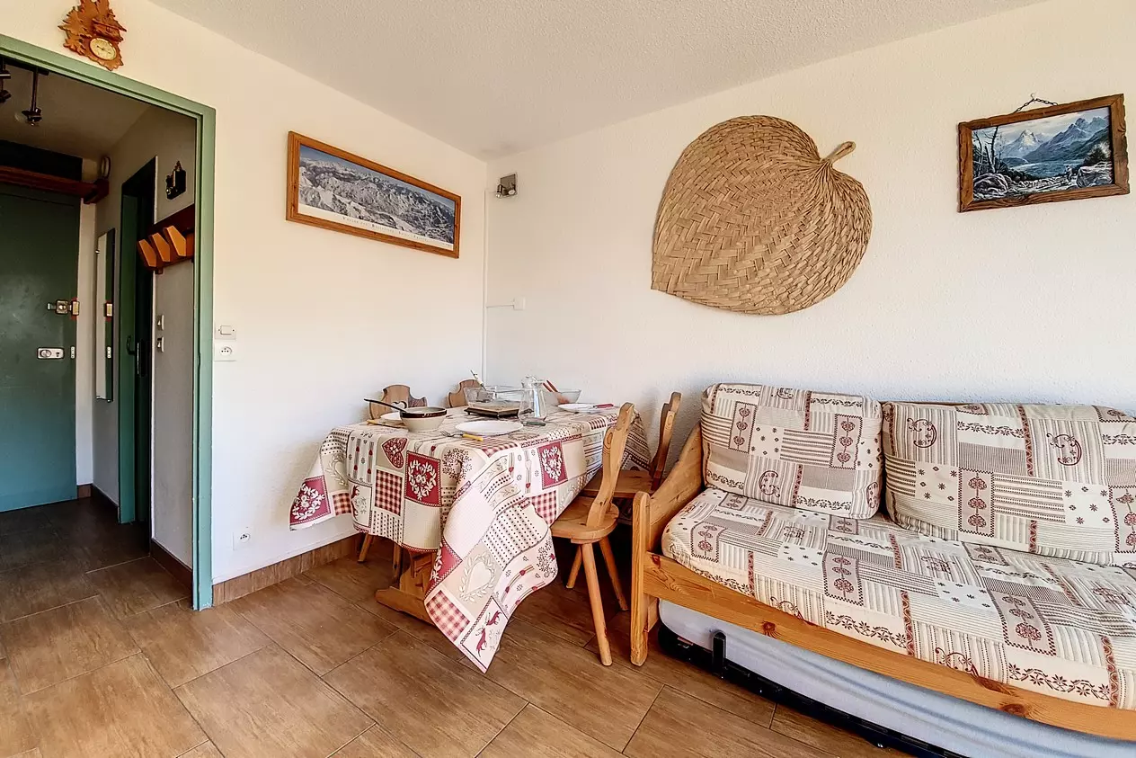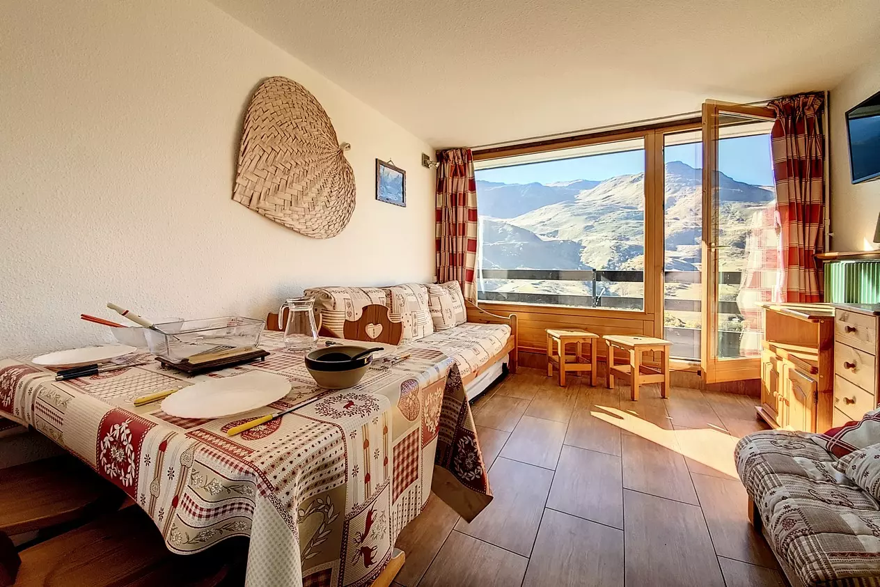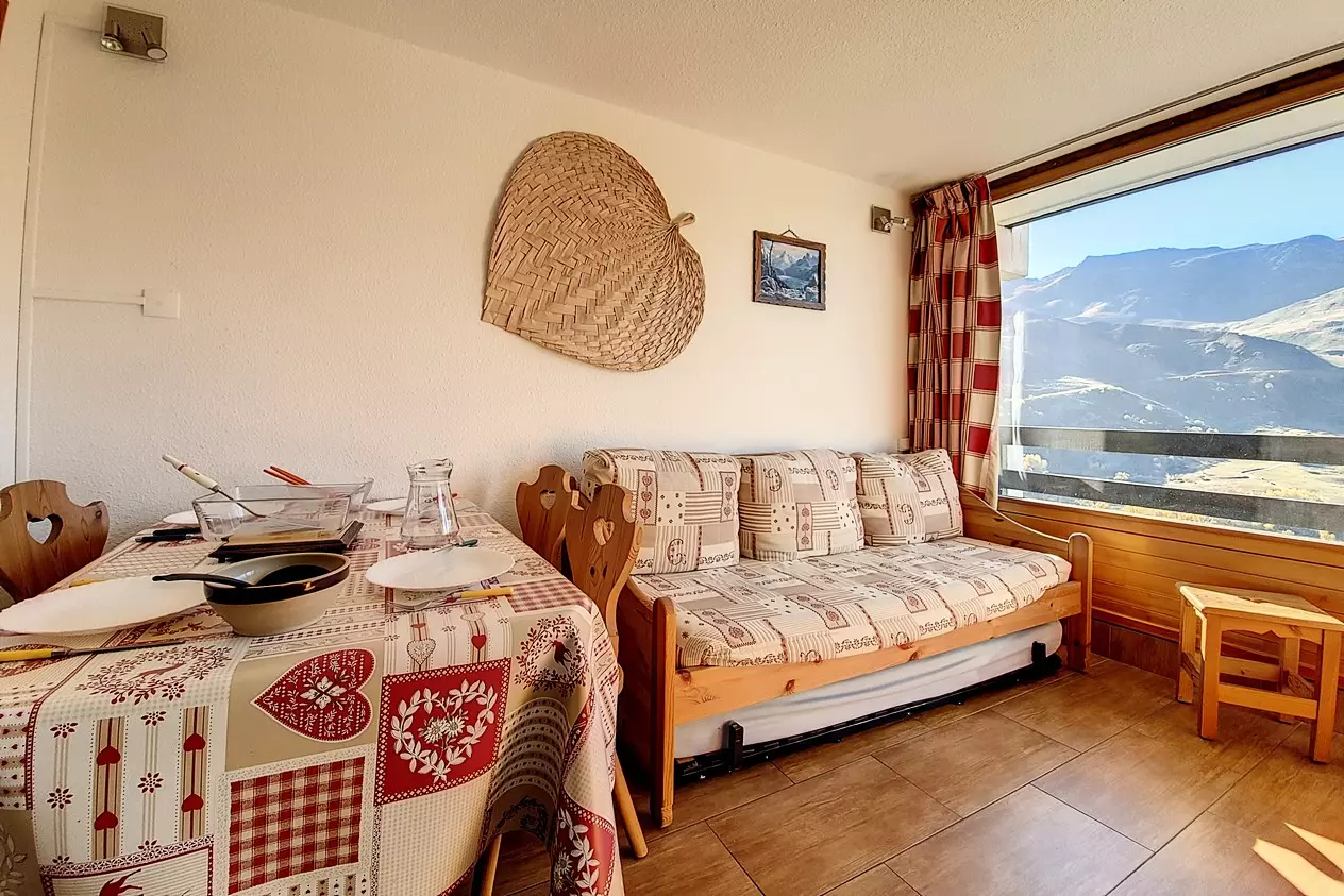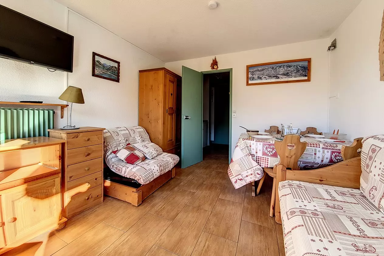 17 m² studio, for 3 people with small west-facing balcony (Masse view), on the 7th floor with elevator.
