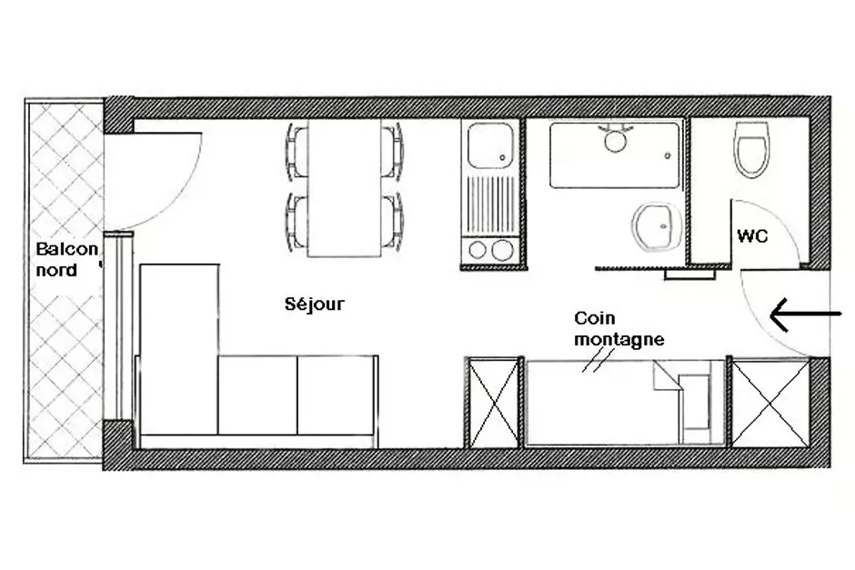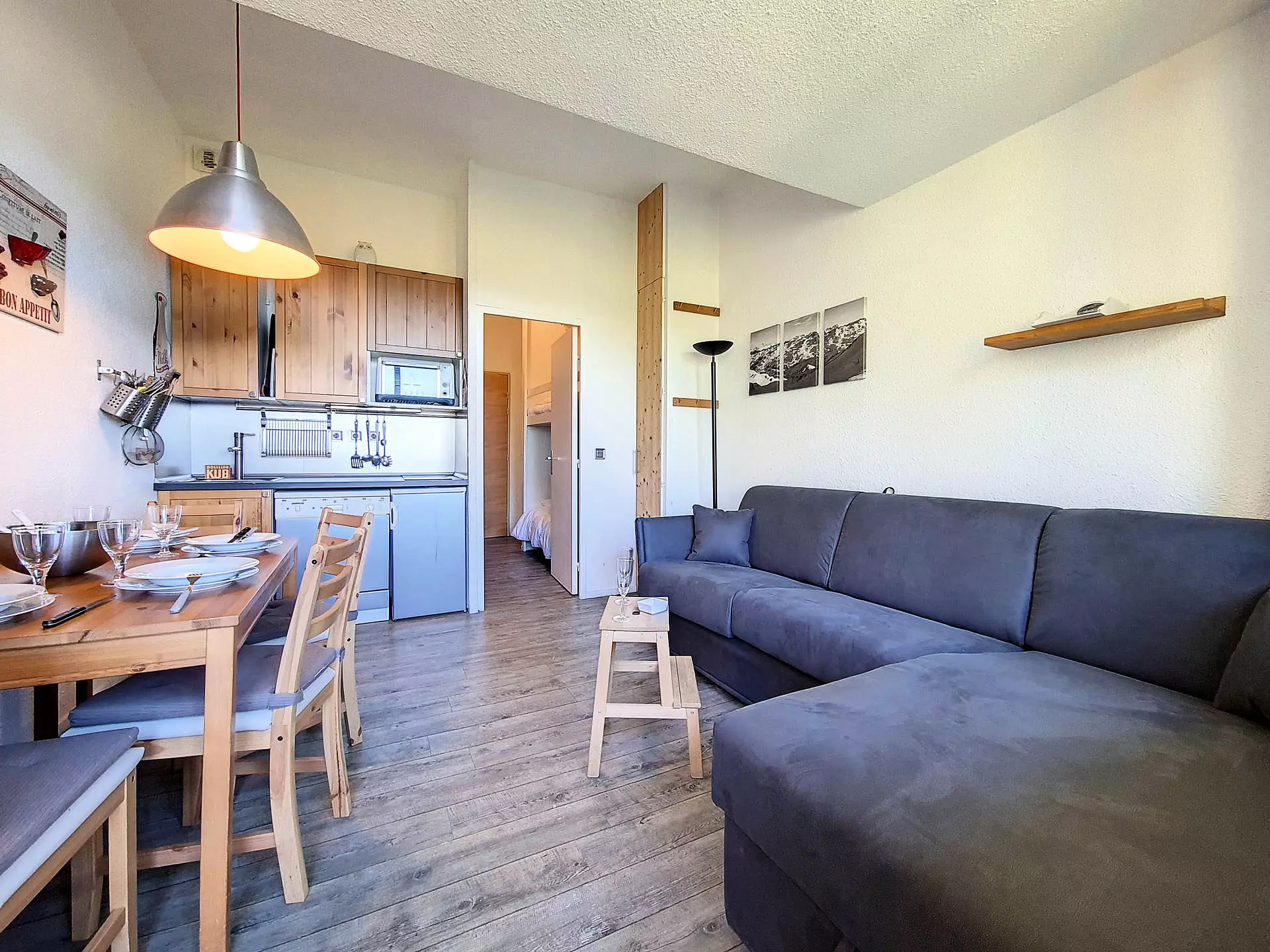 Mountain corner (Entrance separated from the living room by a door): 2 single bunk beds.