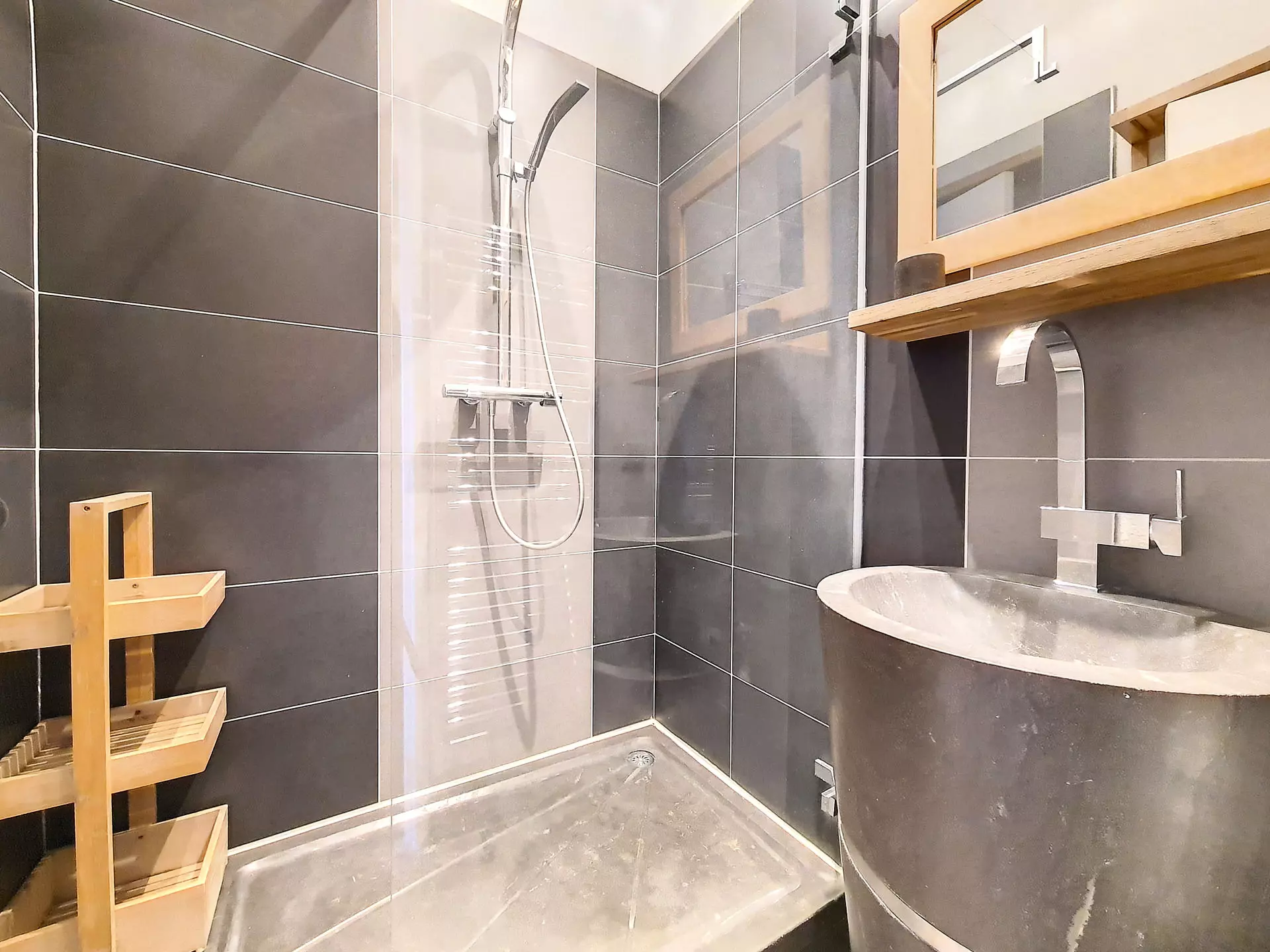 Shower room with walk-in shower.
