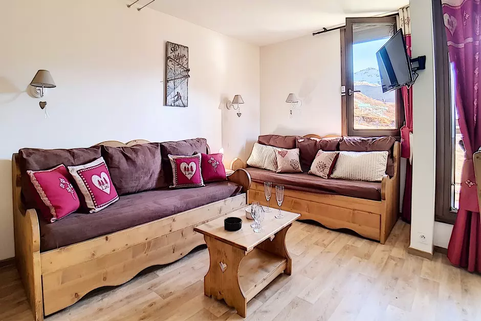 Living room: 2 single sofa beds and 1 single pull-out bed. Equipped with a television.