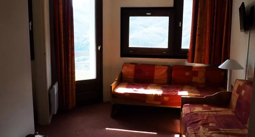 Living room: 1 single sofa bed + 1 pull-out bed. Equipped with a television.