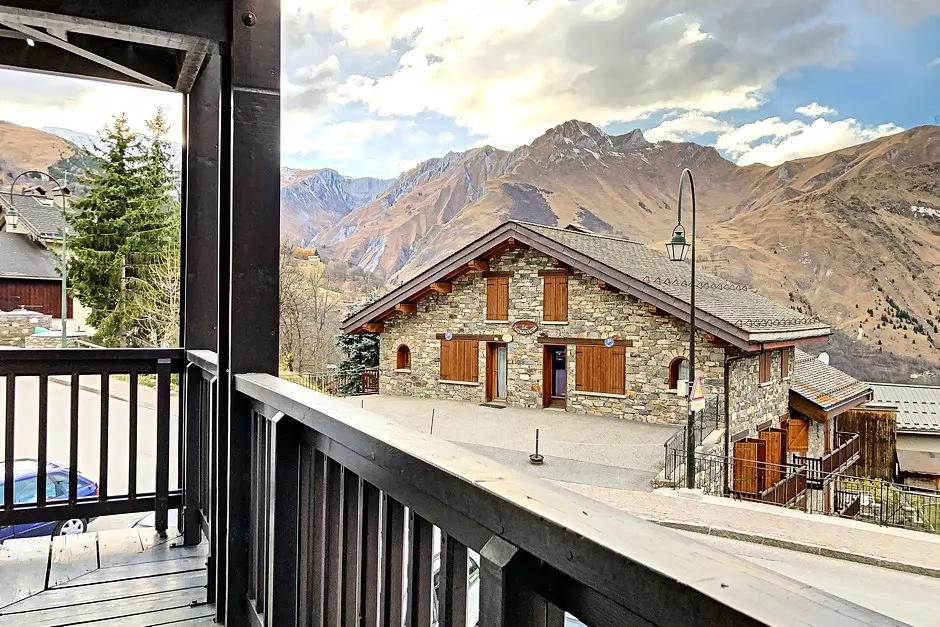 It is located on the 1st floor (no elevator) and has a large west-facing balcony with a view of the village.