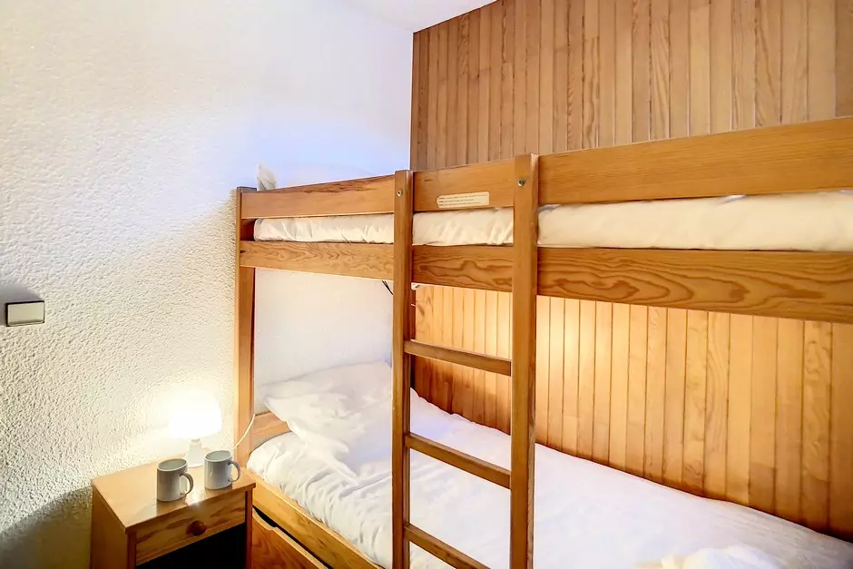 Bedroom: 2 single bunk beds (The top bunk is not suitable for children under 6 years old.)