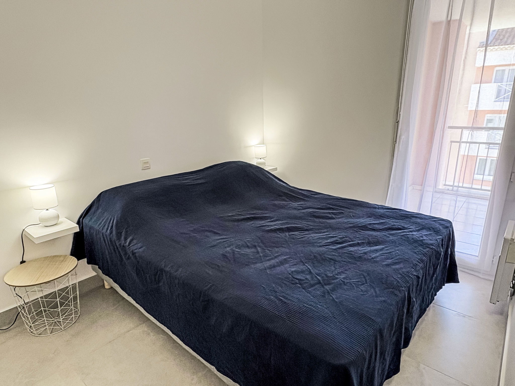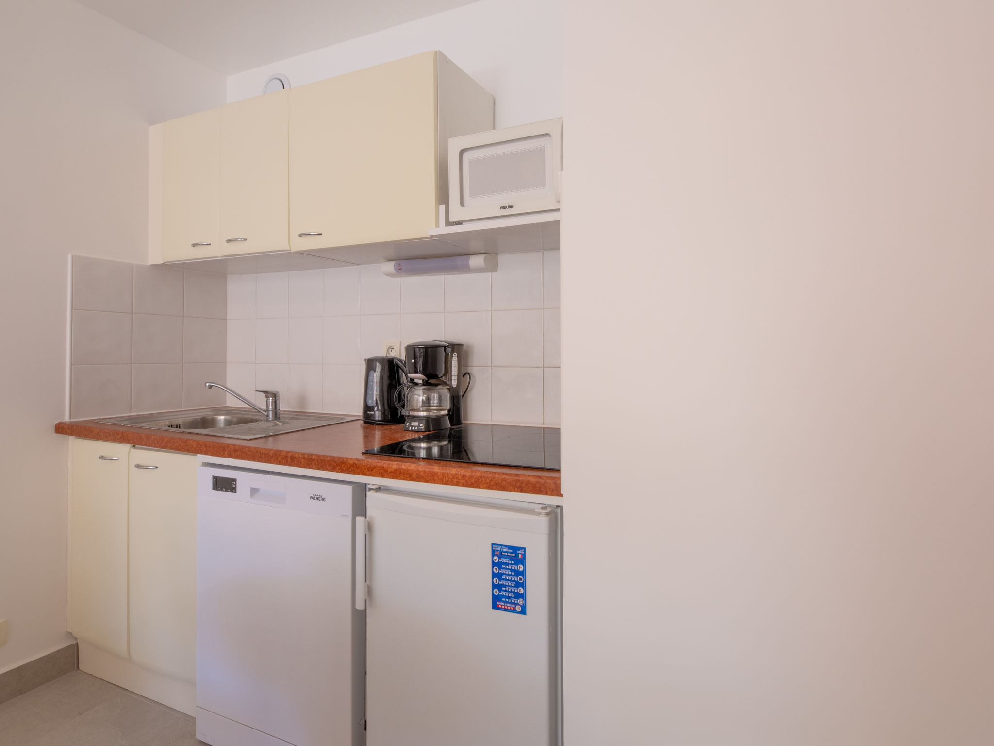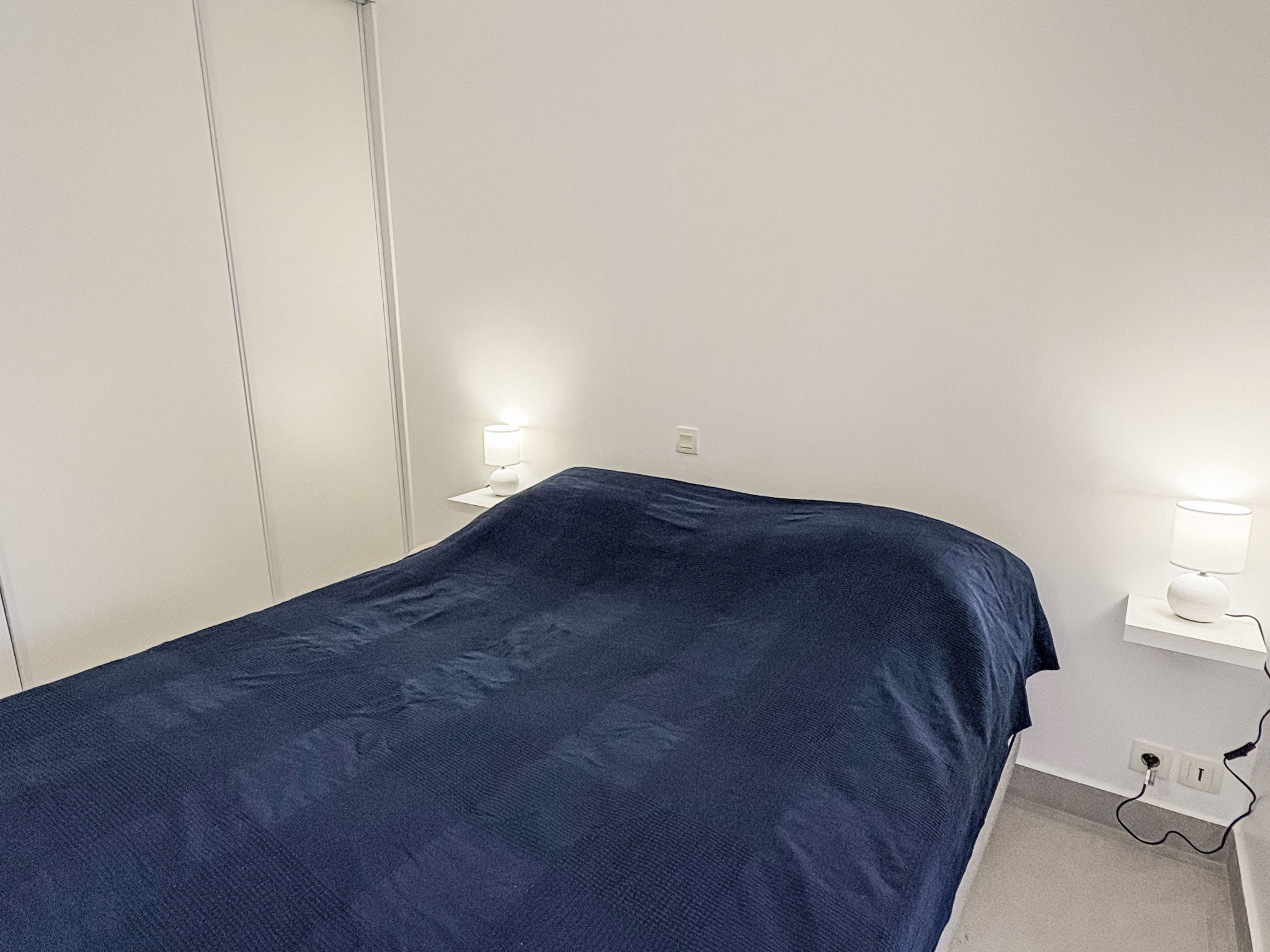 2-room apartment 28 m2 on 2nd floor. Renovated in 2025, beautiful furnishings: living/dining room with panoramic window with 1 double sofabed (1 x 135 cm, length 185 cm), TV (flat screen), fan. Exit to the terrace. 1 room with 1 bed (160 cm, length 200 cm), fan. Exit to the terrace. Open kitchen (dishwasher, 3 ceramic glass hob hotplates, toaster, kettle, microwave, electric coffee machine). Bathroom, sep. WC. Heating. Terrace 20 m2 partly roofed. Terrace furniture. Side view of the sea. Facilities: washing machine, iron, hair dryer. Internet (WiFi, extra). Parking space n A27 (roofed, 1 car). Please note: smoke alarm. Offer by a private individual according to Art. 155, IV of CGI. CBQPGP