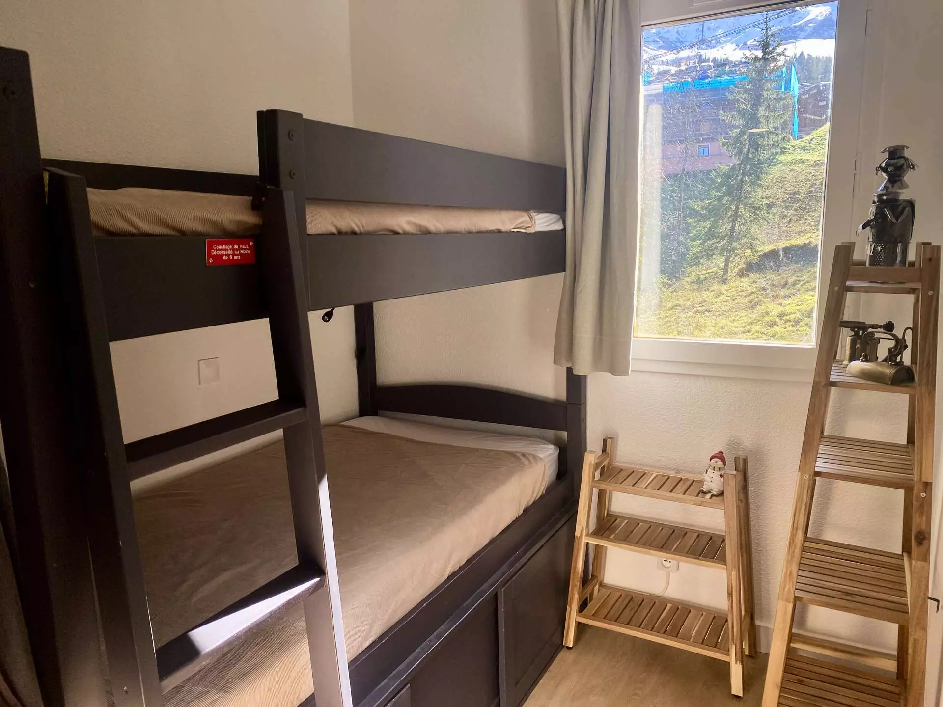 It is 10 minutes from ESF lessons and the Piou Piou club, 8 minutes from shops and is at the foot of the slopes.