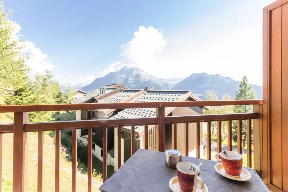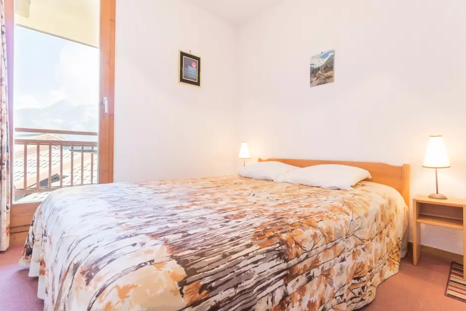 A 30m², 2-room apartment with a mountain corner sleeps 6. It is located on level -1 and has a southwest-facing balcony.