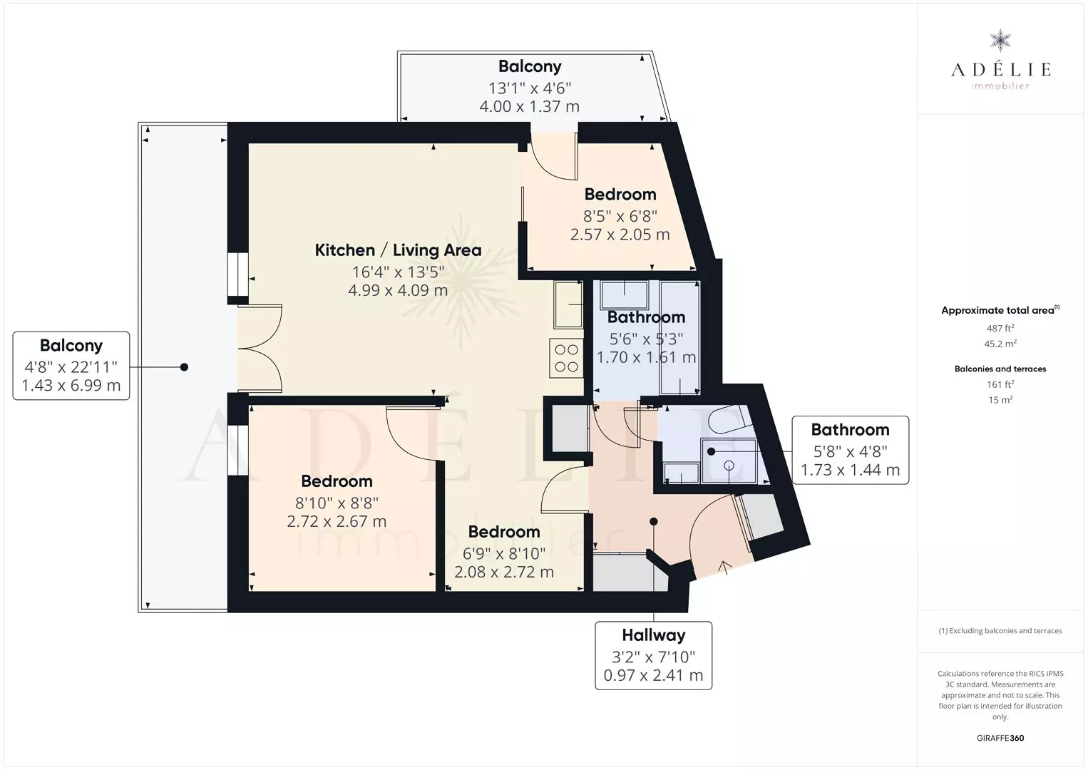 VAN208: 2 ROOMS + CABIN 6/8 PEOPLE of 46m² (4 adults maximum)