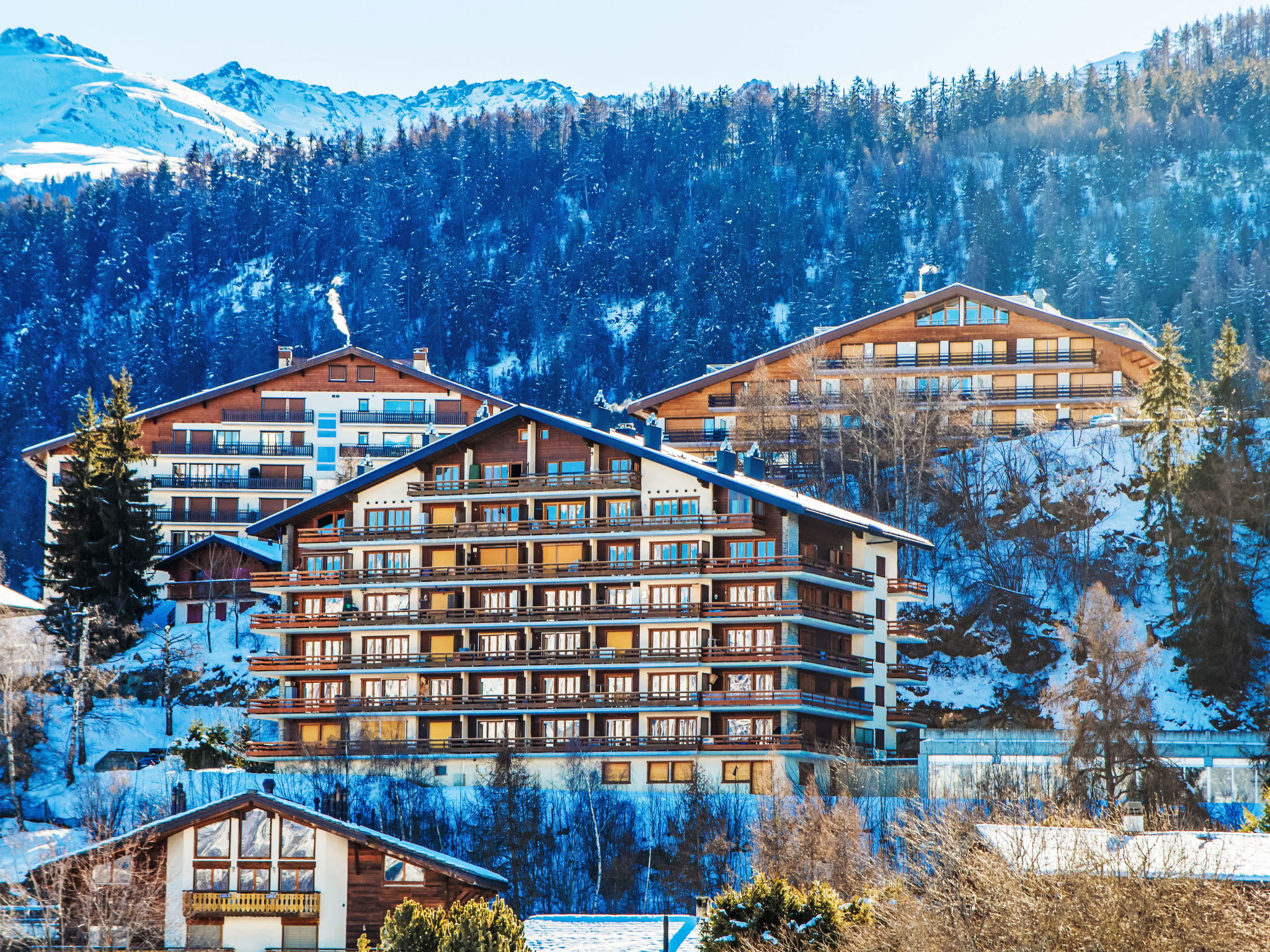 Residence "Derborence". In a quiet position. For shared use: indoor pool (17 x 8 m, seasonal availability: 16.Dec. - 01.Nov.). In the house: sauna (extra). Lift, storage room for skis, central heating system, laundry, washing machine, tumble dryer (for shared use, extra). Motor access to the house. Parking (limited number of spaces). Shopping centre 400 m, bus stop "Haute-Nendaz, station/poste" 700 m, railway station "Sion" 16.4 km, outdoor swimming pool 750 m. Golf course (18 hole) 18 km, gondola lift 600 m, ski bus stop 400 m. Please note: Additional accommodations can be booked.