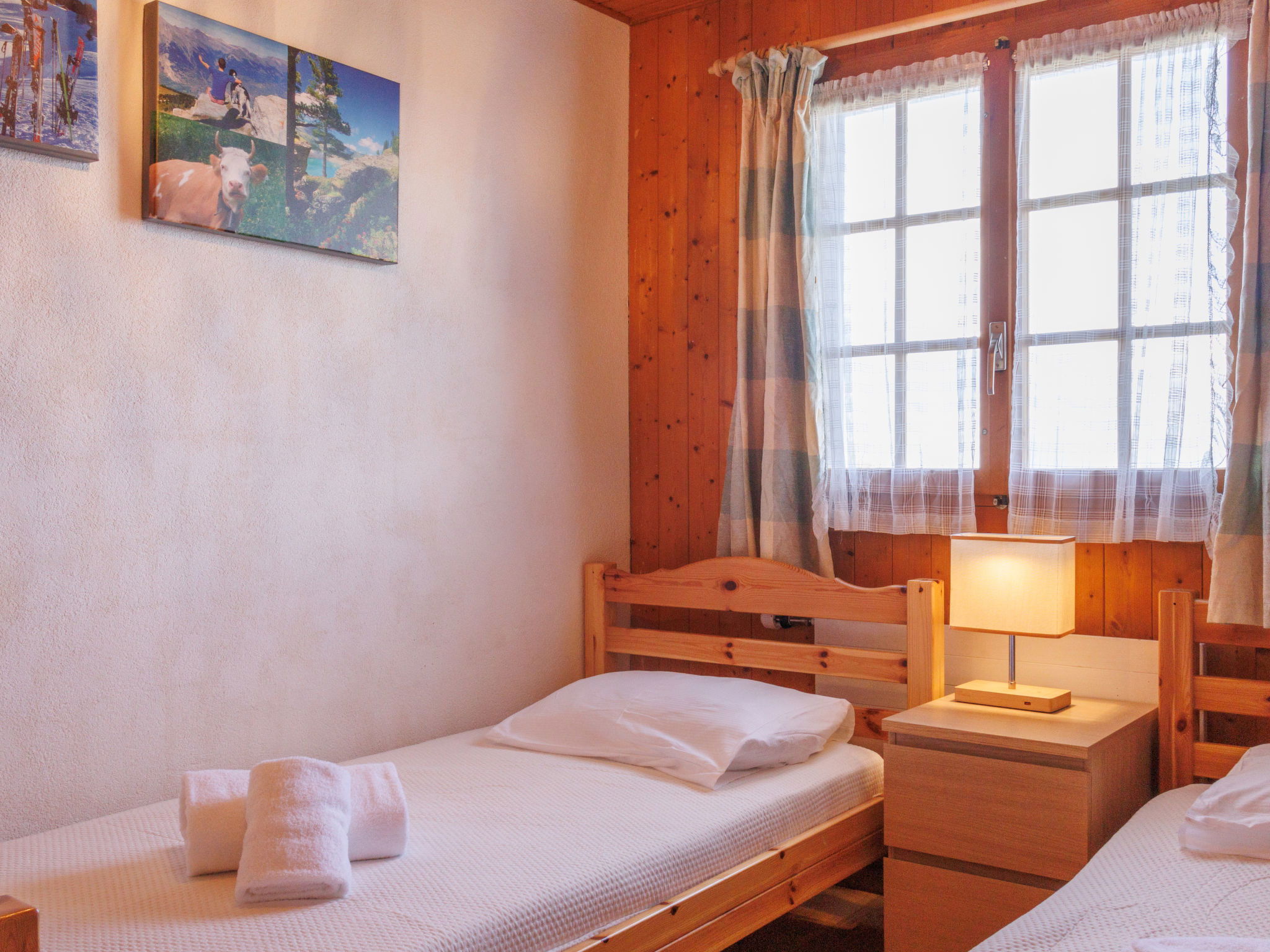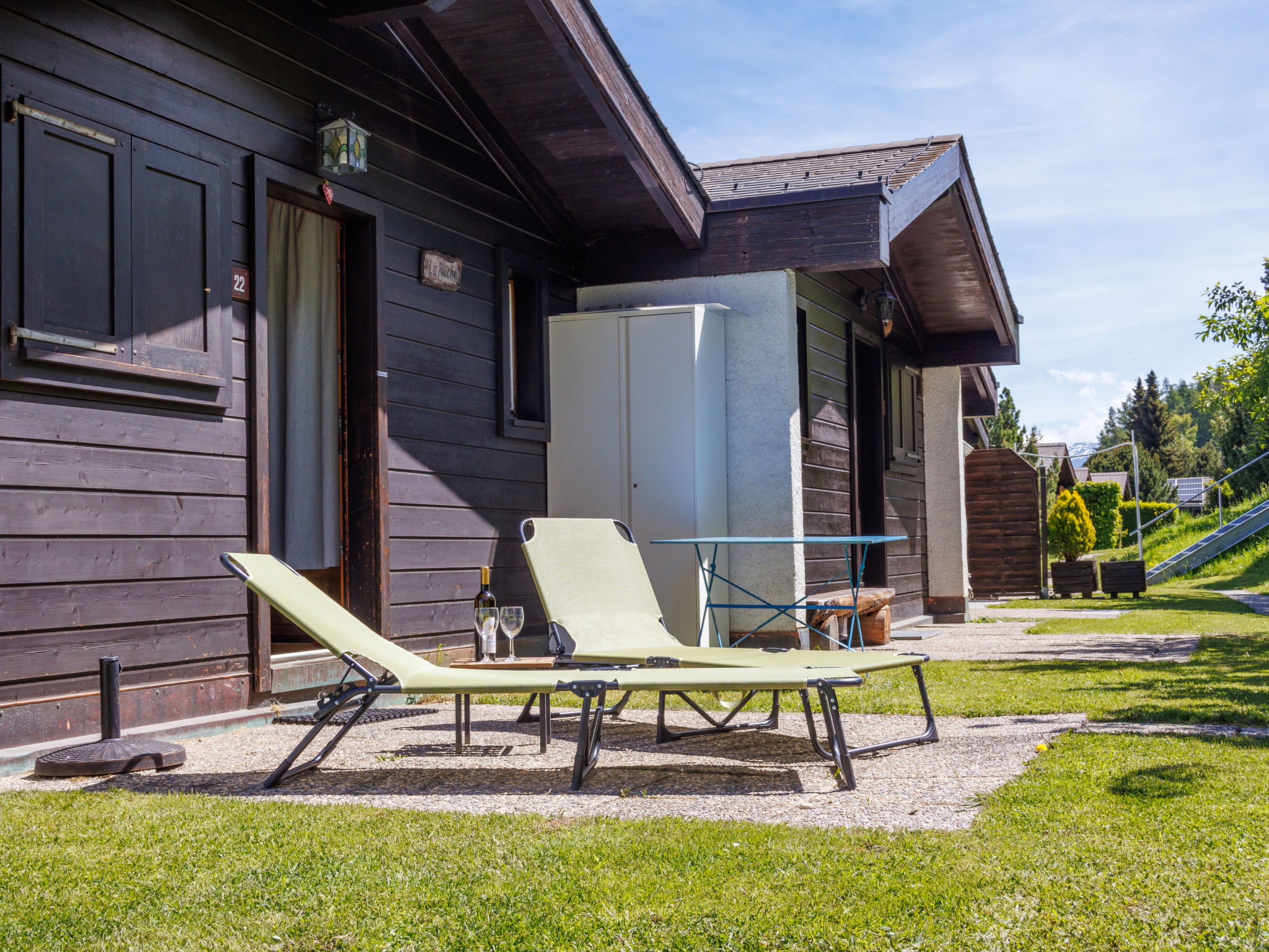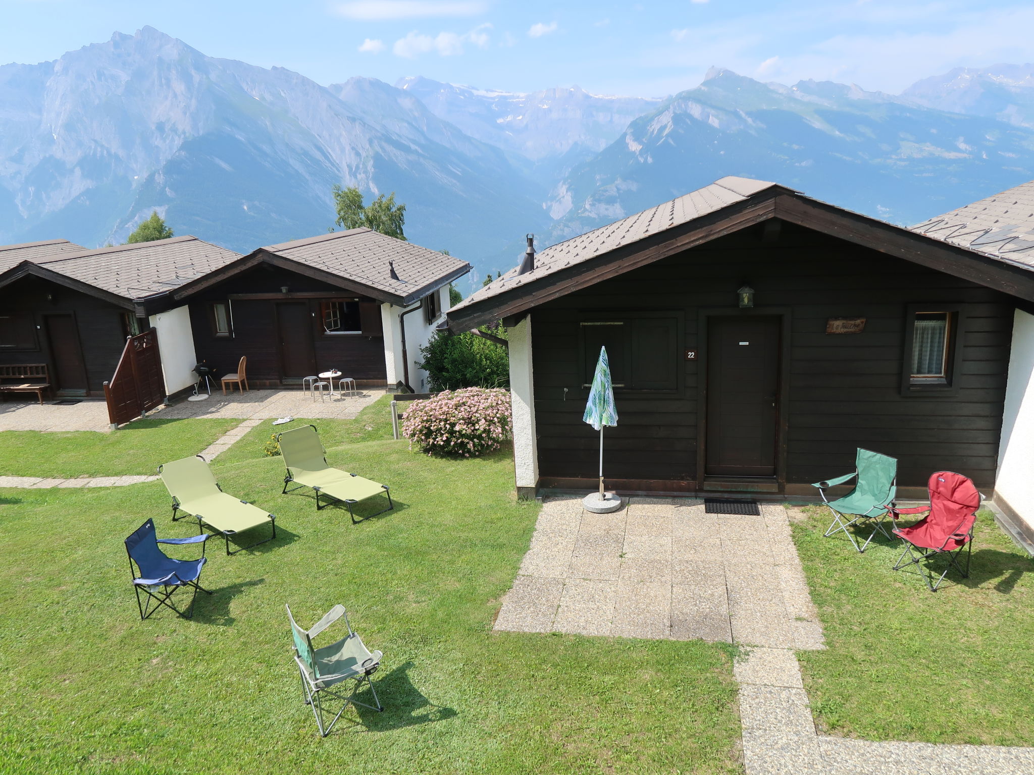 "Tsamandon 22", 3-room semi-detached house 50 m2 on 2 levels. Practical furnishings: living/dining room with cable TV. Exit to the balcony, north facing position. Open kitchen (3 hot plates, oven, toaster, kettle, electric coffee machine, raclette grill, fondue Set (cheese)). Electric heating. On the lower ground floor: 1 room with 1 french bed (140 cm, length 200 cm). 1 room with 2 beds (90 cm, length 190 cm). Shower/WC. Deck chairs (2). Beautiful view of the mountains. Facilities: Internet (WiFi, free). Parking space n 22. Please note: non-smoking house. Maximum 1 pet/ dog allowed.