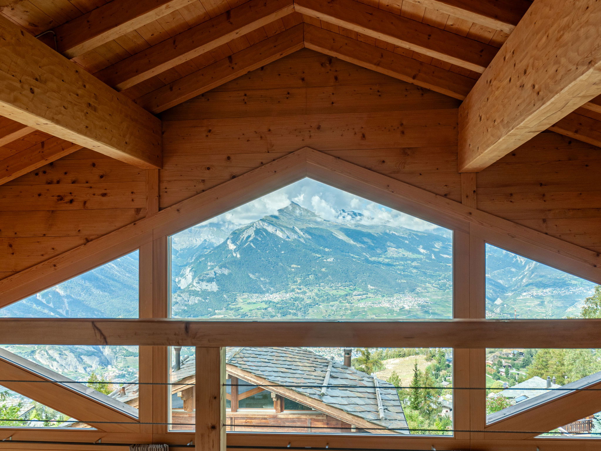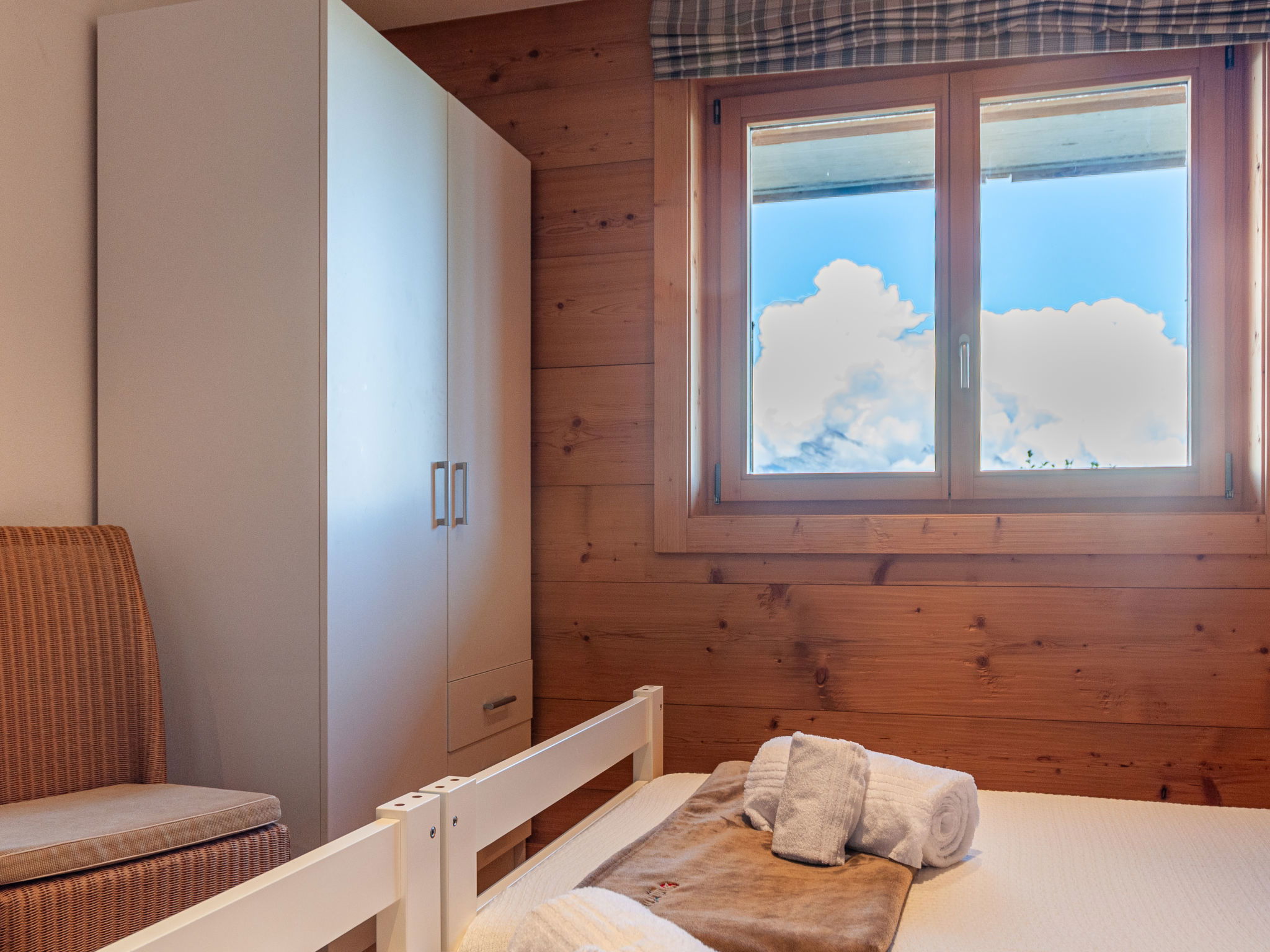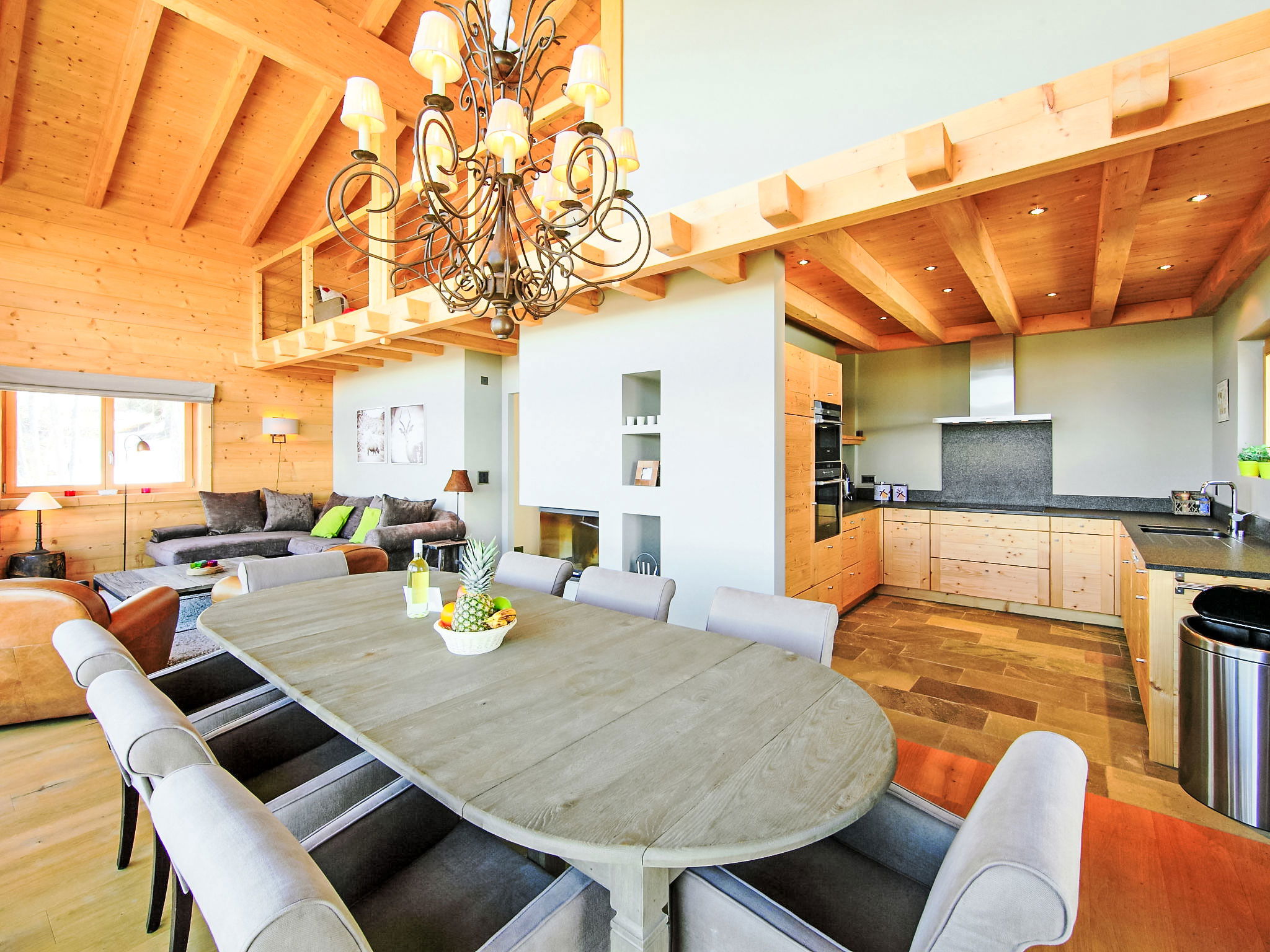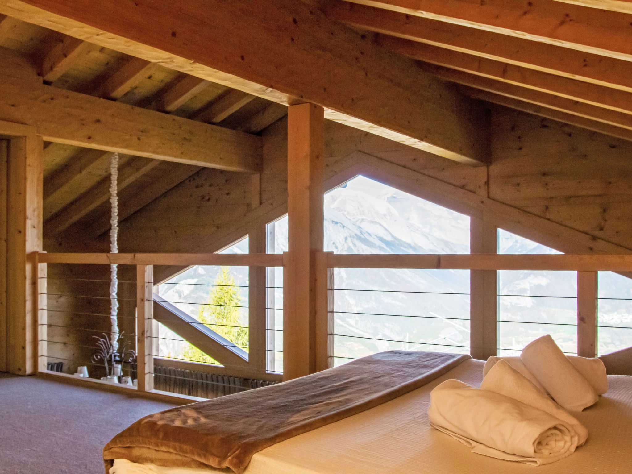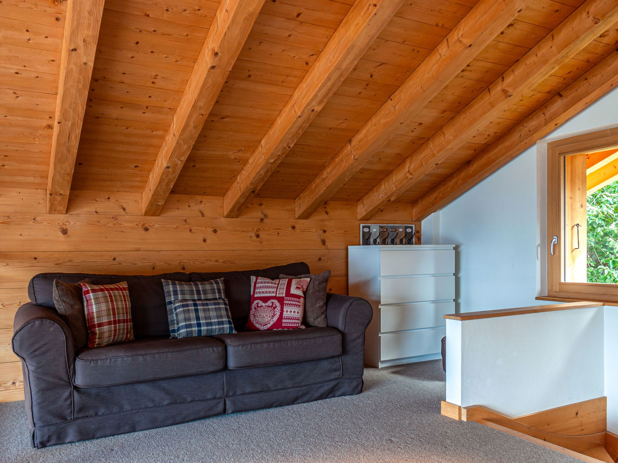 "Chalet Jadi", 5-room chalet 214 m2 on 3 levels. Comfortable and tasteful furnishings: large living/dining room with open-hearth fireplace and cable TV. Open kitchen (oven, dishwasher, 5 induction hot plates, toaster, kettle, microwave, electric coffee machine, Capsules for coffee machine (nespresso) extra, raclette grill, fondue Set (cheese)). Sep. WC. Heating. On the lower ground floor: 1 room with 1 french bed (160 cm, length 200 cm). 1 room with 1 french bed (160 cm, length 200 cm). 1 room with 2 beds (90 cm, length 190 cm). Bath/WC, shower, sep. WC, double hand-basin, Sauna. Upper floor: open large gallery with 1 sofabed (160 cm, length 200 cm). 1 room with 2 beds (90 cm, length 190 cm), hand-basin and TV. Balcony, north facing position, terrace, west facing position. Terrace furniture, barbecue. Very beautiful panoramic view of the mountains and the valley. Facilities: washing machine, dryer, children's high chair, baby cot, hair dryer. Internet (WiFi, free). Parking (2 cars). Please note: non-smoking house. Instead of an enclosed bedroom, some sleeping areas are located in an open-plan area (gallery, alcove, etc.).