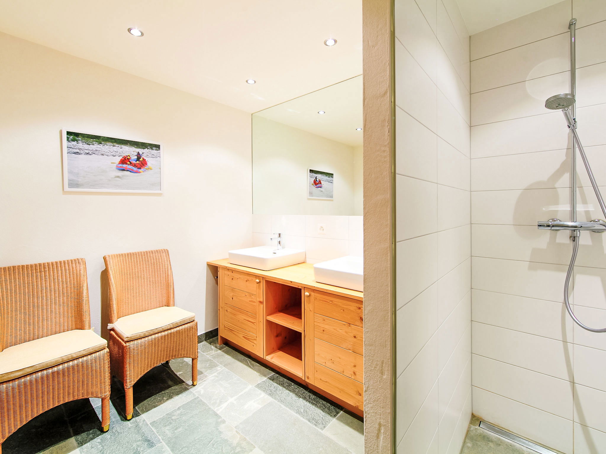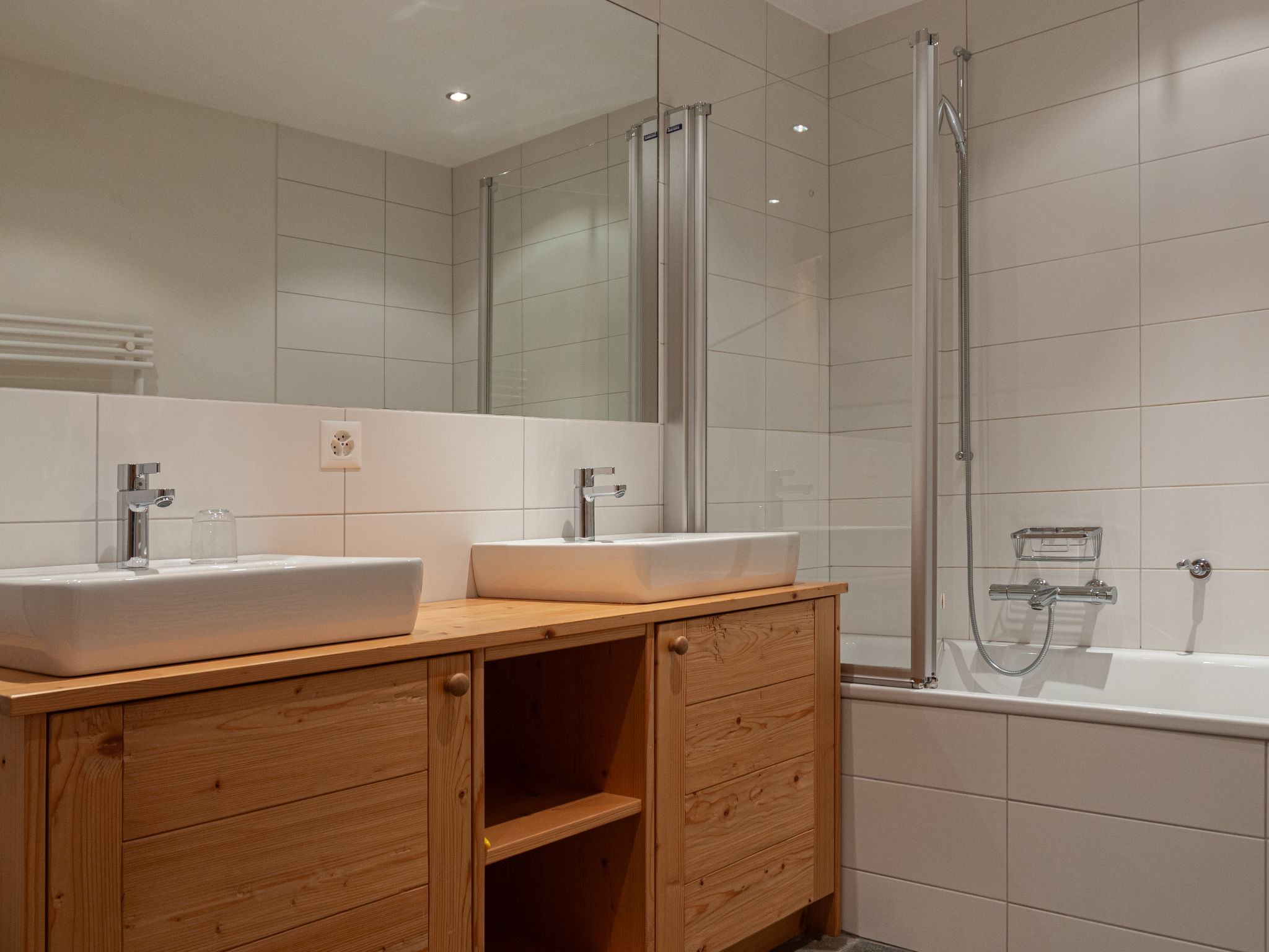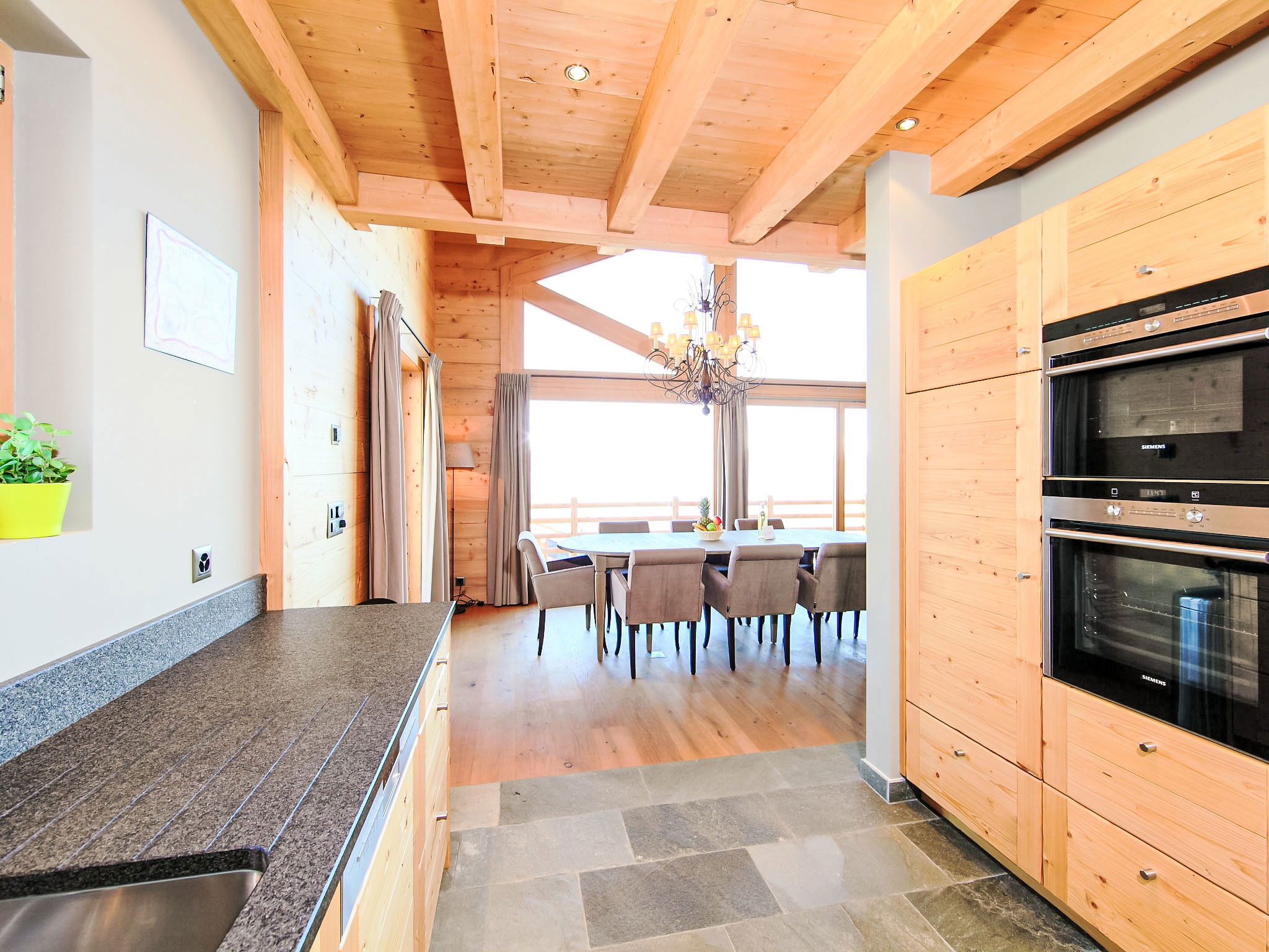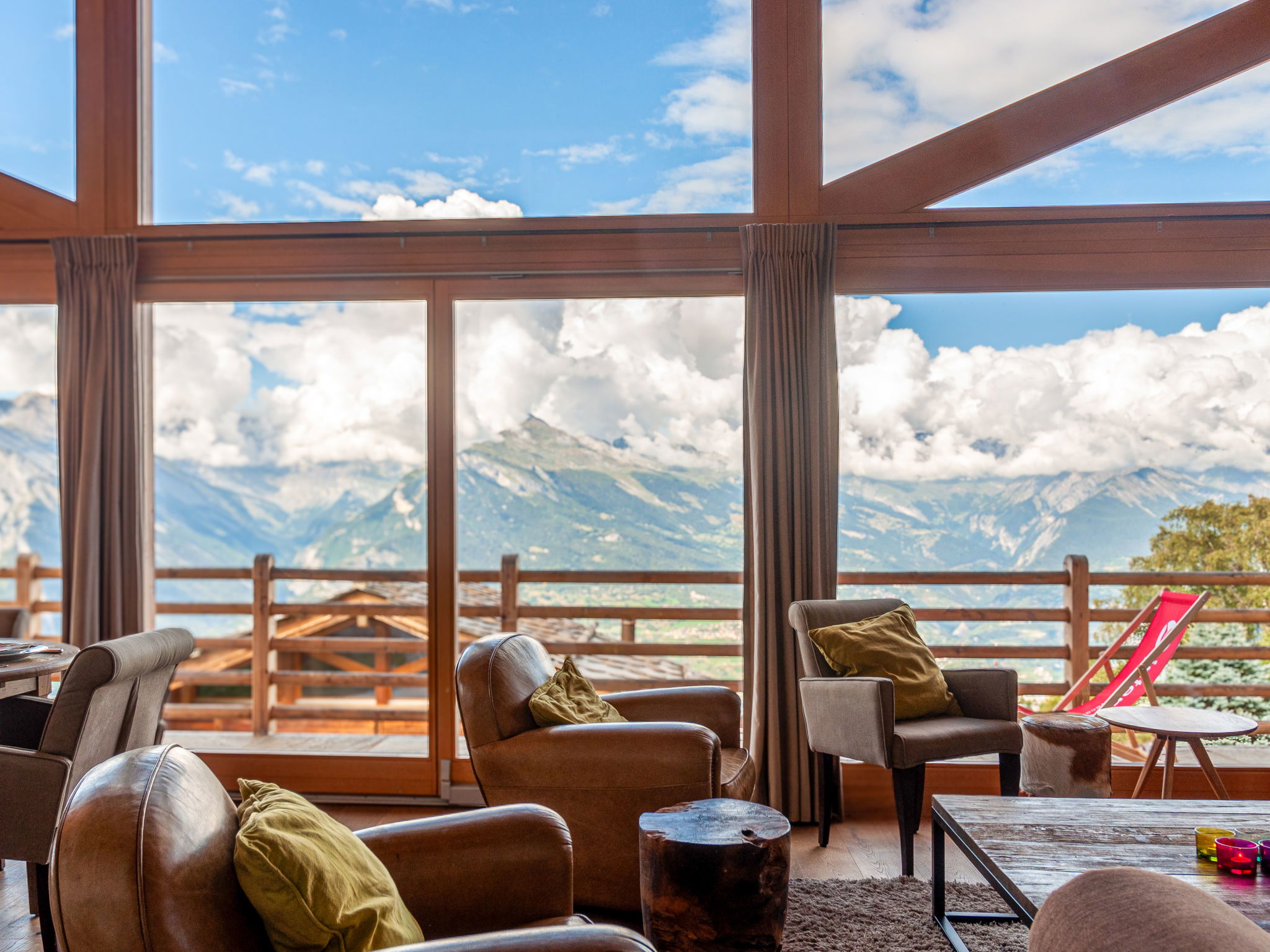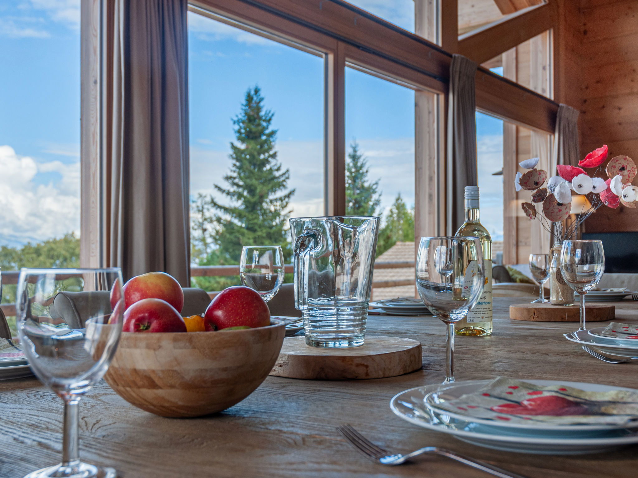 "Chalet Jadi", 5-room chalet 214 m2 on 3 levels. Comfortable and tasteful furnishings: large living/dining room with open-hearth fireplace and cable TV. Open kitchen (oven, dishwasher, 5 induction hot plates, toaster, kettle, microwave, electric coffee machine, Capsules for coffee machine (nespresso) extra, raclette grill, fondue Set (cheese)). Sep. WC. Heating. On the lower ground floor: 1 room with 1 french bed (160 cm, length 200 cm). 1 room with 1 french bed (160 cm, length 200 cm). 1 room with 2 beds (90 cm, length 190 cm). Bath/WC, shower, sep. WC, double hand-basin, Sauna. Upper floor: open large gallery with 1 sofabed (160 cm, length 200 cm). 1 room with 2 beds (90 cm, length 190 cm), hand-basin and TV. Balcony, north facing position, terrace, west facing position. Terrace furniture, barbecue. Very beautiful panoramic view of the mountains and the valley. Facilities: washing machine, dryer, children's high chair, baby cot, hair dryer. Internet (WiFi, free). Parking (2 cars). Please note: non-smoking house. Instead of an enclosed bedroom, some sleeping areas are located in an open-plan area (gallery, alcove, etc.).