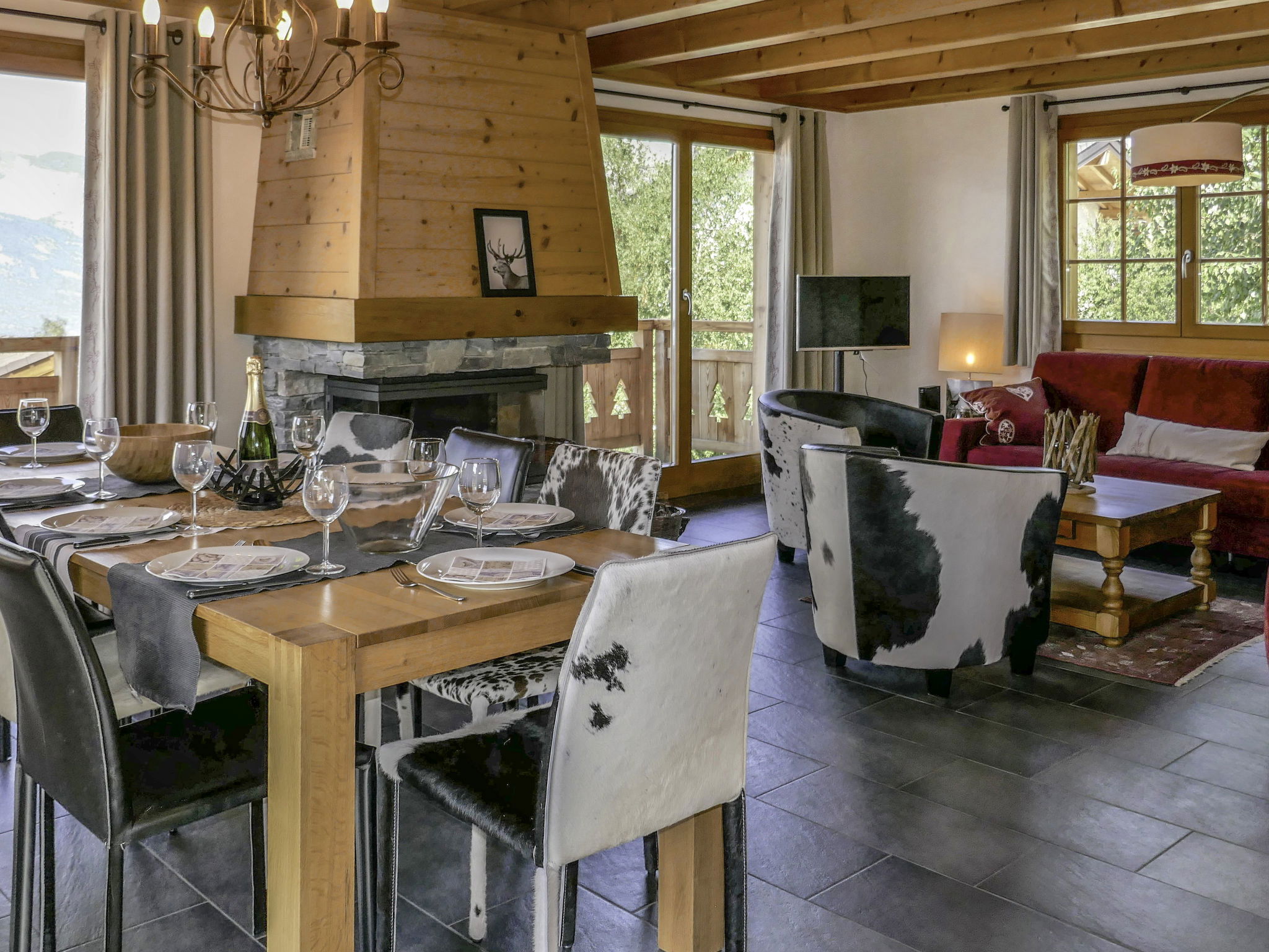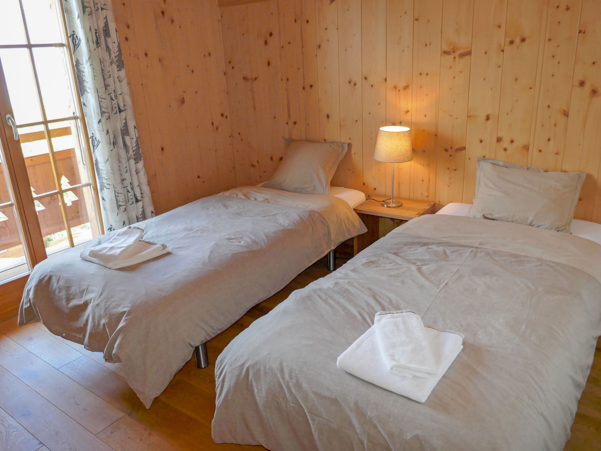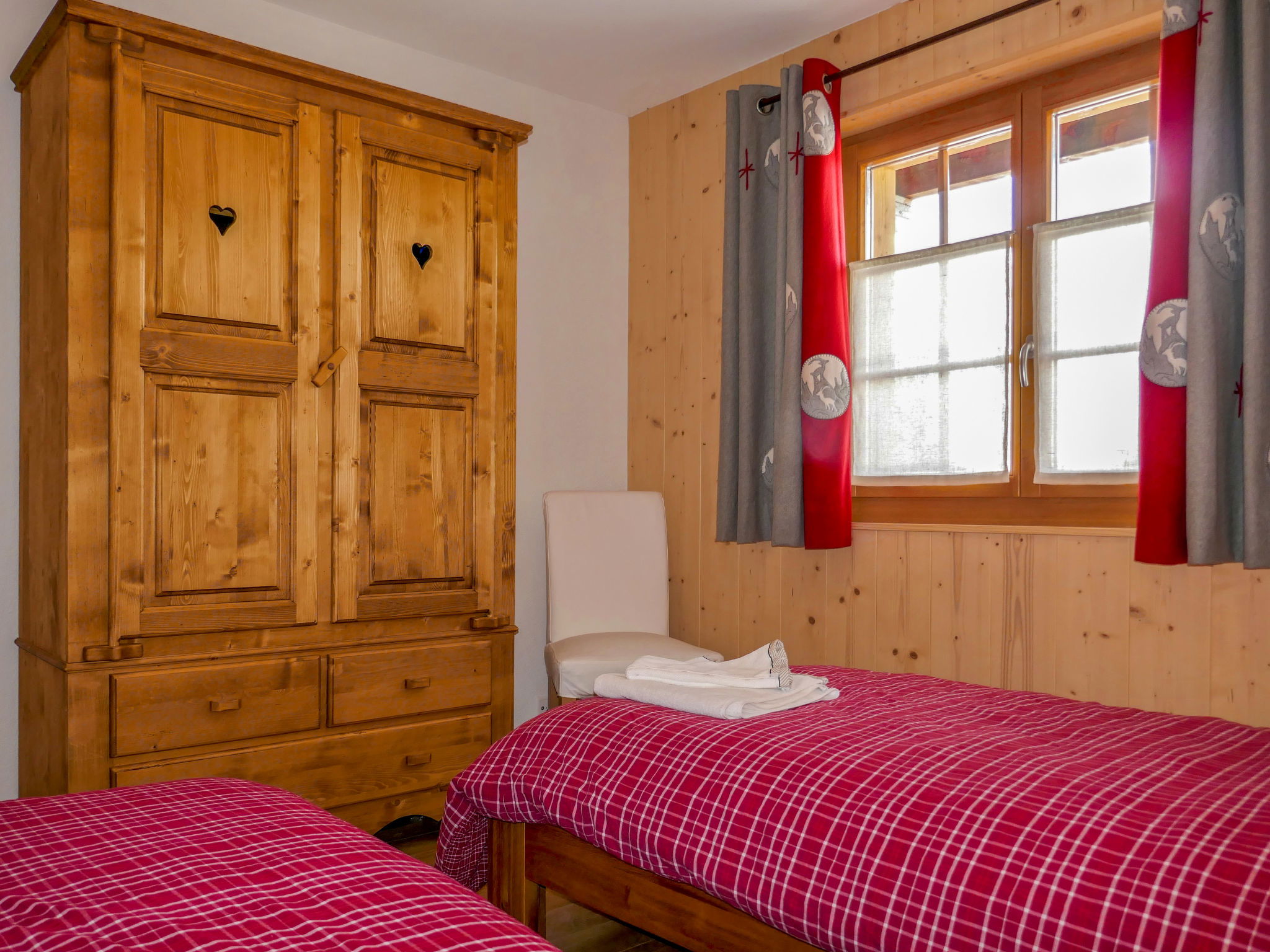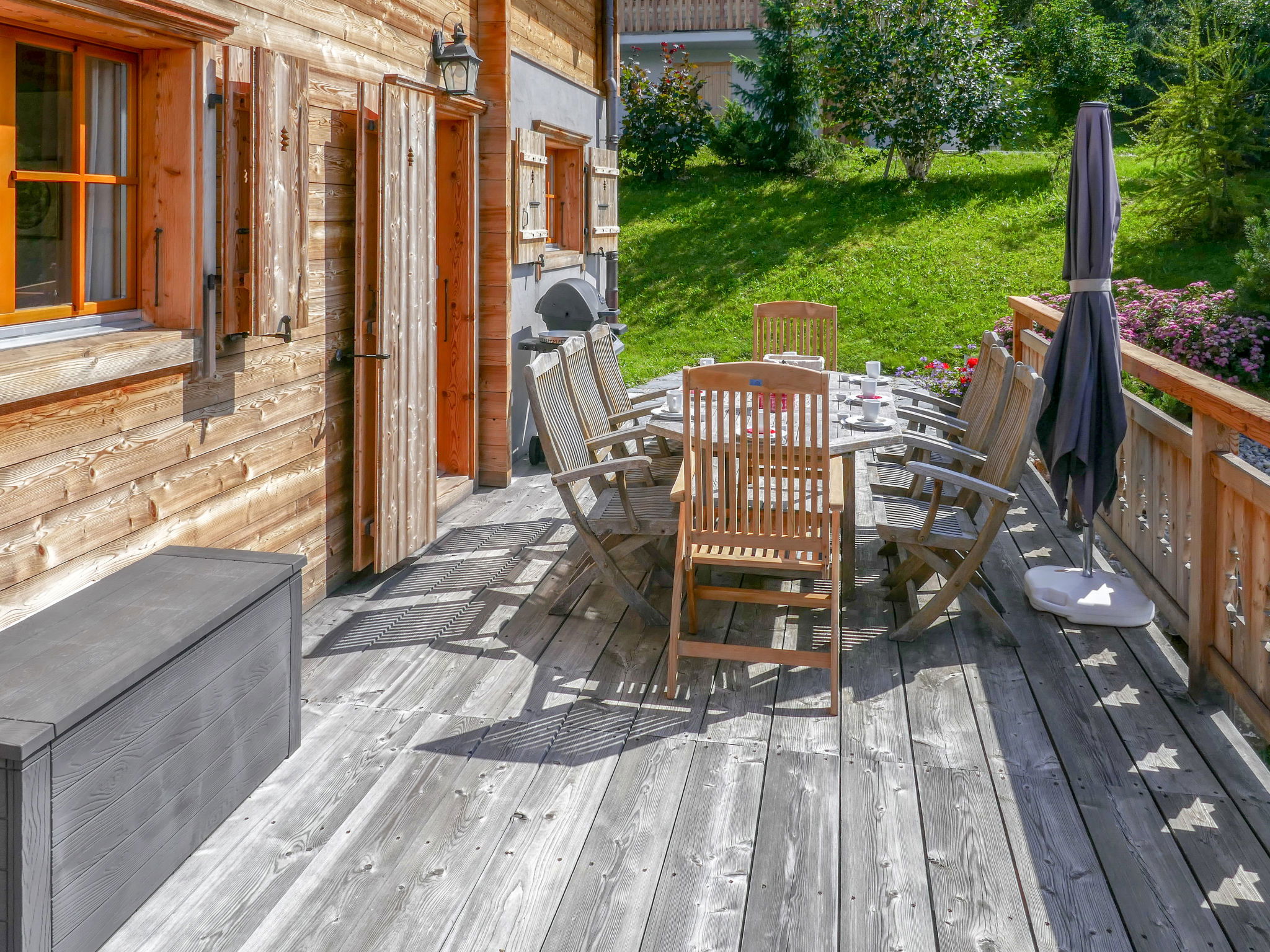 "Le Muveran V8", 5-room chalet 184 m2 on 3 levels. Spacious and bright, beautiful and tasteful furnishings: entrance hall. Living/dining room with open-hearth fireplace, cable TV and radio. Exit to the balcony, to the terrace, north facing position and west facing position. Open kitchen (oven, dishwasher, 4 ceramic glass hob hotplates, toaster, kettle, microwave, electric coffee machine, Capsules for coffee machine (nespresso) extra, raclette grill, fondue Set (chinoise, cheese)). Sep. WC. Heating. On the lower ground floor: entrance hall. 1 room with 1 french bed (160 cm, length 200 cm). 1 room with 2 beds (90 cm, length 200 cm). Shower/WC. Upper floor: 1 room with 1 french bed (160 cm, length 200 cm). Exit to the balcony, north facing position. 1 room with 2 beds (90 cm, length 200 cm). Exit to the balcony, north facing position. Bath/shower/WC. Balcony, north facing position terrace 27 m2, west facing position, garden, south facing position. Terrace furniture, barbecue, deck chairs (2). Very beautiful view of the mountains. Facilities: washing machine, dryer, children's high chair, baby cot, hair dryer. Internet (WiFi, free). Parking (3 cars). Please note: non-smokers only.