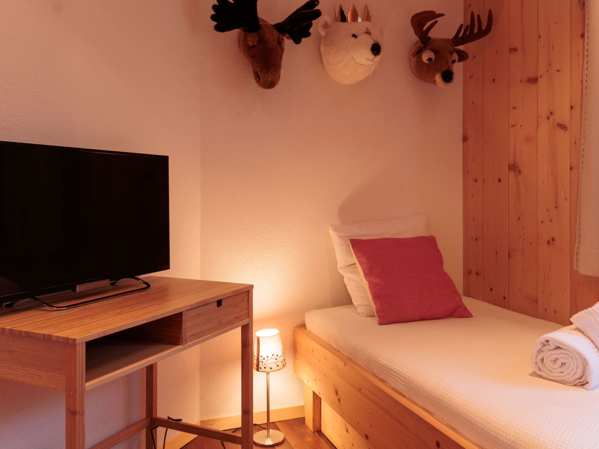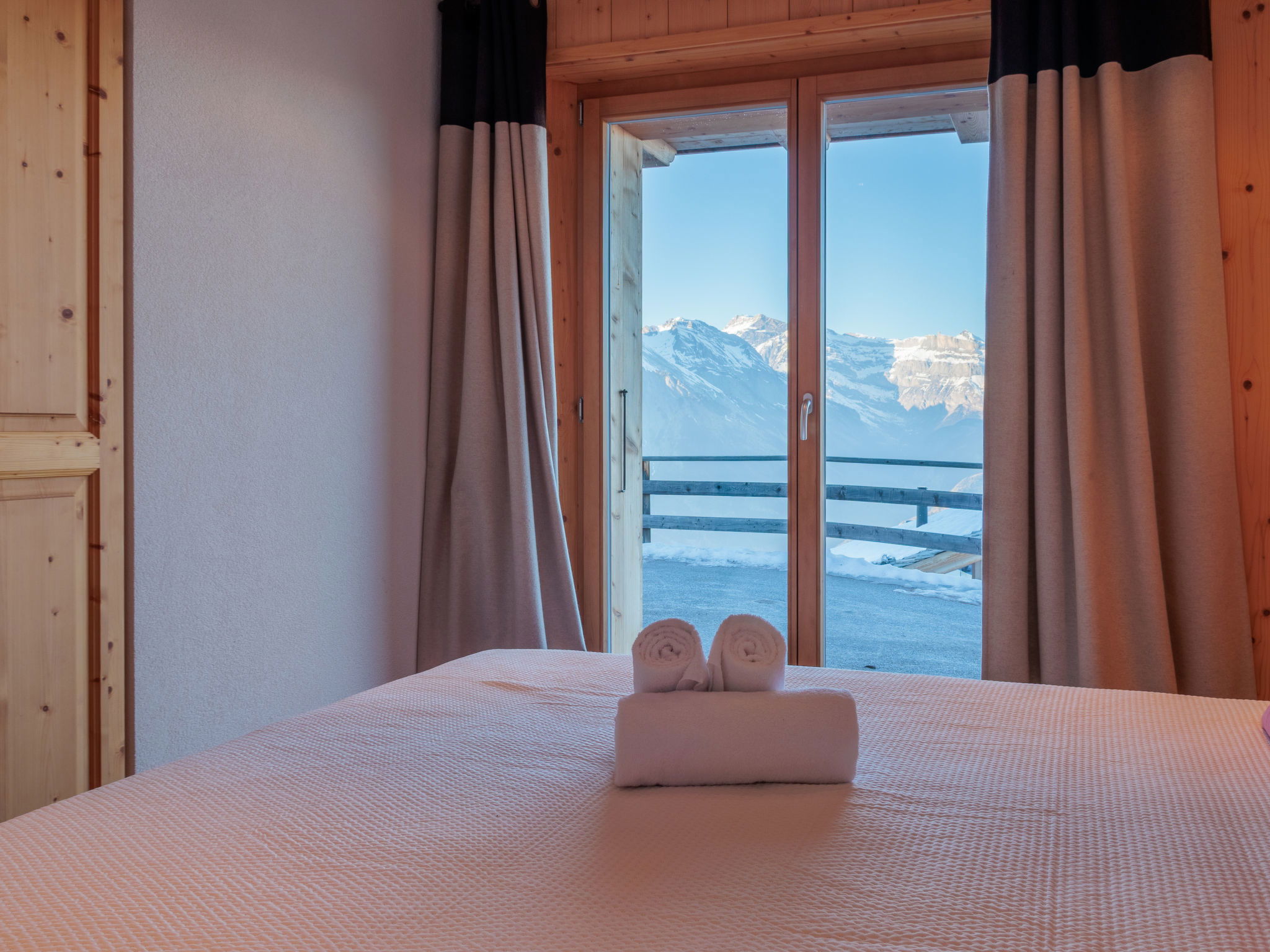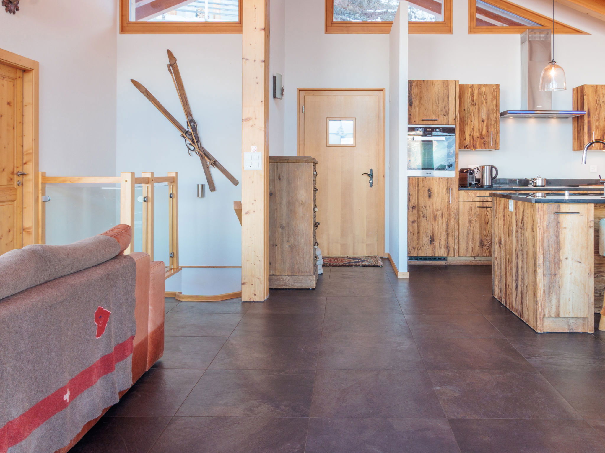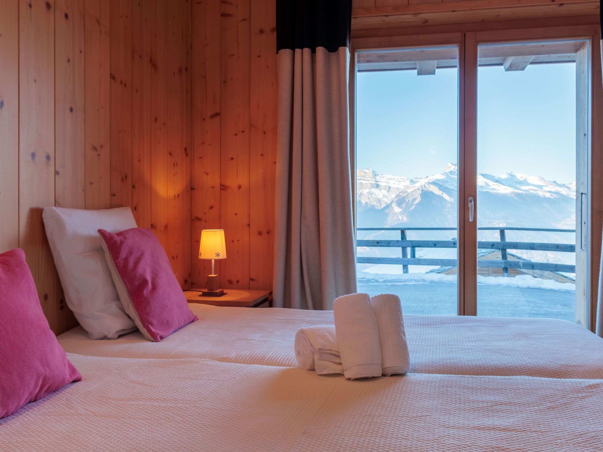 "Chalet Flocon de Neige", 5-room chalet 184 m2 on 2 levels. Comfortable furnishings: large living/dining room with panoramic window with Scandinavian wood stove, dining nook, cable TV and DVD. Open kitchen (oven, dishwasher, 6 induction hot plates, toaster, kettle, microwave, electric coffee machine, Capsules for coffee machine (Nespresso) extra, raclette grill, cooking island, fondue Set (cheese)). Sep. WC. Heating. On the lower ground floor: 2 double bedrooms, each room with 2 beds (90 cm, length 200 cm). 1 children's room with 1 bed (90 cm, length 190 cm), 1 x 2 bunk beds (90 cm, length 190 cm), cable TV, flat screen and DVD. 1 double bedroom with 1 french bed (160 cm, length 190 cm), shower/WC, cable TV and flat screen. Bath/WC, shower/WC. Balcony, north facing position, terrace, west facing position and north facing position. Terrace furniture, barbecue, deck chairs (2). Very beautiful view of the mountains and the valley. Facilities: washing machine, dryer, children's high chair, baby cot, hair dryer. Internet (WiFi, free). Parking (3 cars). Please note: non-smoking house.