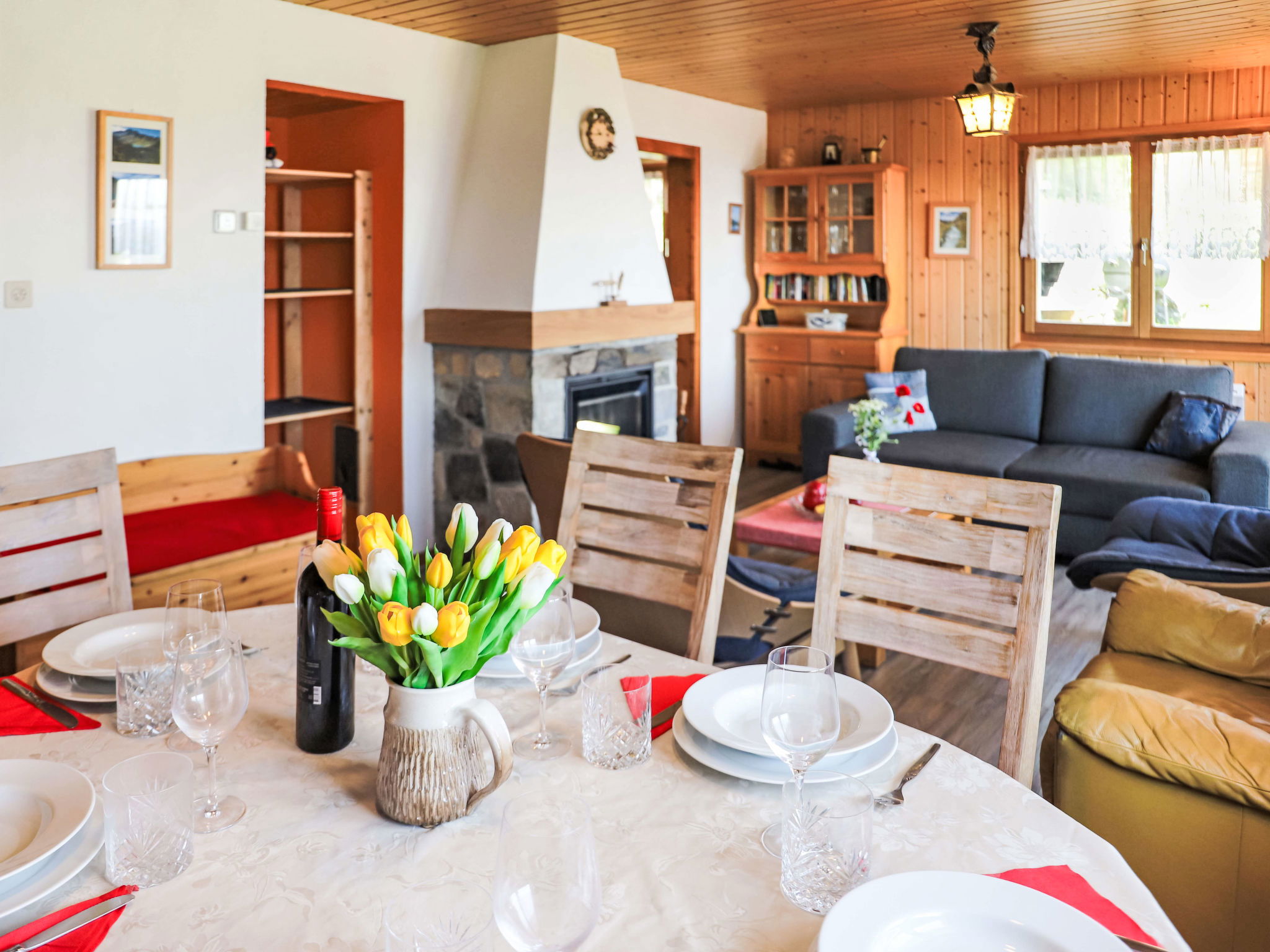 "Chalet Picardie", 4-room chalet 98 m2 on 2 levels. Comfortable furnishings: living/dining room with open-hearth fireplace, cable TV, radio and CD-player. Exit to the garden. Small kitchen (dishwasher, 4 ceramic glass hob hotplates, toaster, kettle, electric coffee machine, Capsules for coffee machine (dolce gusto) extra, raclette grill, combination microwave, fondue Set (cheese)). Sep. WC. Electric heating. Upper floor: 1 room with 2 beds (90 cm, length 200 cm). 1 room with 1 french bed (180 cm, length 200 cm). Exit to the balcony, north facing position. 1 room with 1 x 2 bunk beds (90 cm, length 200 cm). Exit to the balcony, north facing position. Shower/WC. Terrace 20 m2, north facing position, garden 90 m2, north-west facing position. Barbecue, deck chairs (2). Beautiful view of the mountains and the valley. Facilities: hair dryer. Internet (WiFi, free). Parking (1 car) at the house. Please note: non-smokers only. 1 small pet/ dog allowed.