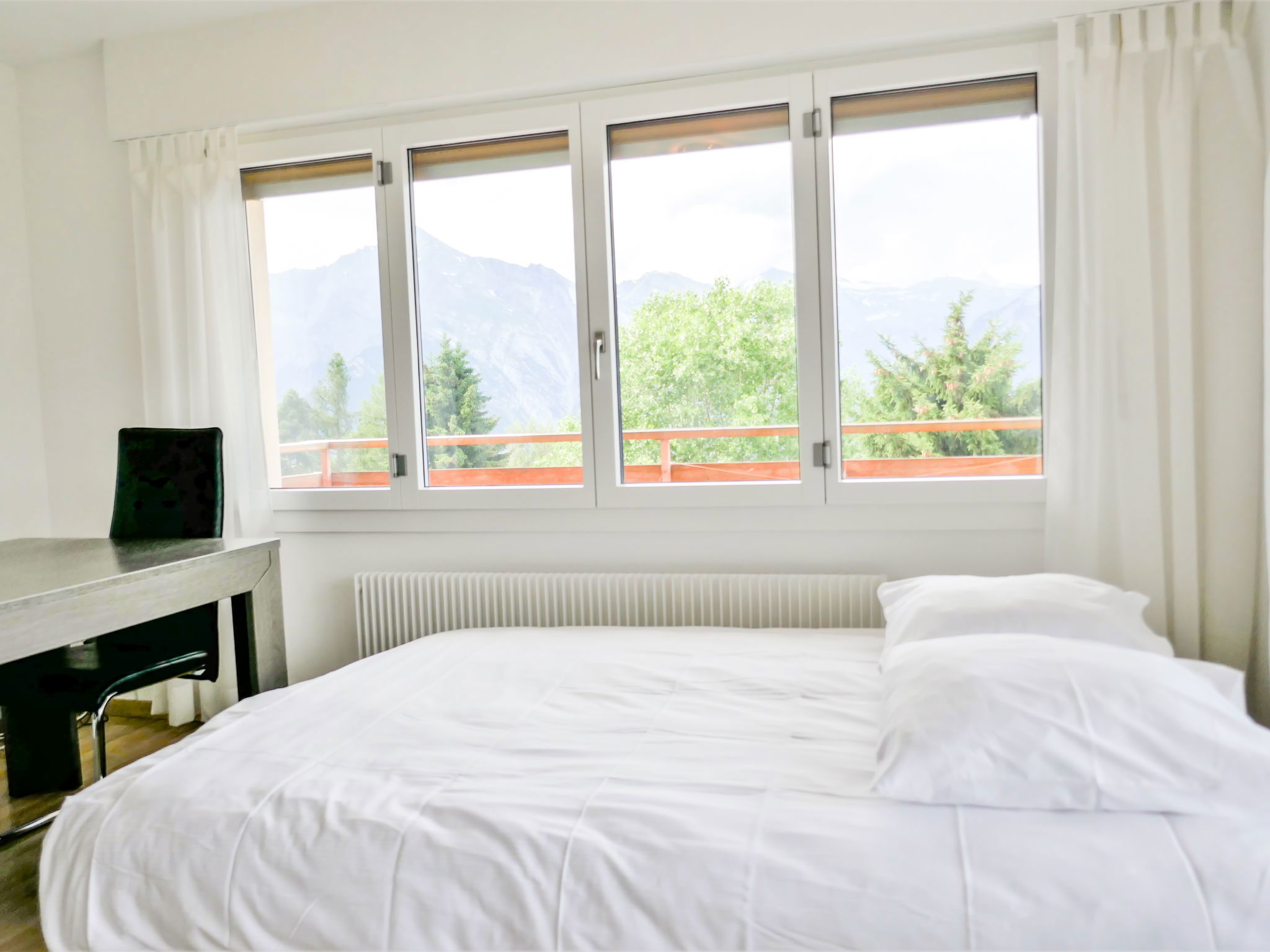 "Les Arolles A1", 2-room apartment 43 m2 on 1st floor. Fully renovated in 2012, beautiful and modern furnishings: living/dining room with 1 sofabed (140 cm, length 190 cm), cable TV. 1 small room with 1 french bed (140 cm, length 190 cm). Kitchen (oven, dishwasher, 4 ceramic glass hob hotplates, kettle, electric coffee machine, fondue Set (cheese)). Bath/WC. Balcony, north facing position and, east facing position. Very beautiful view of the valley. Facilities: hair dryer. Internet (WiFi, free). Parking space n A1. Please note: non-smokers only. Maximum 1 pet/ dog allowed.