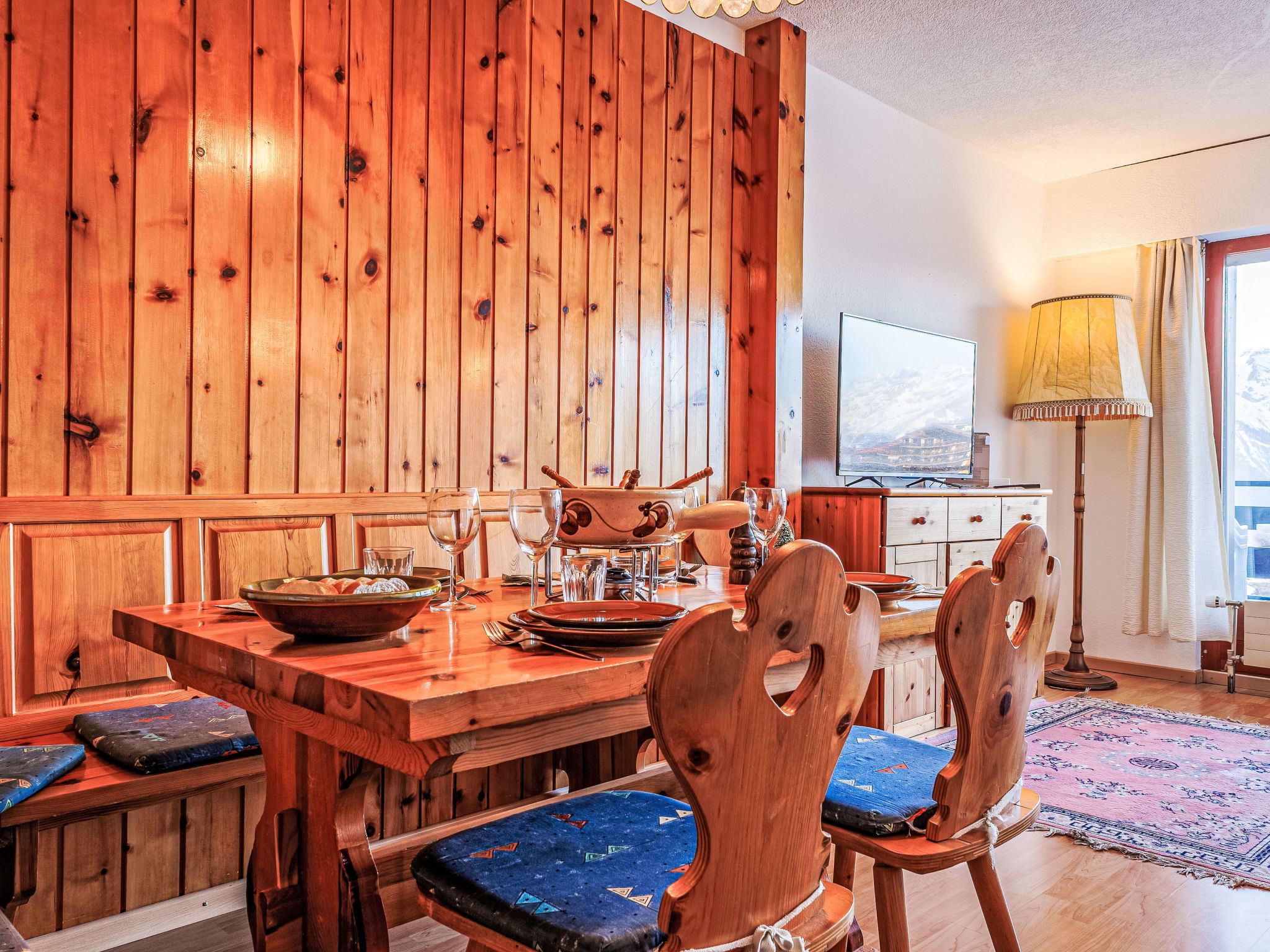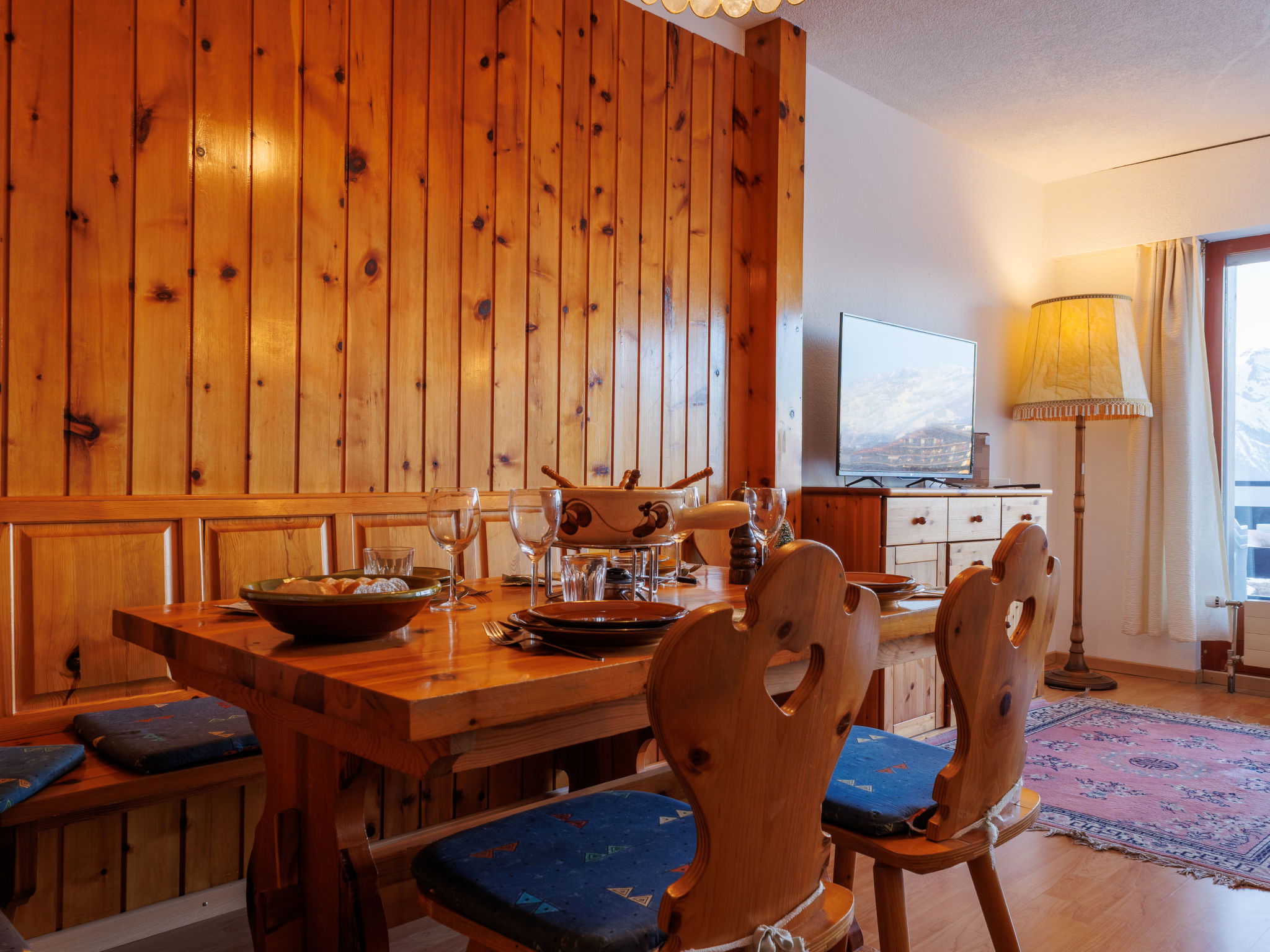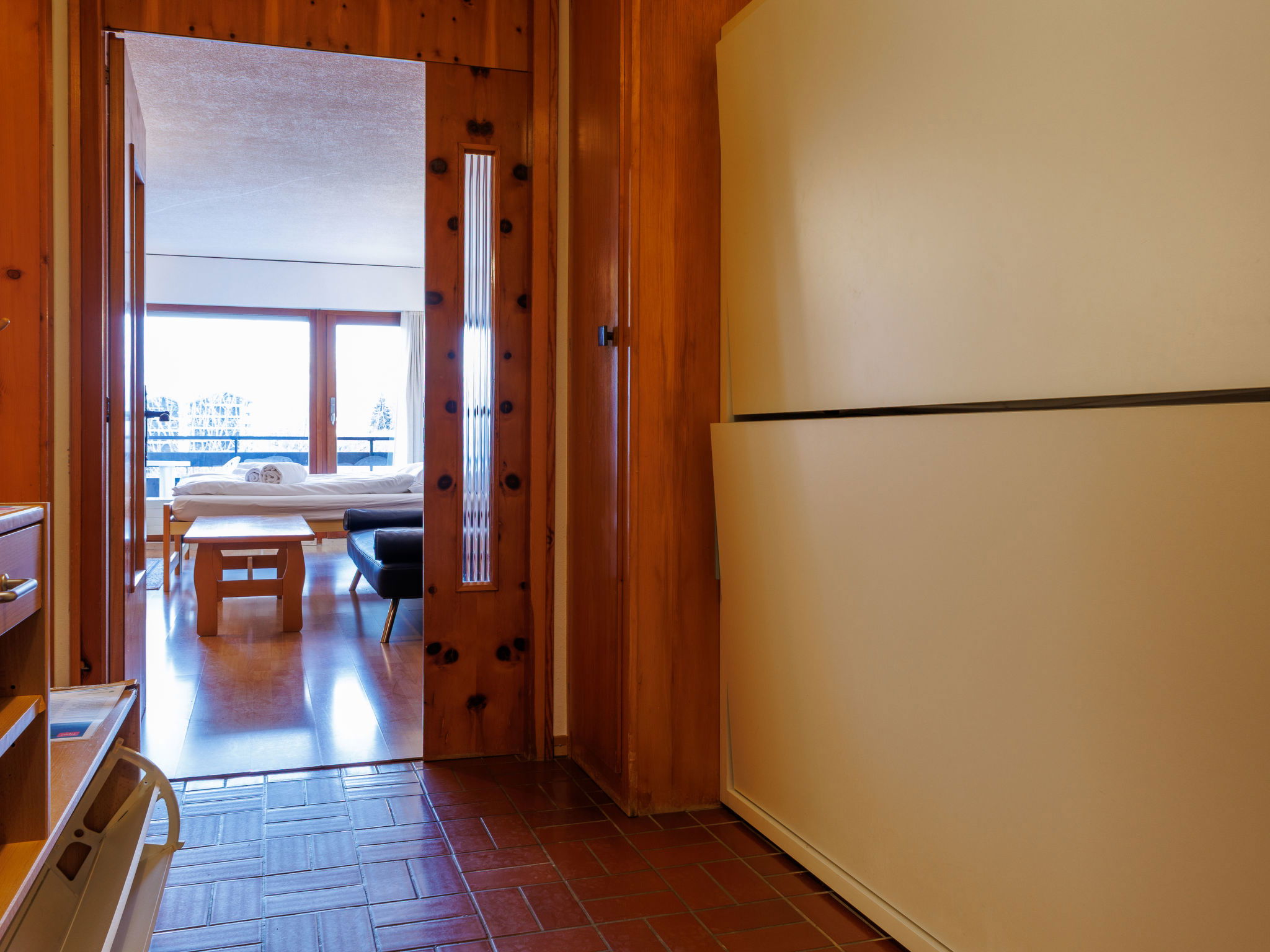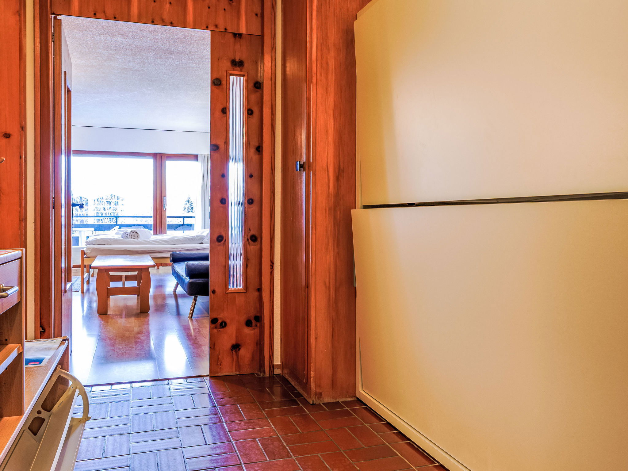 "Christiania 2 Sbel", 1-room apartment 38 m2, on the upper ground floor. Living/dining room with 1 pull-out bed (2 pers. 2 x 90 cm, length 190 cm), cable TV (flat screen). Exit to the balcony. Entrance hall with 1 x 2 bunk beds (80 cm, length 180 cm). Kitchen (3 hot plates, oven, toaster, kettle, microwave, electric coffee machine, Capsules for coffee machine (Delizio) extra, fondue Set (chinoise, cheese)). Bath/WC. Balcony, north facing position. View of the mountains and the resort. Facilities: hair dryer. Internet (WiFi, free). Please note: non-smokers only, no parking. Maximum 1 pet/ dog allowed. Instead of an enclosed bedroom, some sleeping areas are located in an open-plan area (gallery, alcove, etc.).