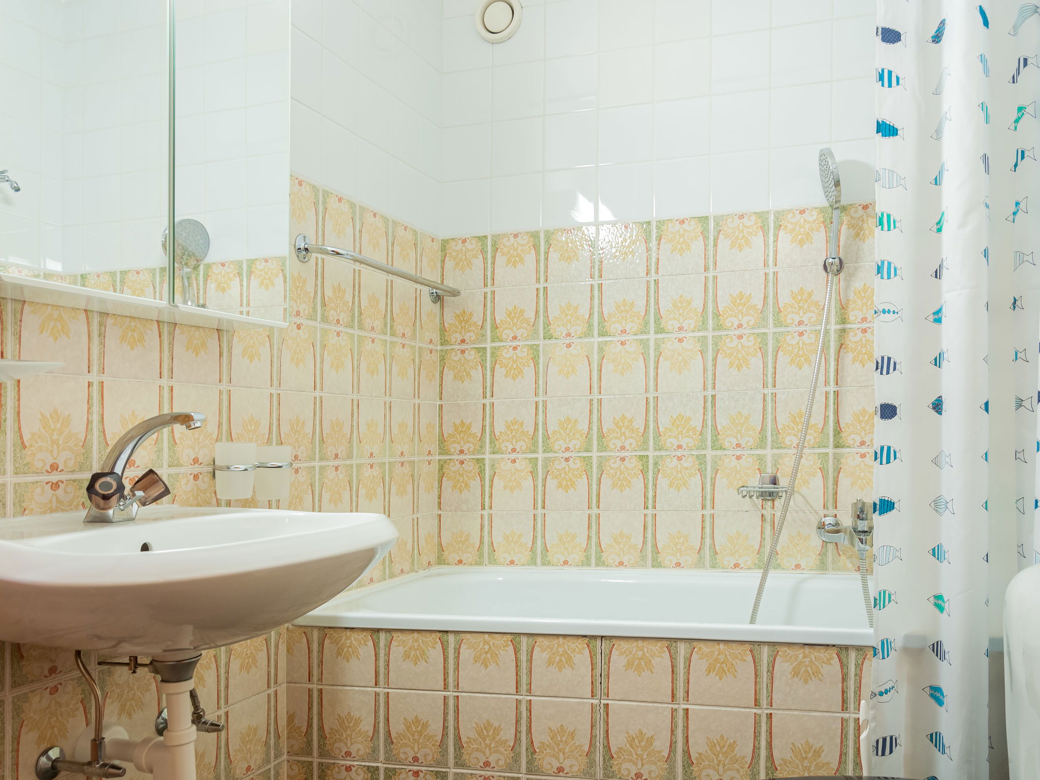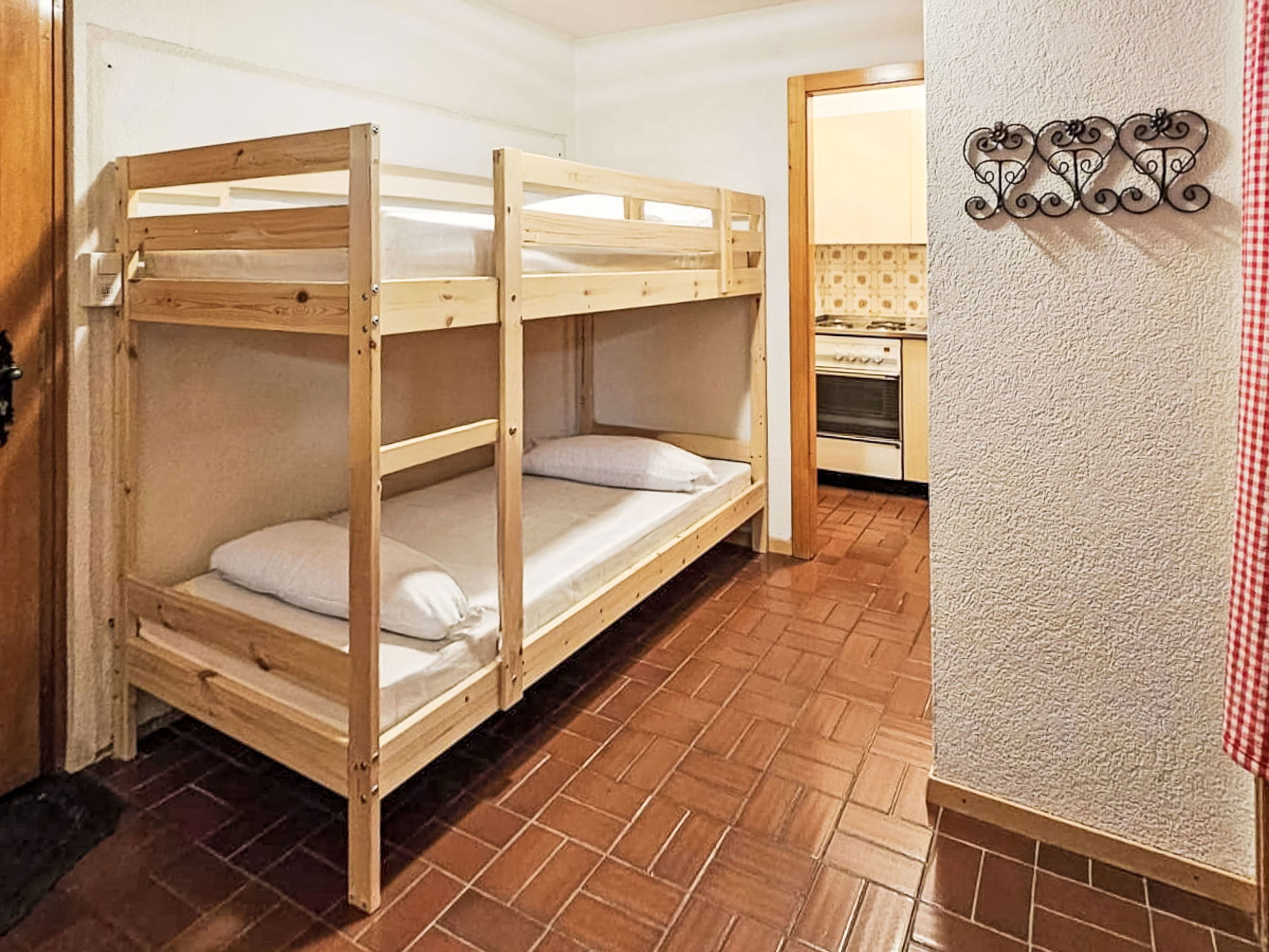 "Christiania 2 B7", 2-room apartment 50 m2 on 7th floor. Entrance hall with 1 x 2 bunk beds (90 cm, length 200 cm). Large living/dining room with open-hearth fireplace and cable TV. 1 room with 1 french bed (160 cm, length 200 cm). Kitchen (3 hot plates, oven, toaster, kettle, electric coffee machine, raclette grill, fondue Set (cheese)). Bath/WC, sep. WC. Balcony, south facing position. View of the ski run and the resort. Facilities: Internet (WiFi, free). Please note: non-smokers only, no parking. Maximum 1 pet/ dog allowed. Instead of an enclosed bedroom, some sleeping areas are located in an open-plan area (gallery, alcove, etc.).