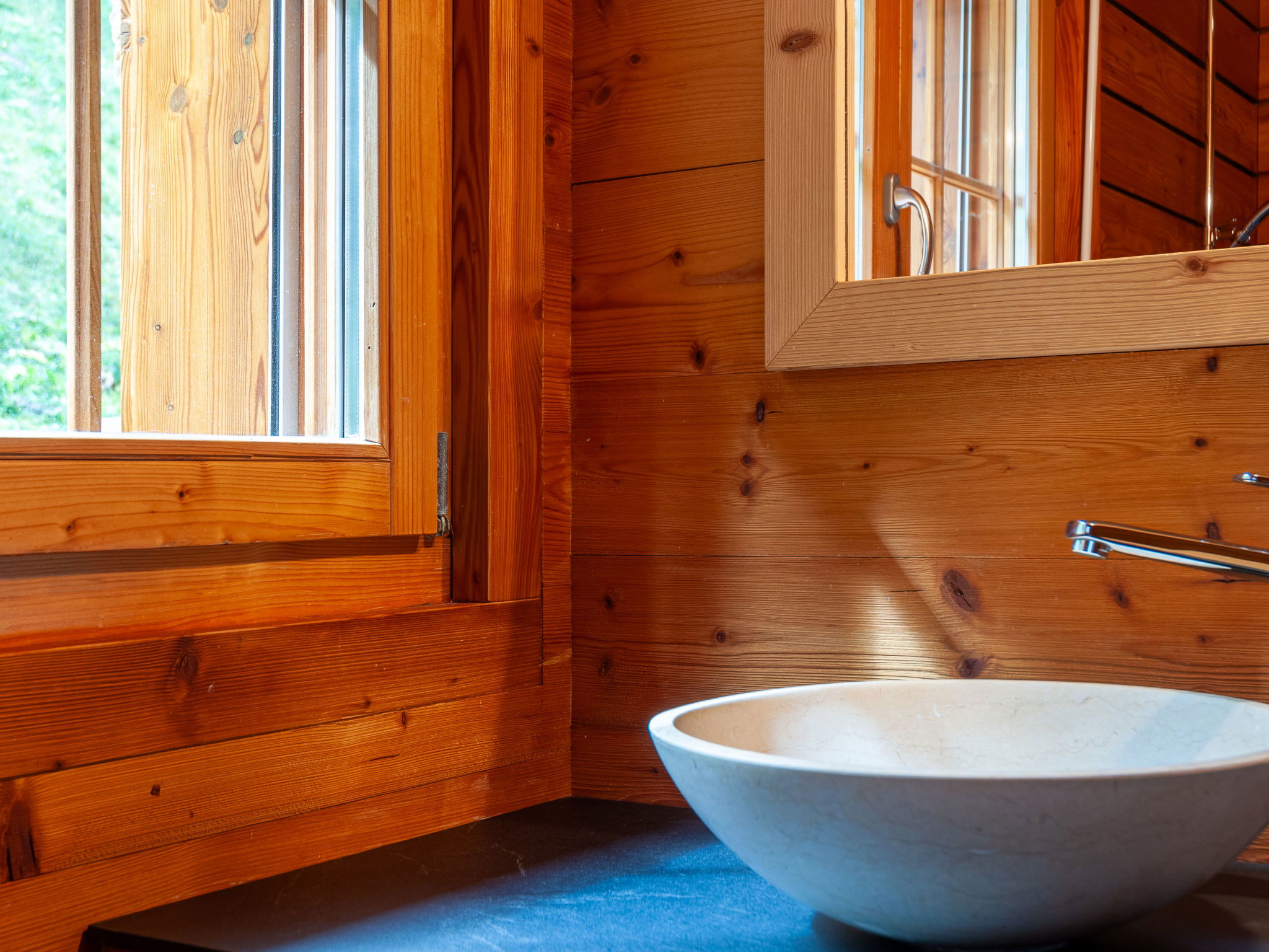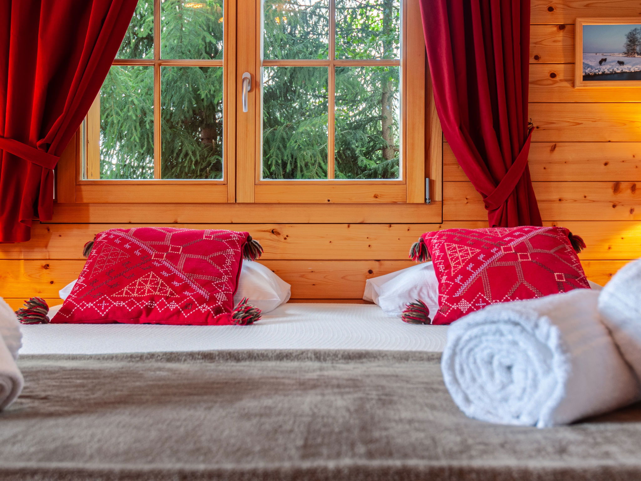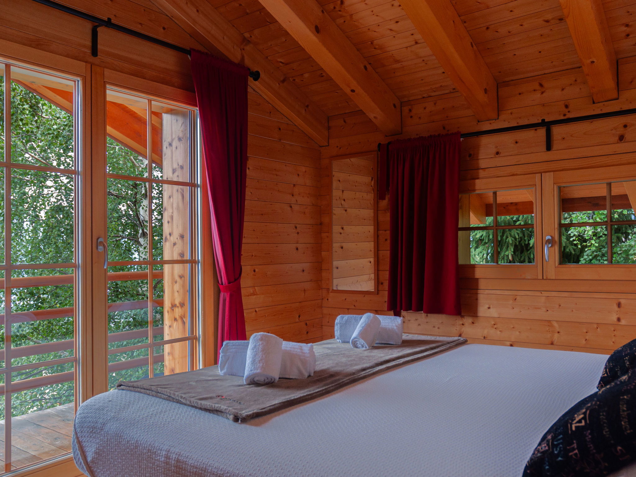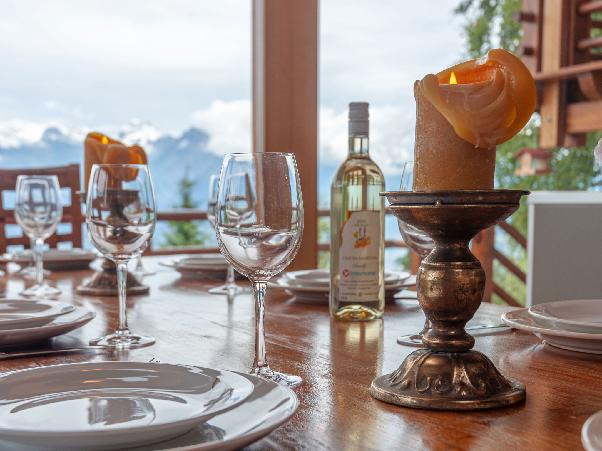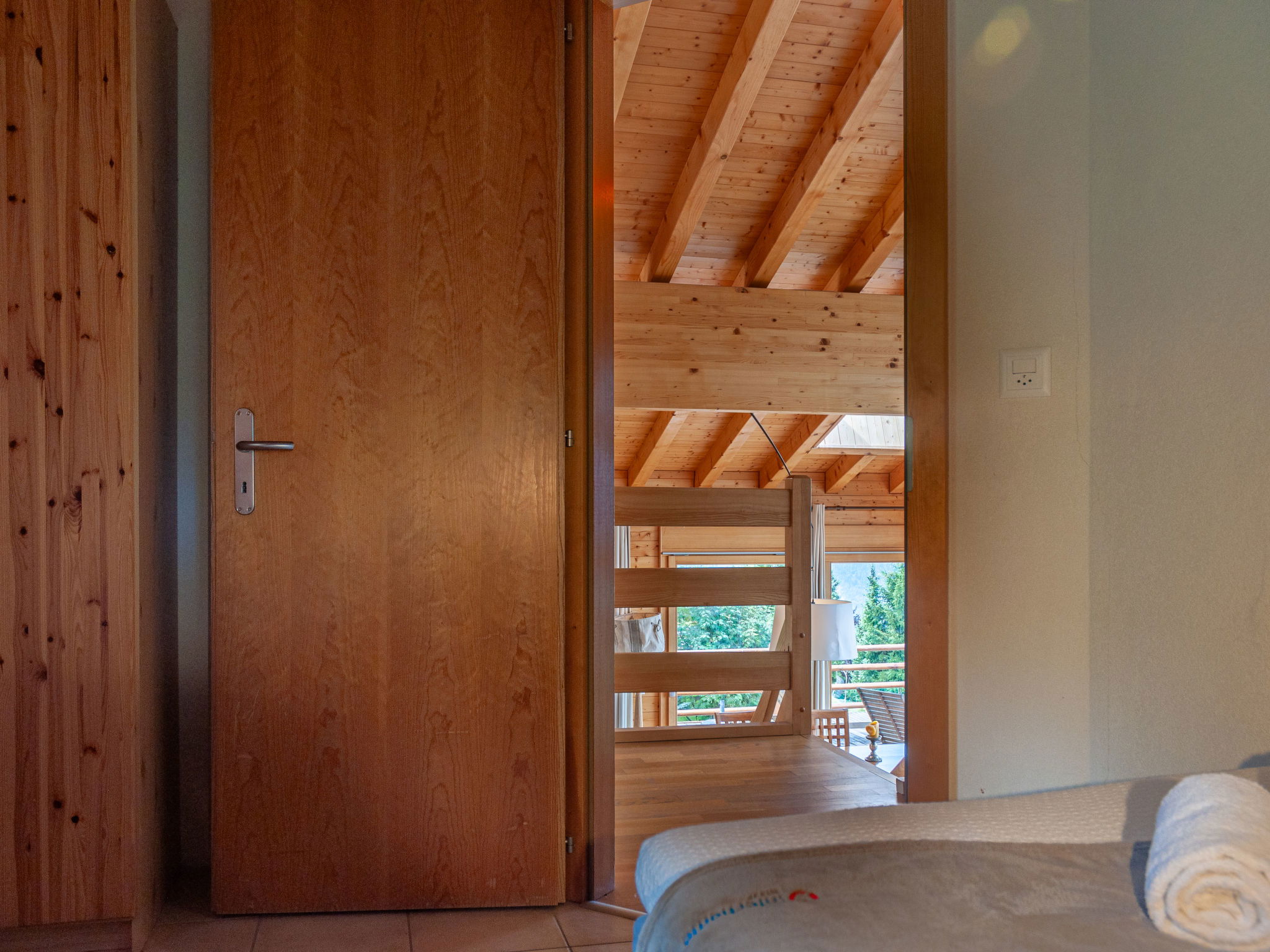 "Mimique", 5-room chalet 180 m2 on 3 levels. Bright, renovated in 2014, comfortable furnishings: living/dining room with panoramic window with Scandinavian wood stove, satellite TV, cable TV, CD-player, hi-fi system and DVD. Exit to the terrace, north-west facing position. 1 room with 1 french bed (180 cm, length 200 cm). Exit to the terrace, north facing position. Open kitchen (oven, dishwasher, 4 ceramic glass hob hotplates, toaster, kettle, microwave, freezer, electric coffee machine, Capsules for coffee machine (Nespresso) extra, raclette grill, fondue Set (cheese)). Bath/shower, sep. WC, double hand-basin. Heating. On the lower ground floor: entrance hall. 1 large room with 1 french bed (160 cm, length 200 cm), cable TV and flat screen. Exit to the terrace, north facing position. Shower, sep. WC, double hand-basin, Sauna. Upper floor: 1 room with sloping ceilings with 1 french bed (180 cm, length 200 cm). Exit to the balcony, north facing position. 1 room with sloping ceilings with 2 beds (90 cm, length 200 cm). Shower/WC. Terrace 55 m2, west facing position and south facing position. Terrace furniture, barbecue (portable), deck chairs (3). Marvellous view of the mountains and the valley. Facilities: washing machine, dryer, sauna, children's high chair, baby cot, hair dryer. Internet (WiFi, free). Parking (2 cars), garage, height 210 cm, width 250 cm. Please note: non-smokers only.