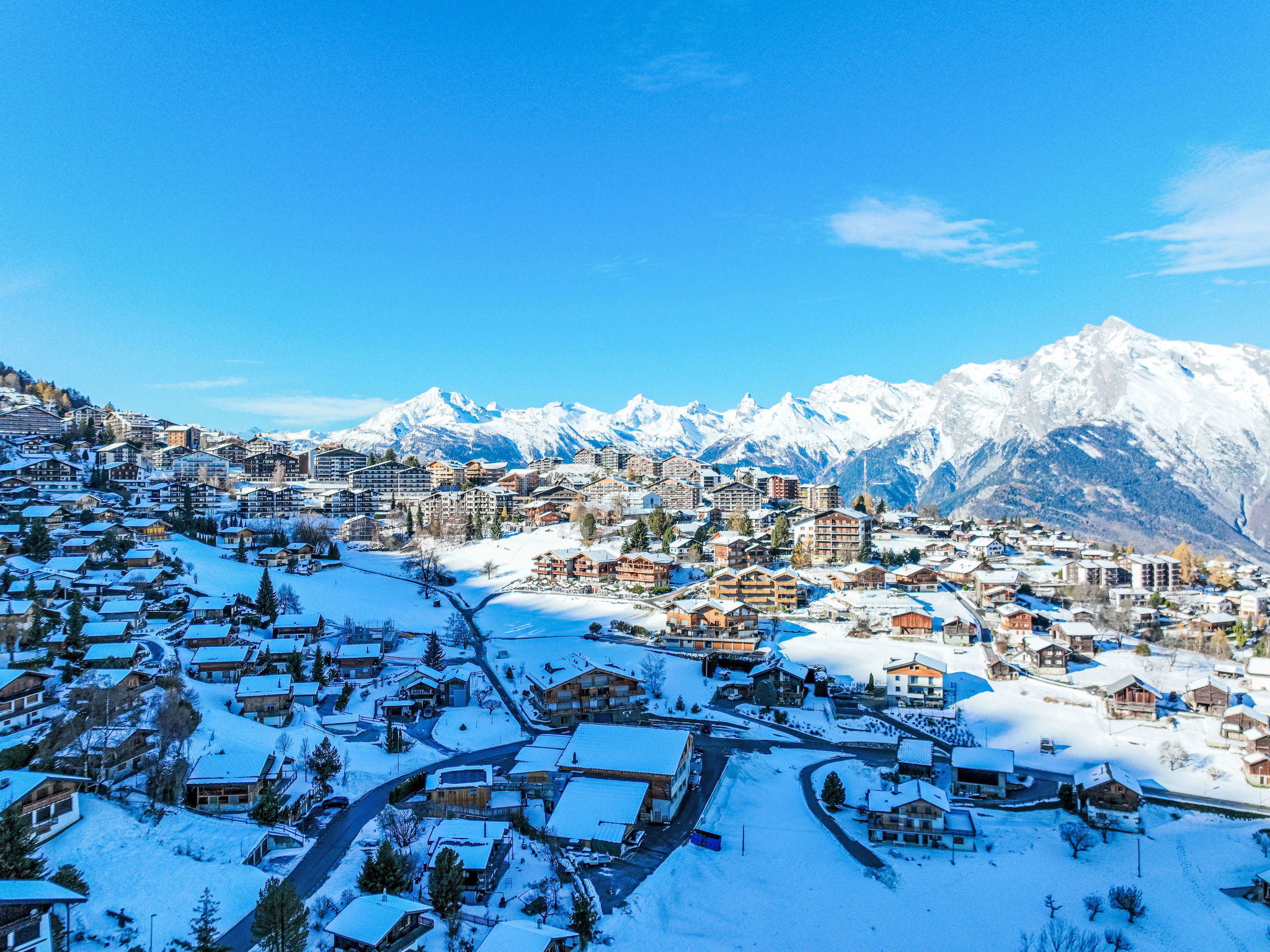 "Rêves des Alpes", 5-room chalet 150 m2 on 3 levels. Spacious, wooden furniture furnishings: large living/dining room with open-hearth fireplace, cable TV, hi-fi system, DVD and electric heating. Exit to the balcony, to the terrace. Open kitchen (oven, dishwasher, 4 ceramic glass hob hotplates, toaster, kettle, microwave, electric coffee machine, Capsules for coffee machine (Nespresso) extra, raclette grill, fondue Set (cheese)) with bar. Sep. WC. Electric heating. On the lower ground floor: 1 room with 1 french bed (180 cm, length 200 cm). 2 rooms, each room with 2 beds (90 cm, length 200 cm). Bath/WC, bath/shower/WC. Upper floor: 1 large room with 1 french bed (160 cm, length 200 cm), bath/WC. Exit to the balcony. 2 balconies, north facing position and west facing position, small balcony, south facing position terrace. Terrace furniture, barbecue. Very beautiful view of the mountains and the valley. Facilities: washing machine, children's high chair, hair dryer. Internet (WiFi, free). Parking (1 car), garage (2 cars), height 210 cm, width 240 cm. Please note: non-smokers only.