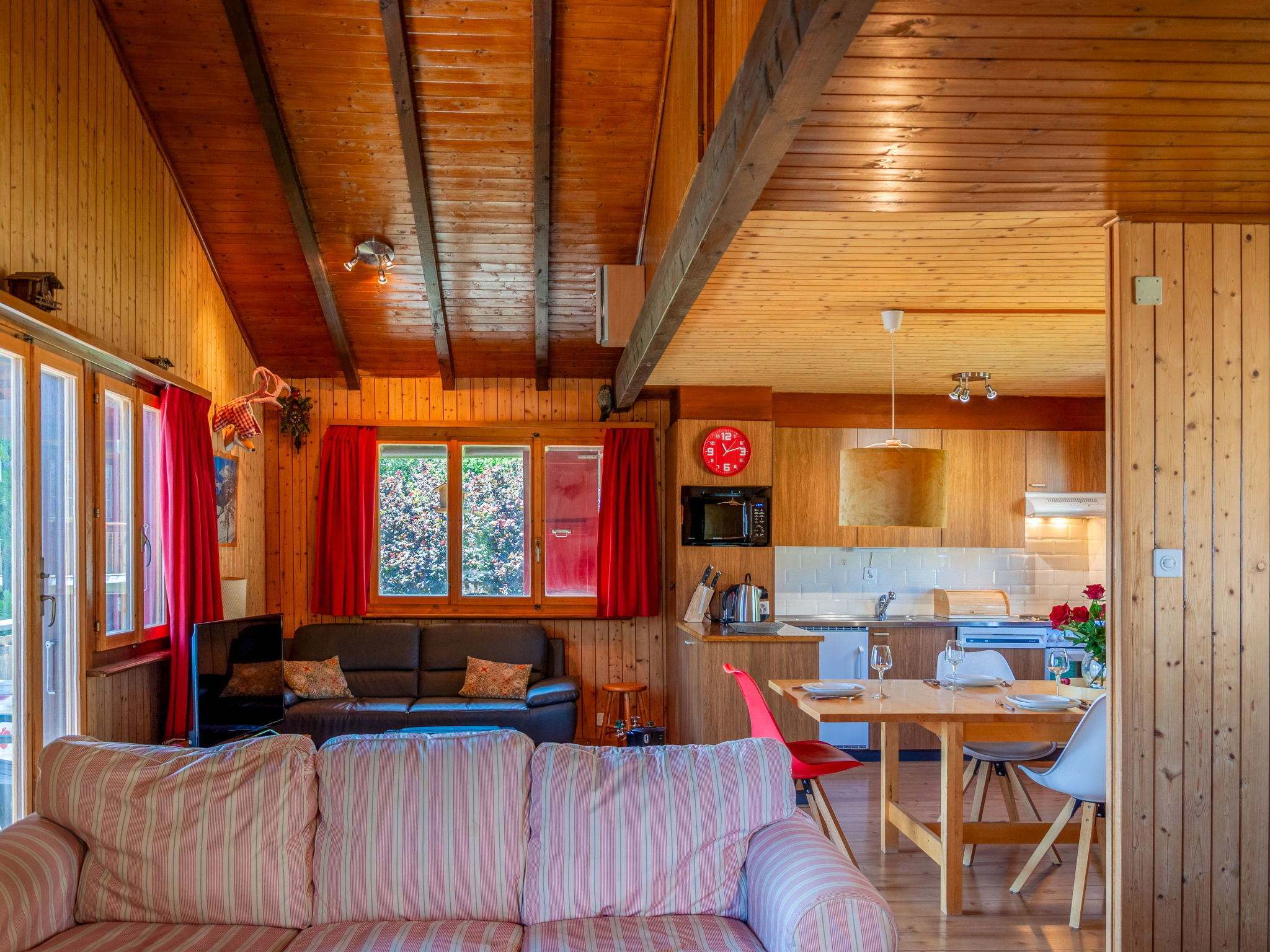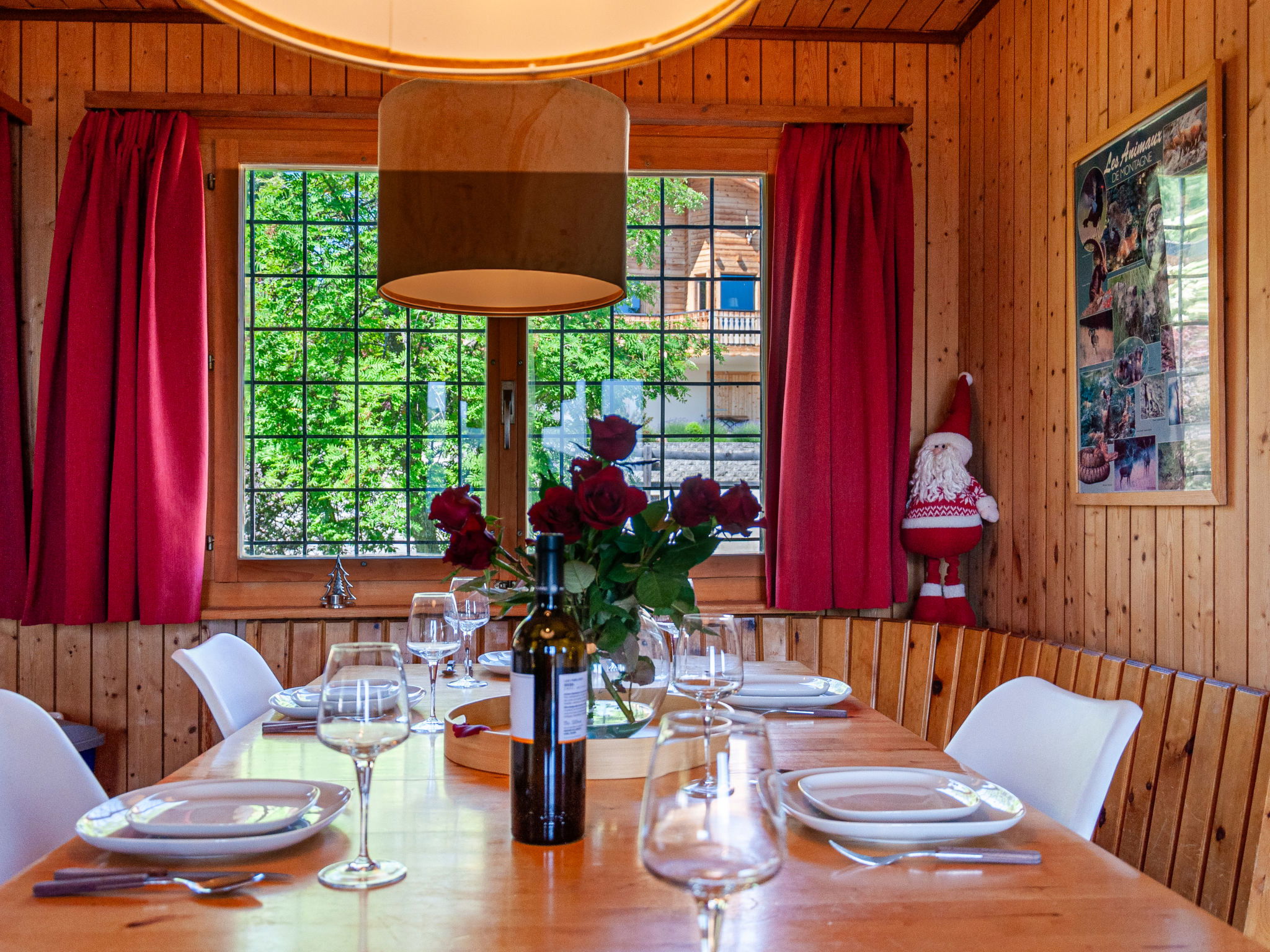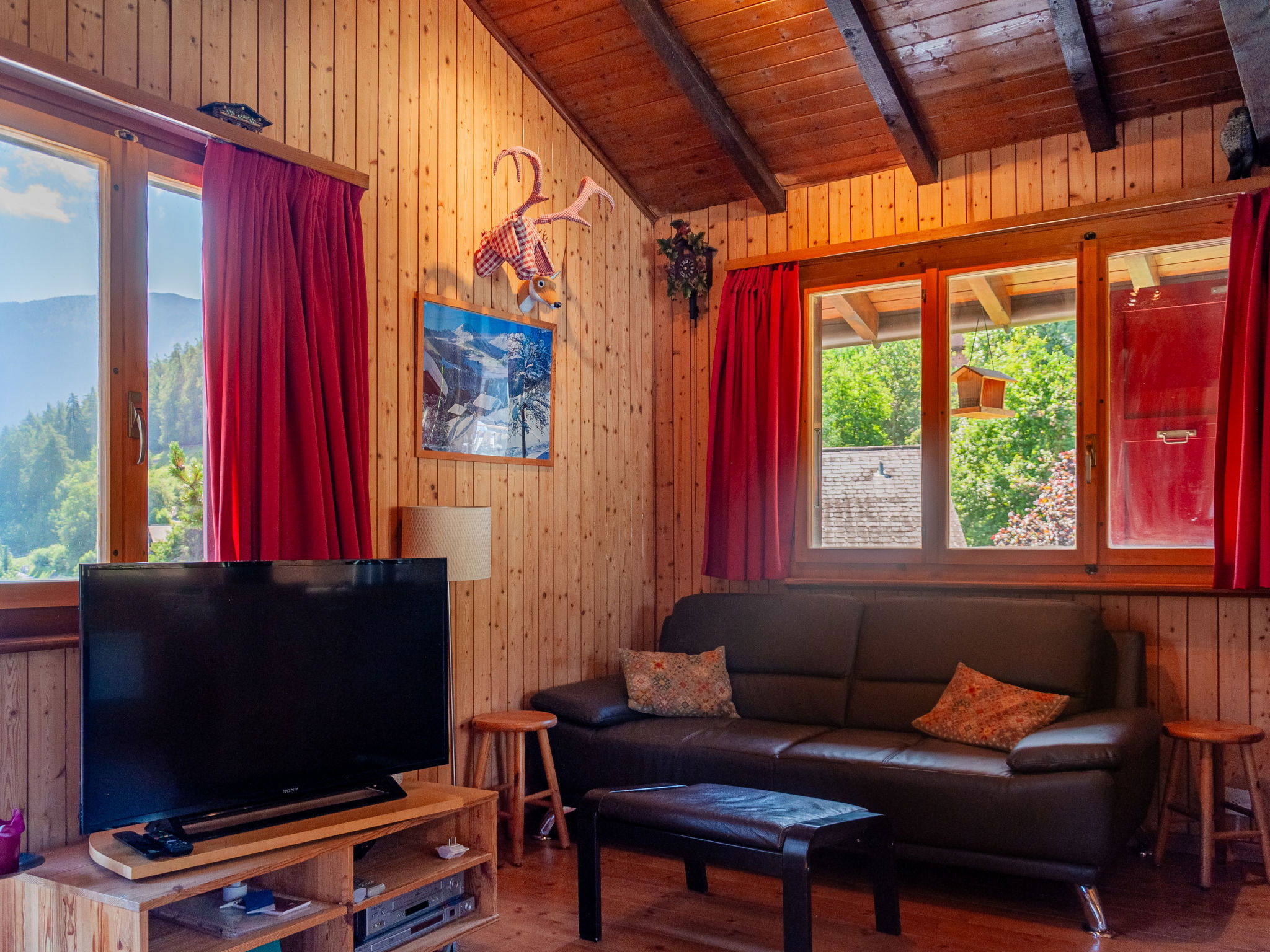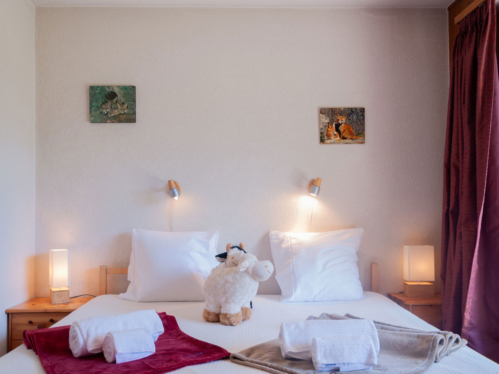 "Le Hibou", 4-room chalet 102 m2 on 2 levels. Living/dining room with open-hearth fireplace, satellite TV, cable TV, hi-fi system and DVD. Exit to the terrace. Open kitchen (oven, dishwasher, toaster, kettle, microwave, electric coffee machine, Capsules for coffee machine (Nespresso) extra, raclette grill, fondue Set (chinoise, cheese)). Shower, sep. WC. Electric heating. On the lower ground floor: 3 rooms, each room with 2 beds (90 cm, length 190 cm). Bath/WC. Balcony, east facing position, large terrace 20 m2, north facing position and west facing position, small patio, south facing position and west facing position. Terrace furniture, barbecue (portable). Beautiful view of the mountains and the valley. Facilities: washing machine, dryer, baby cot. Internet (WiFi, free). Parking (2 cars). Please note: non-smokers only. Maximum 1 pet/ dog allowed.