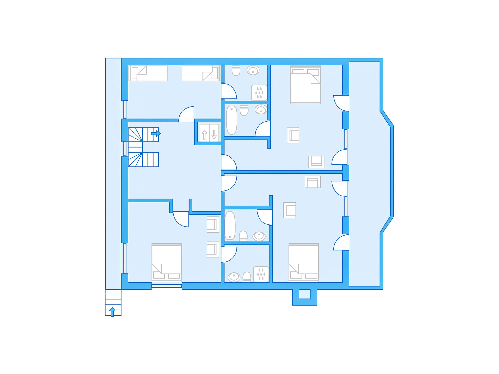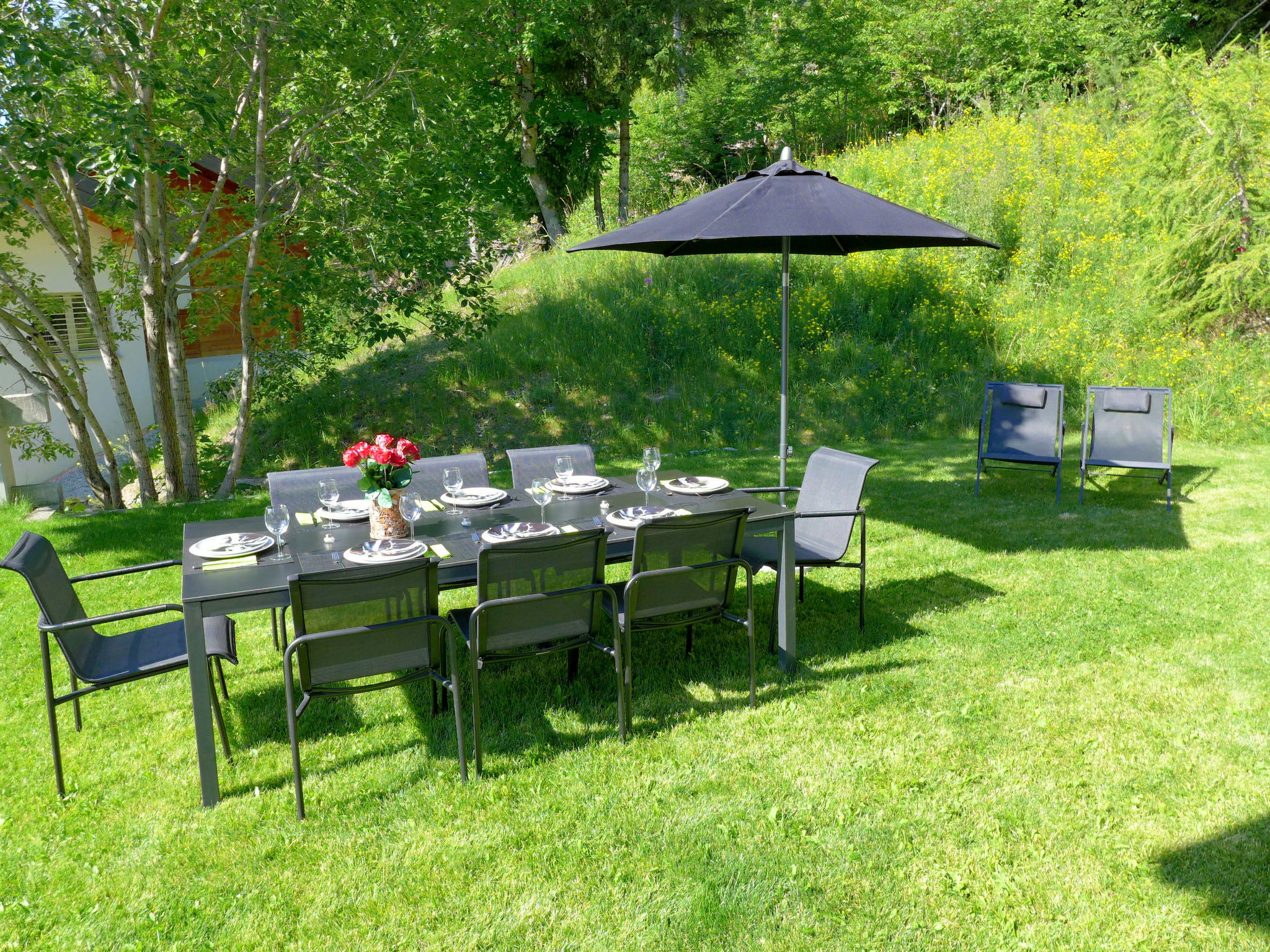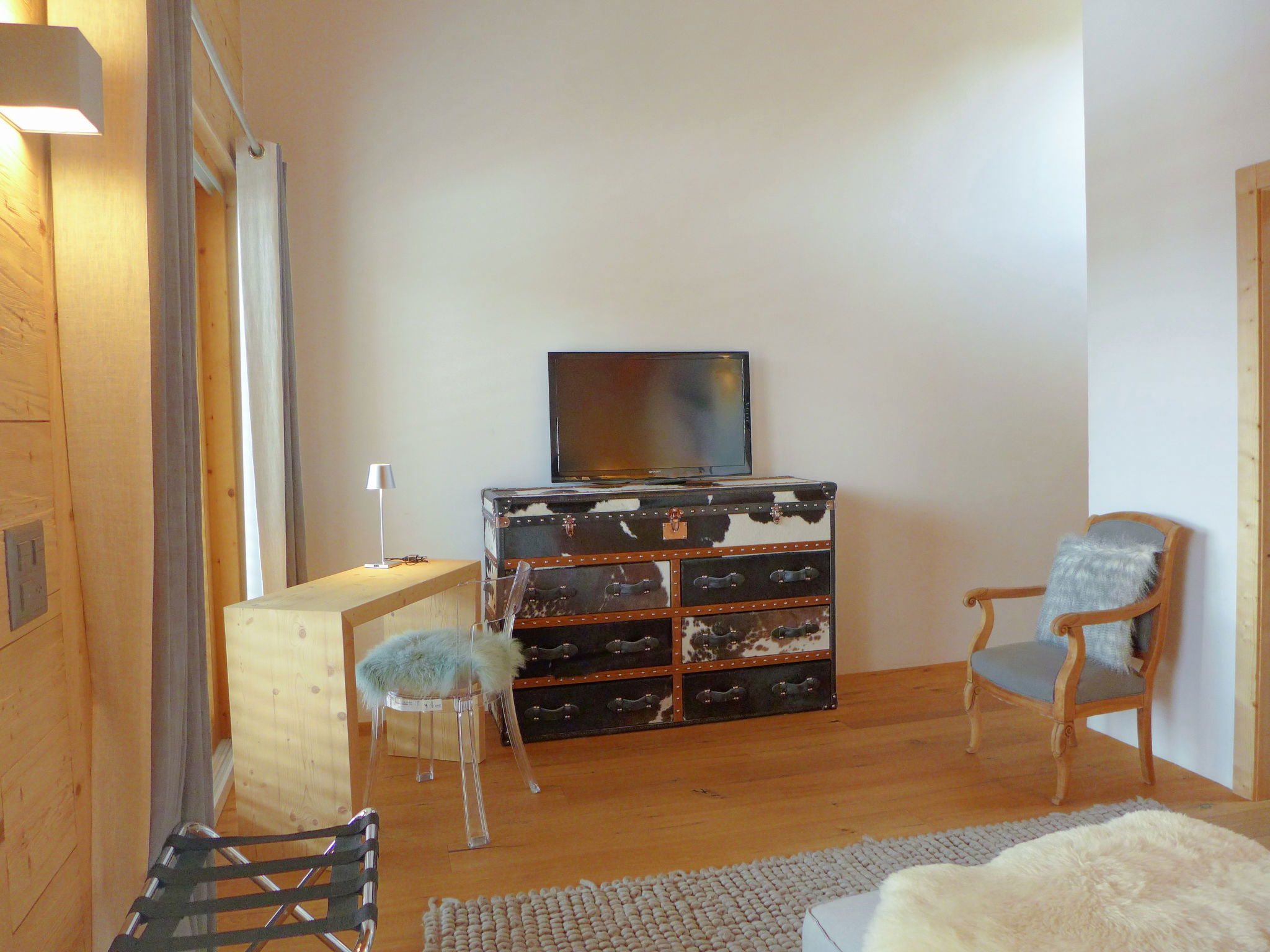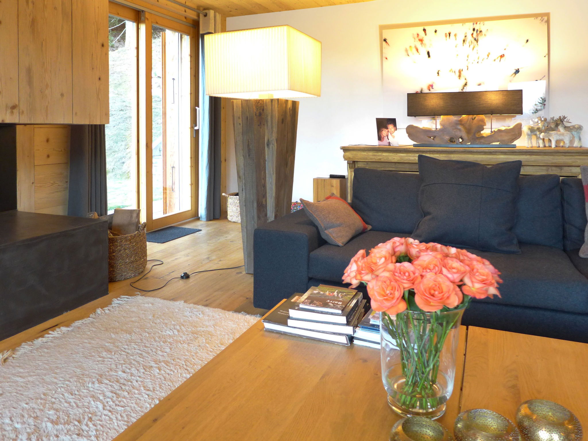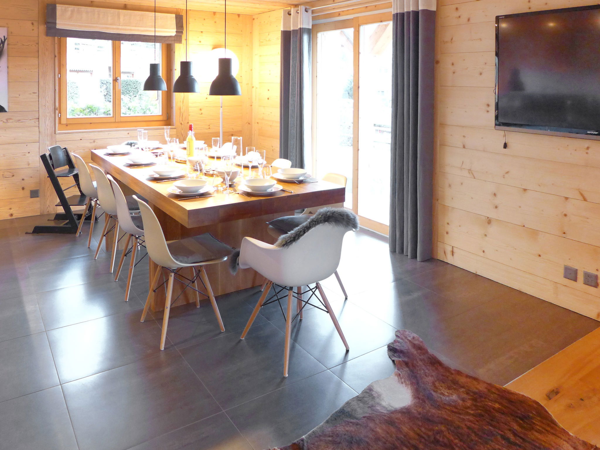 "Chalet Astoria", 6-room chalet 230 m2. Spacious, very comfortable and wooden furniture furnishings: living/dining room with open-hearth fireplace, separate WC, cable TV and electric shutters. Exit to the garden, south facing position. 1 room with Dressing room with 1 french bed (160 cm, length 200 cm), bath/WC and cable TV. Exit to the garden, west facing position. Large, open kitchen (oven, dishwasher, 4 induction hot plates, toaster, kettle, electric coffee machine, raclette grill, combination microwave, fondue Set (chinoise, cheese)). Gas heating, floor heating. Upper floor: 1 room with 1 french bed (160 cm, length 200 cm), shower/WC and cable TV. 2 rooms, each room with 1 double bed (180 cm, length 200 cm), bath/WC and cable TV. Exit to the balcony, south facing position. 1 room with 2 beds (80 cm, length 200 cm), shower/WC and cable TV. Terrace furniture, barbecue, deck chairs (2), box-room. Partial view of the mountains and the countryside. Facilities: iron, children's high chair, baby cot for up to 2 year olds, hair dryer. Internet (WiFi, free). Parking (1 car), garage (3 cars), height 210 cm, width 255 cm. Please note: non-smoking house. Delonghi automatic coffee machine: with coffee beans to grind. 2 baby cots and 2 high chairs. Travel cots without duvets, sheets and mattresses.