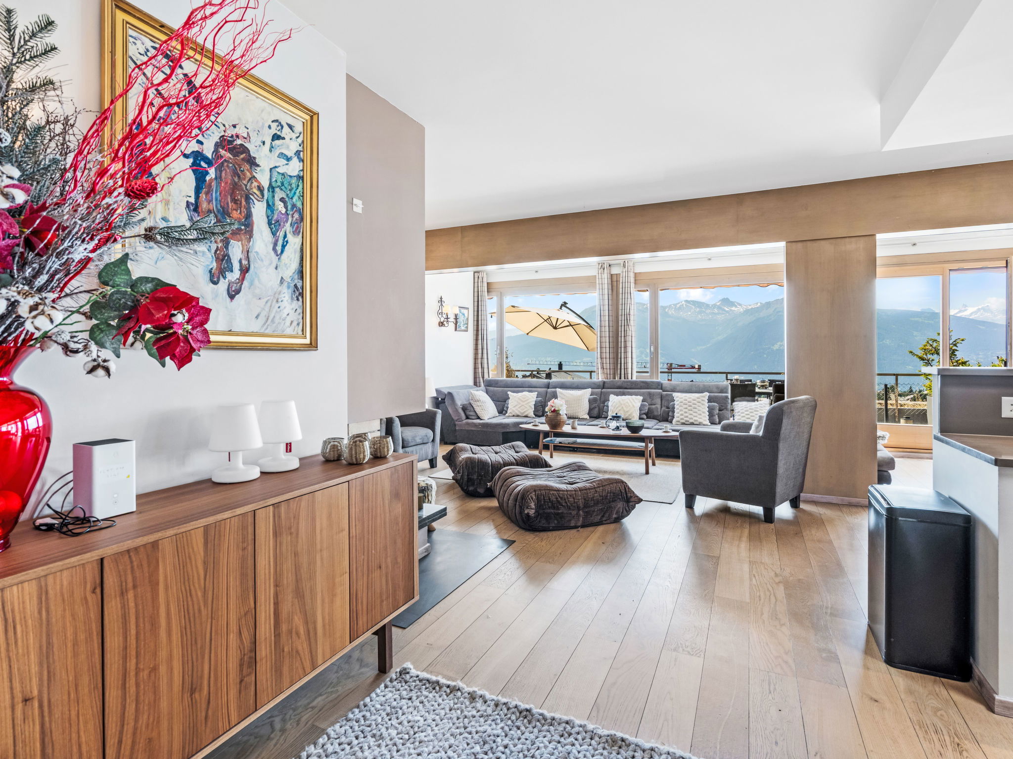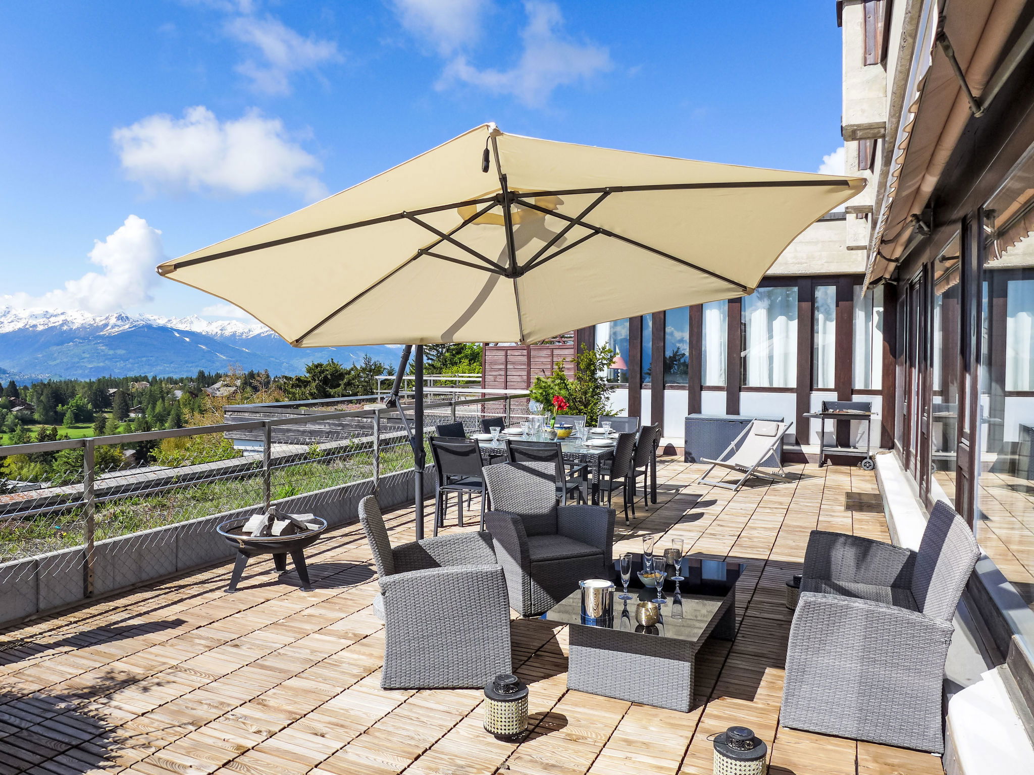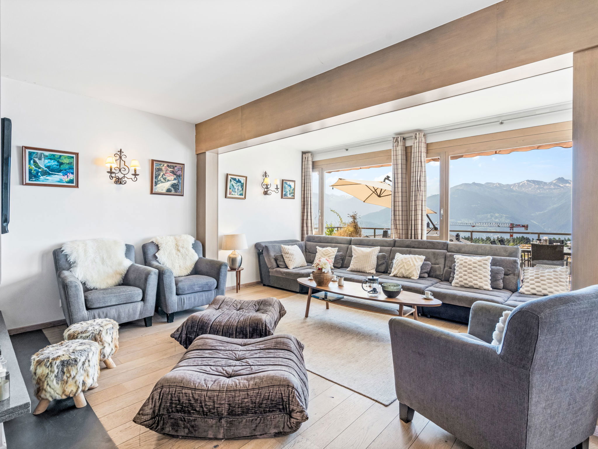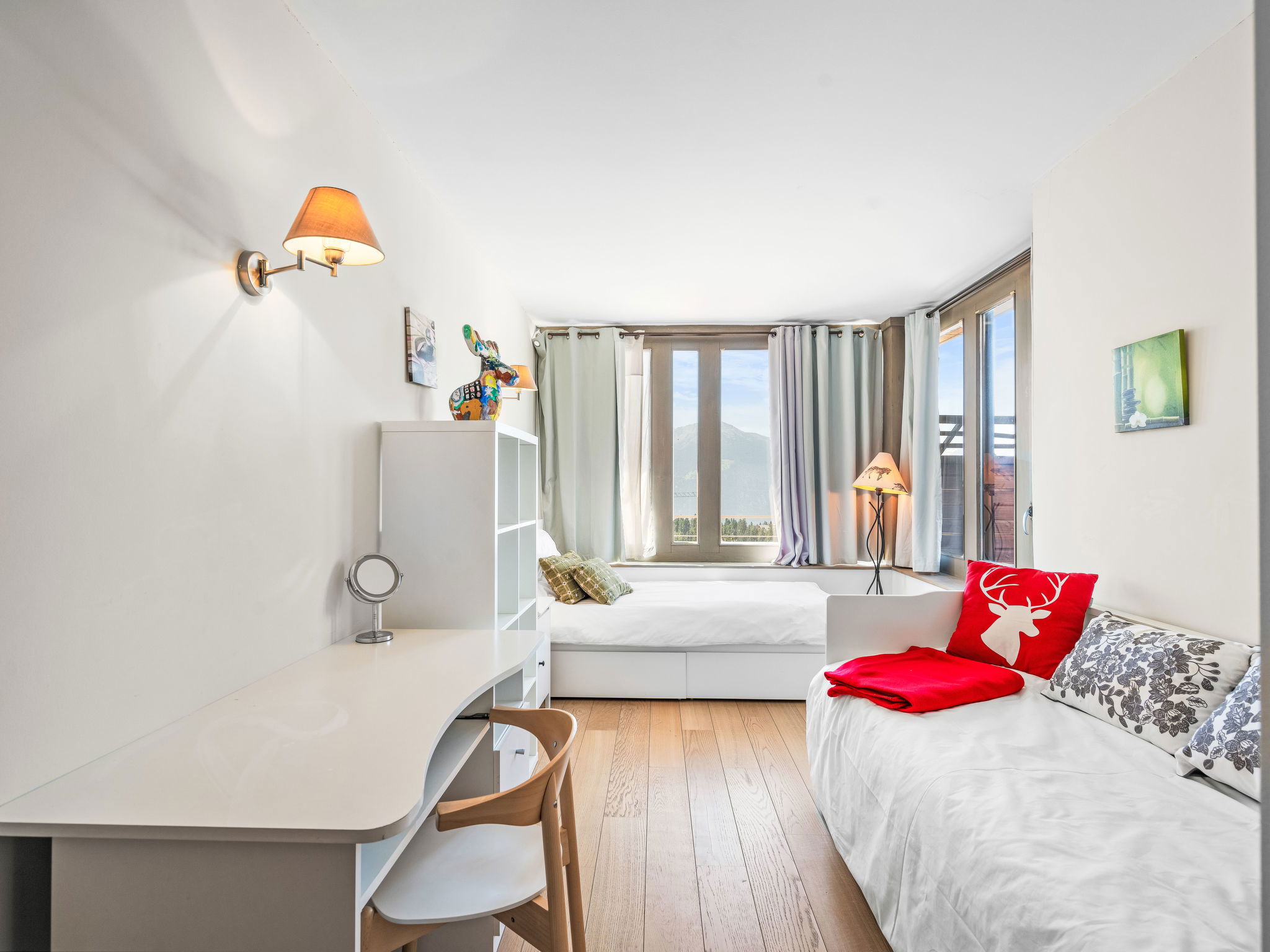 "Jeanne D'Arc LOFT Montagne", 6-room maisonette 200 m2, south facing position. Spacious, tasteful and cosy furnishings: large living/dining room with open-hearth fireplace, separate WC and cable TV. Exit to the terrace. 1 room with 1 french bed (160 cm, length 200 cm), bath/WC, double hand-basin and cable TV. 1 room with 2 beds (80 cm, length 200 cm), shower/WC. 1 room with 2 beds (80 cm, length 200 cm), shower/WC. Exit to the terrace. Open kitchen (oven, dishwasher, 4 ceramic glass hob hotplates, toaster, kettle, microwave, freezer, raclette grill, fondue Set (chinoise)) with bar. On the lower ground floor: (spiral staircase) large playroom with bar and TV. Large lounge. Sauna. Heating not available in all rooms. Terrace, south facing position. Terrace furniture, barbecue (portable). Marvellous panoramic view of the lake, the mountains, the valley and the countryside. Facilities: washing machine, dryer, iron, hair dryer. Internet (WiFi, free). Garage space n 21 at 350 m, height 200 cm, width 290 cm. Please note: suitable for families. Non-smokers only. Private entrance, no lift. Connecting door to flat CH3962.180.17 sleeping 6.